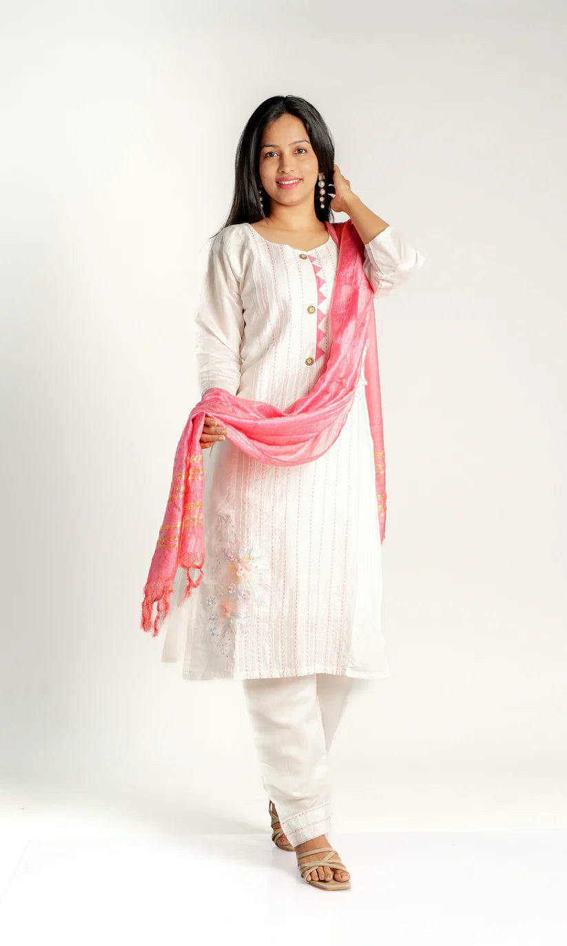 Cotton White Suit Set with Thread Worked Kurta