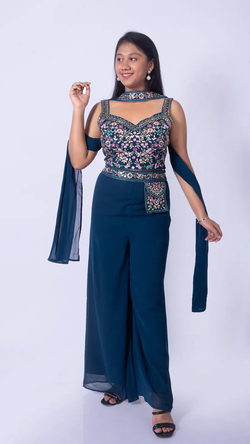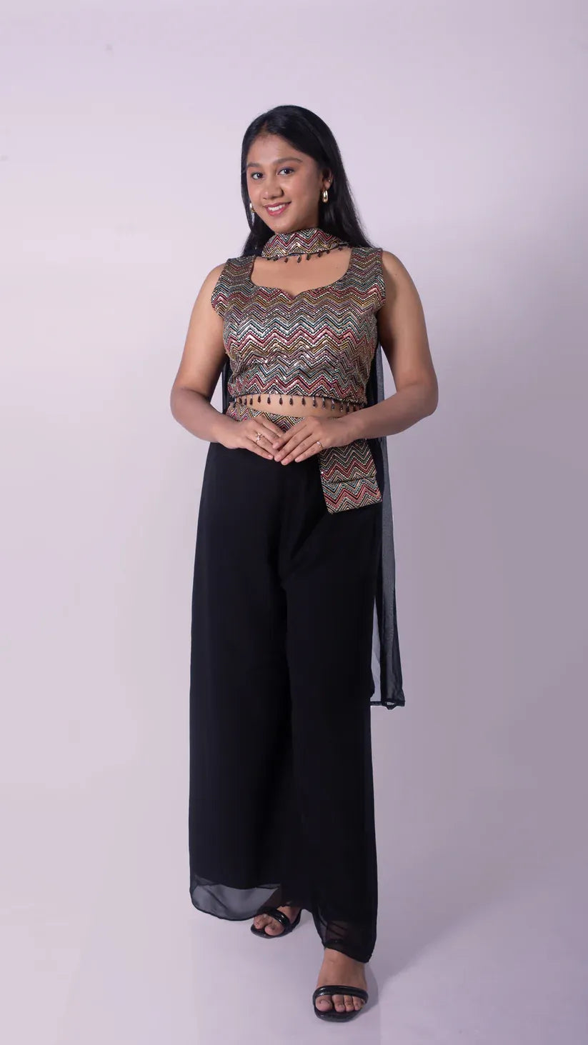 Palazzo with Attached Pocket and Embroidery with Beads Worked Top and Choker Dupatta