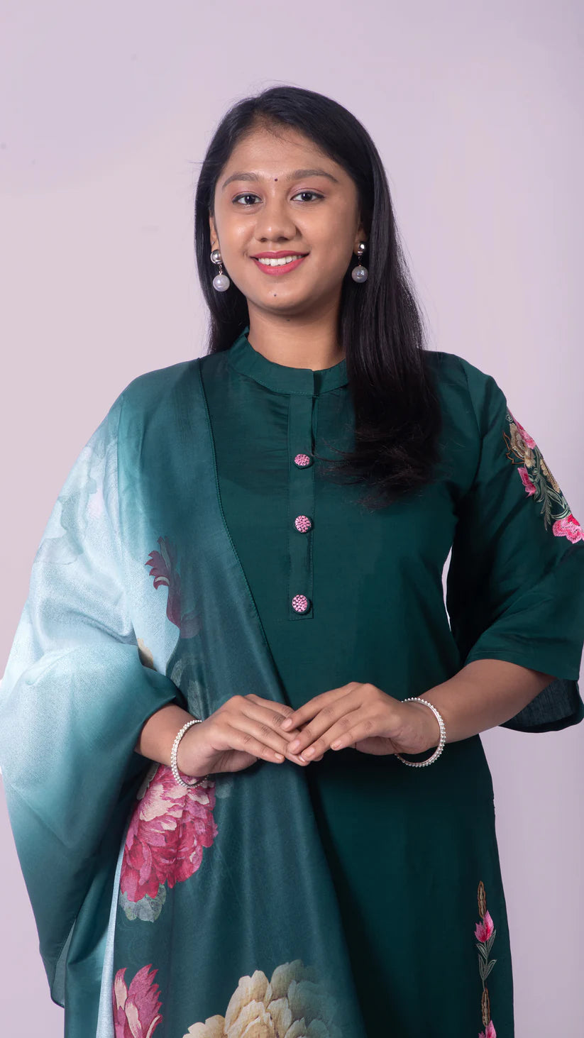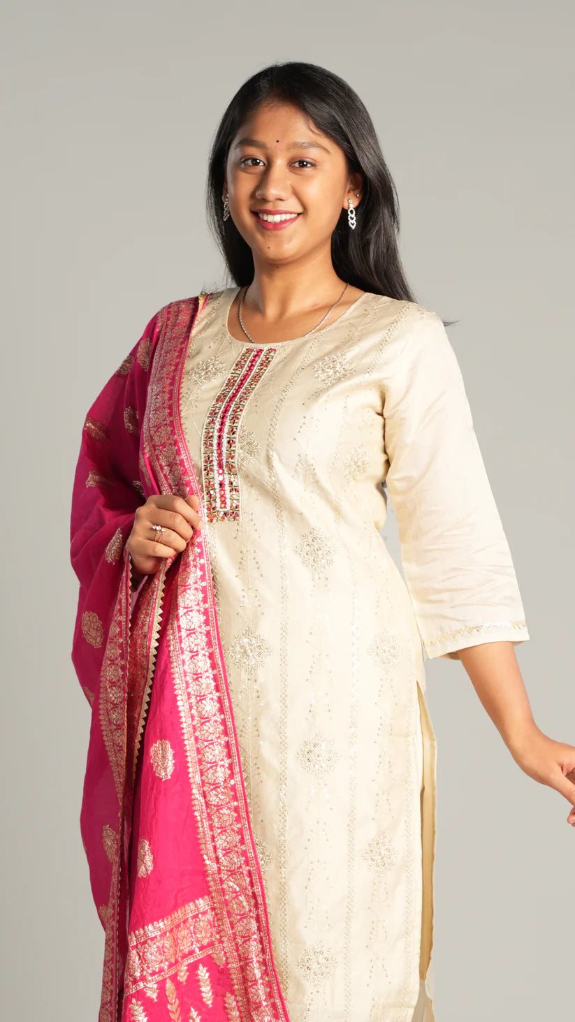 Silk Blend Suit Set with Chiffon Dupatta