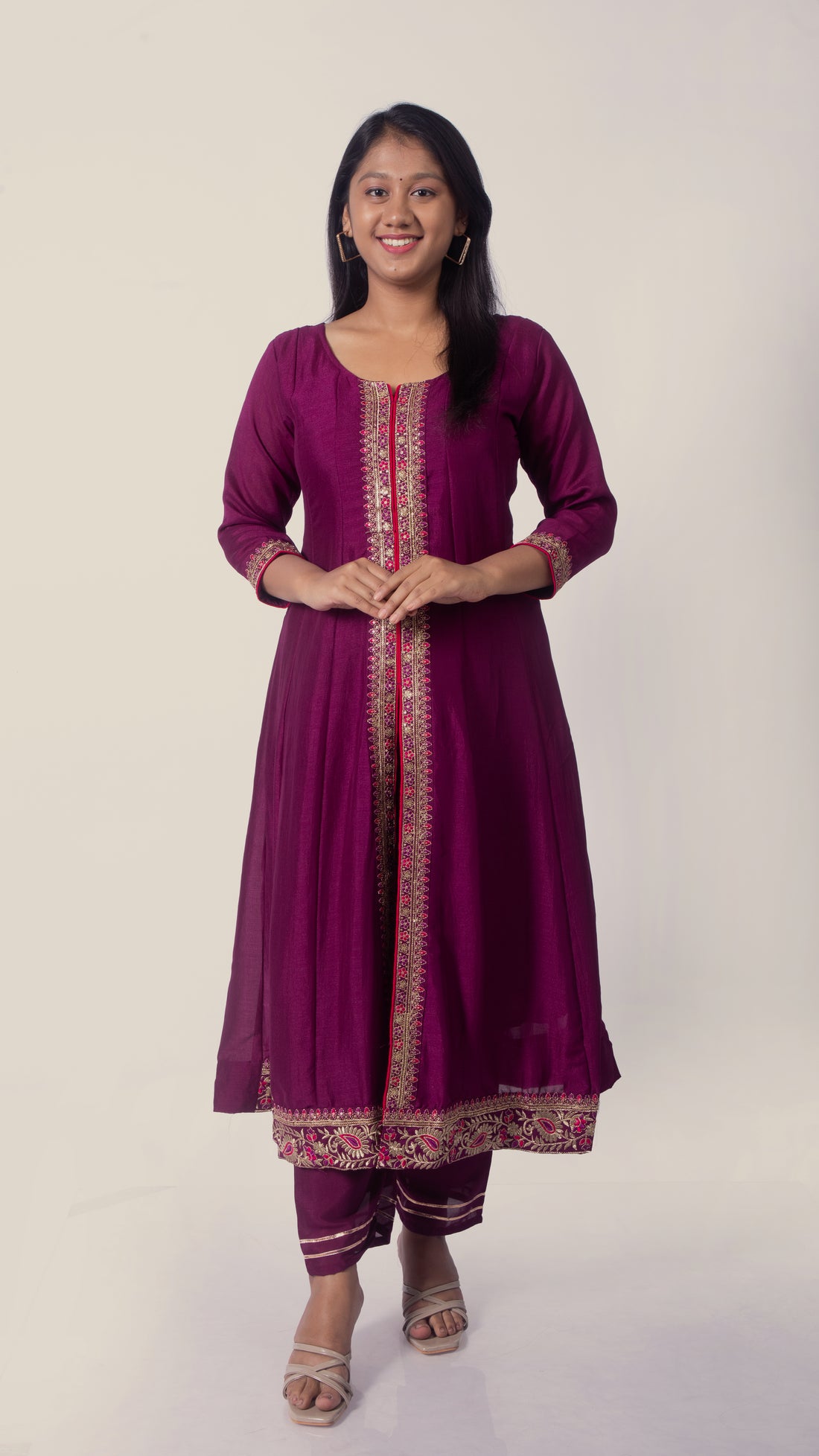 Elevate your ethnic wardrobe with our Chandani Suit Set, featuring a stylish Front Slit Kurta....