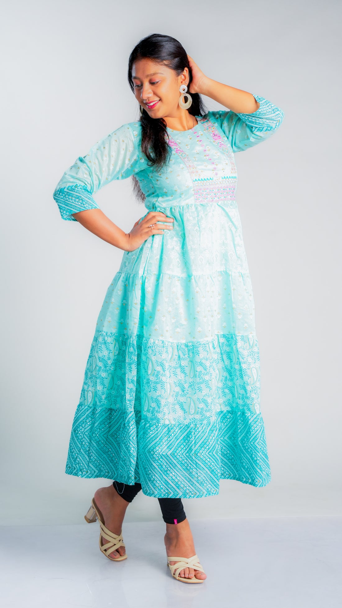 The Bloom Aura Kurti is crafted from premium organza fabric, offering a lightweight and breathable...