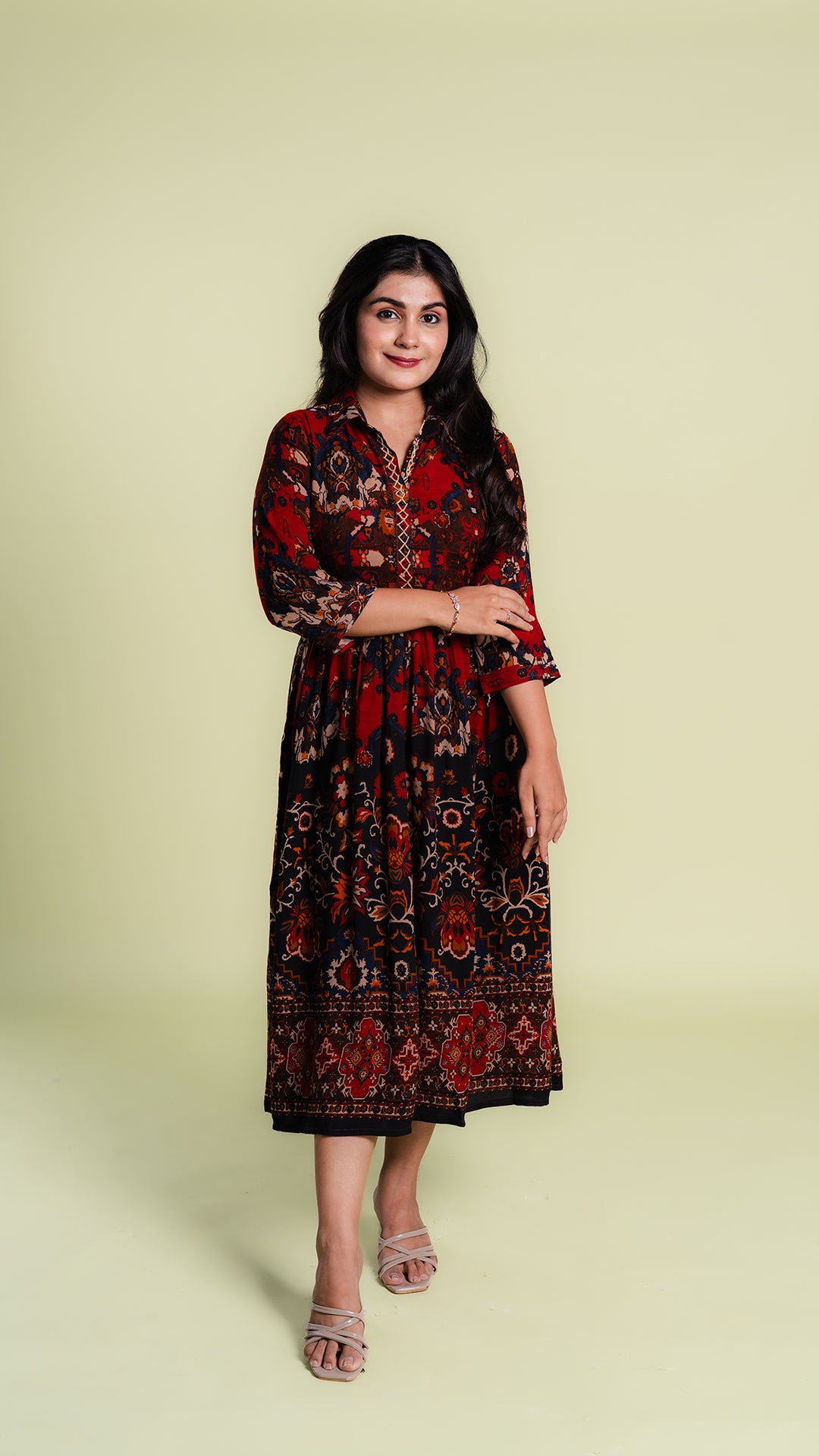 Introducing our Frok Style Flare Kurti with Collared Neck. Crafted with expert tailoring and a...
