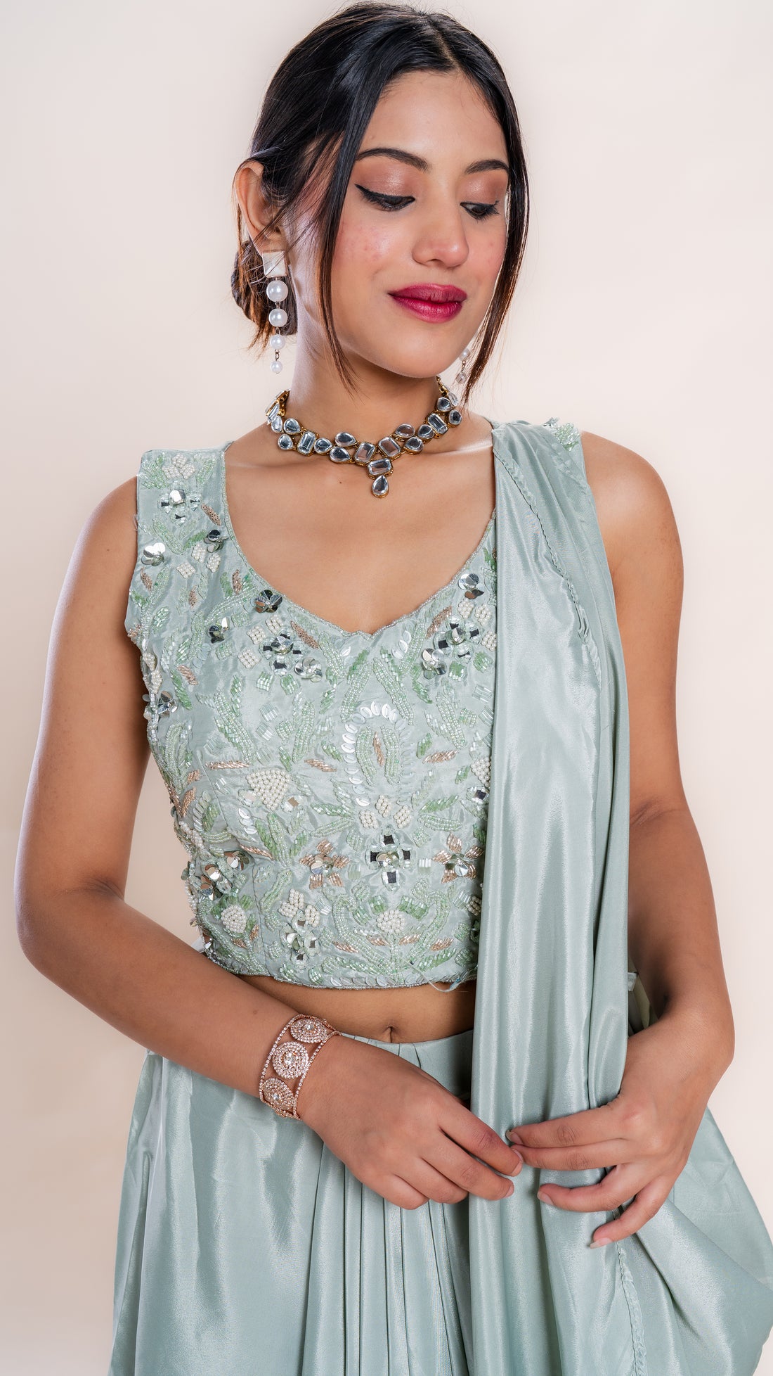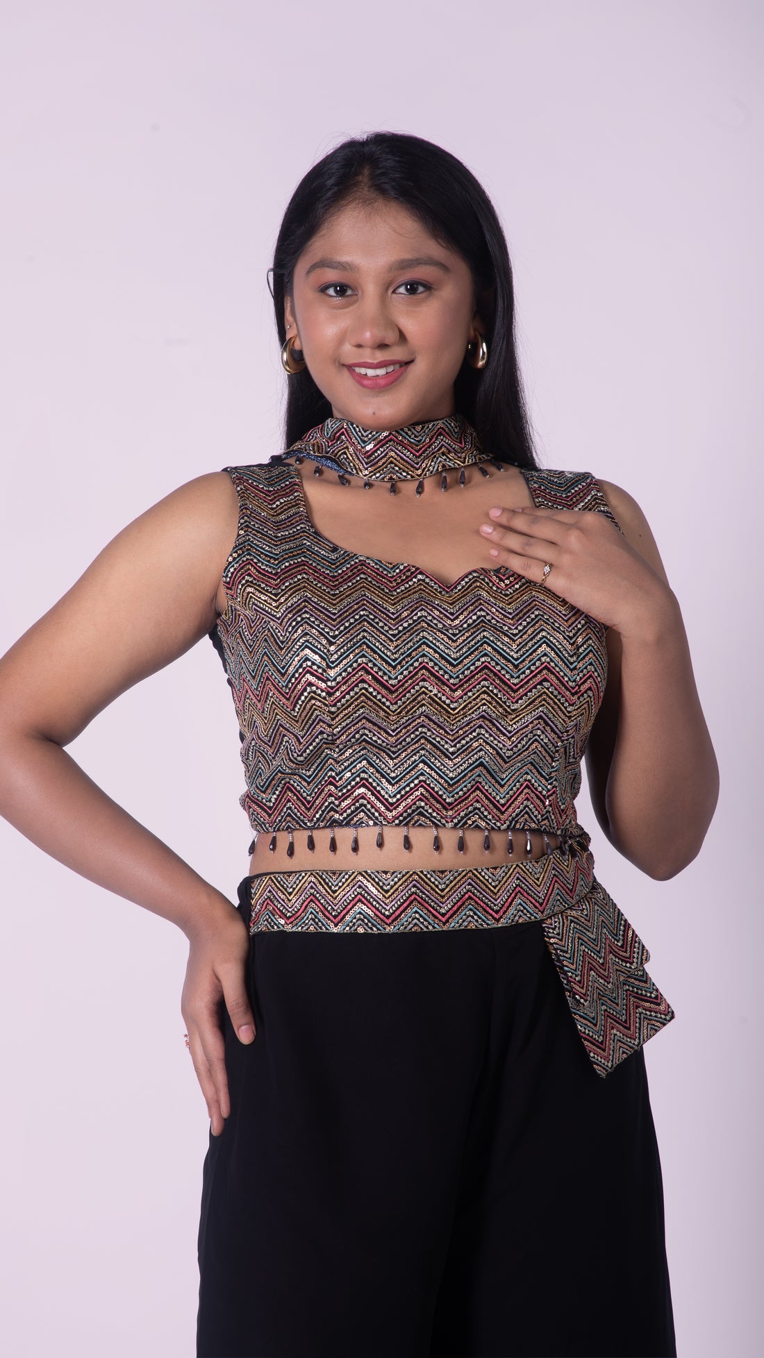 Palazzo with Attached Pocket and Embroidery with Beads Worked Top and Choker Dupatta