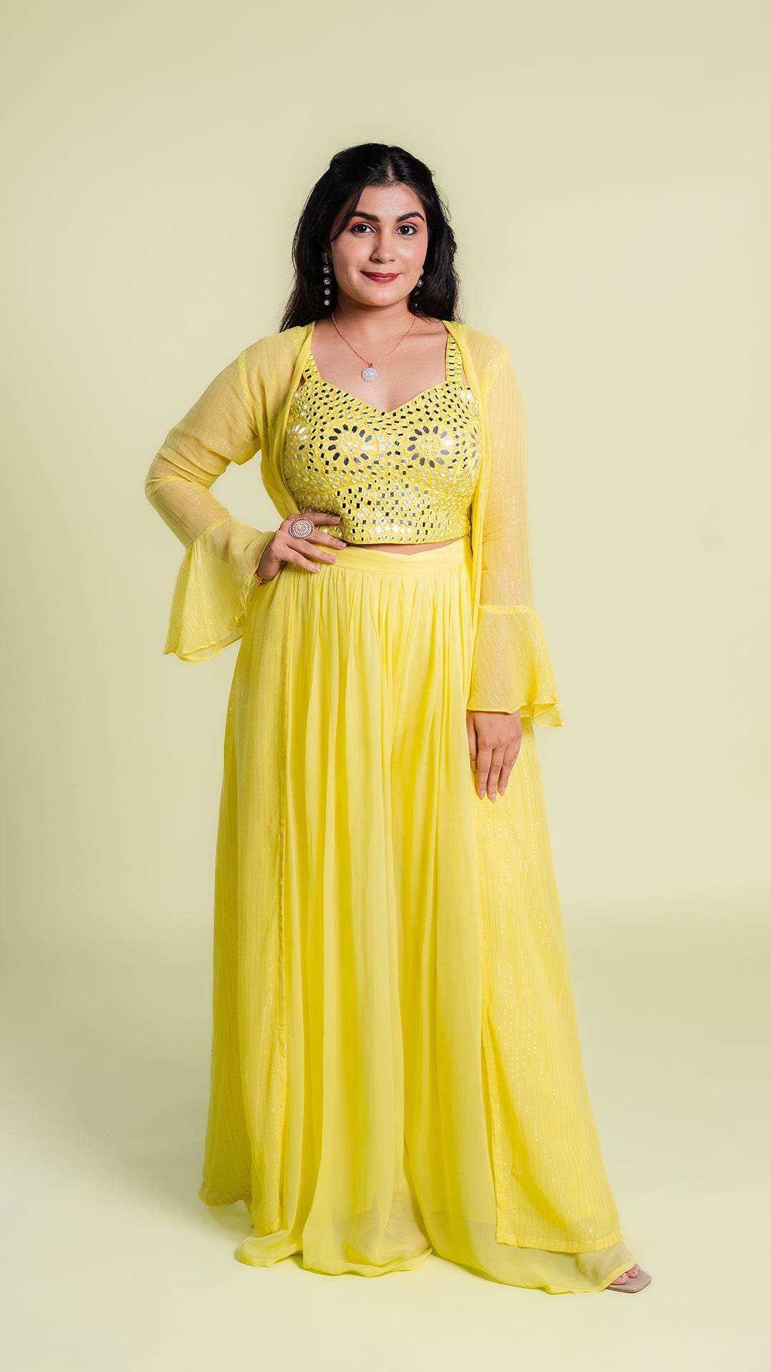 Sequined Thread Work Top and Palazzo with Long Jacket