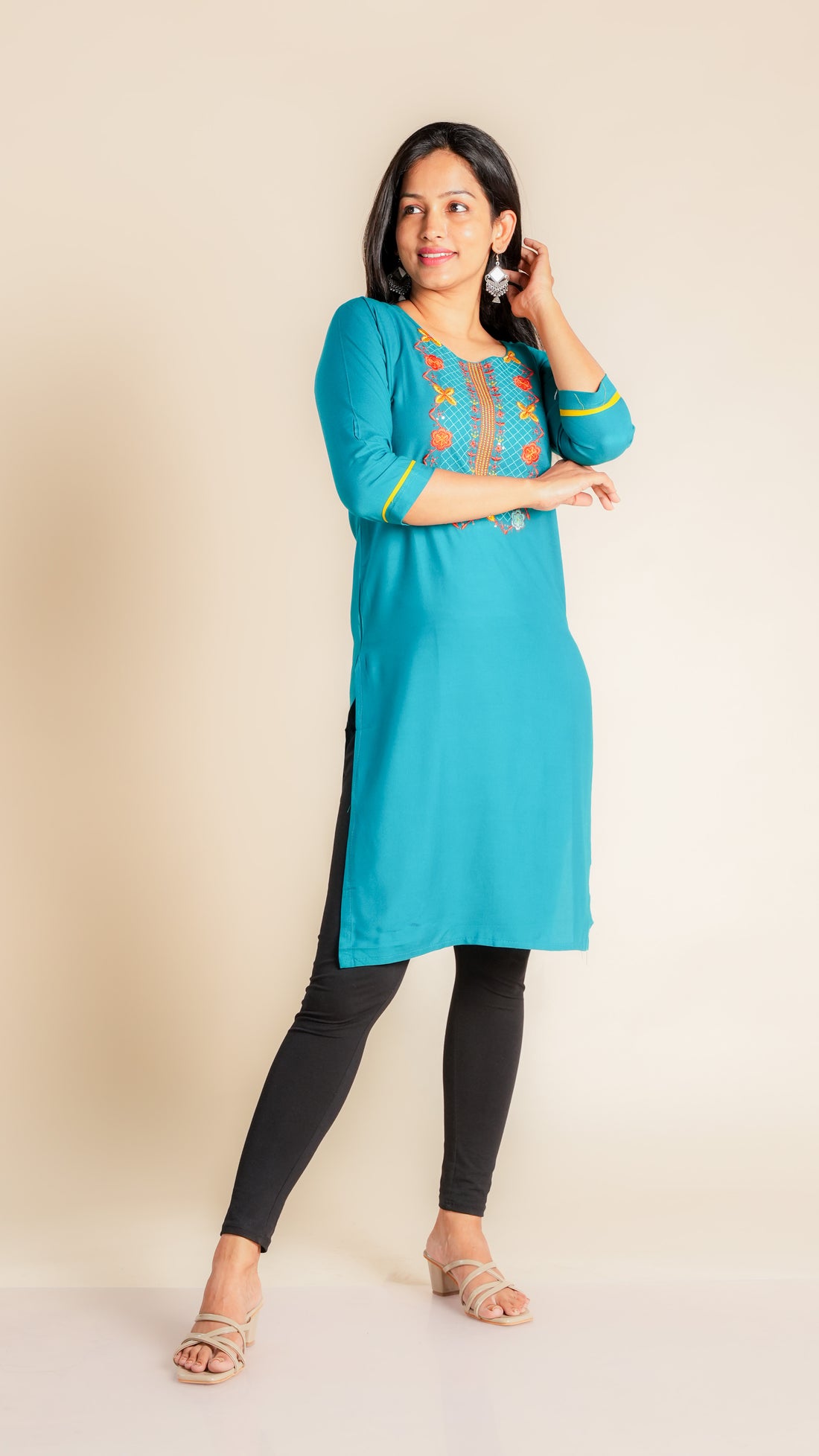 Rayon Kurti with Neck Embroidery