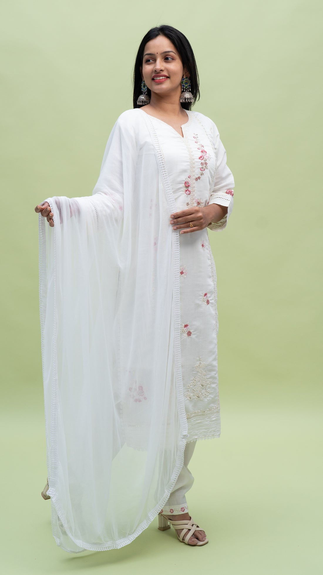 Delicate and elegant, the Floral Whisper Embroidery Suit Set features intricate floral embroidery that adds...