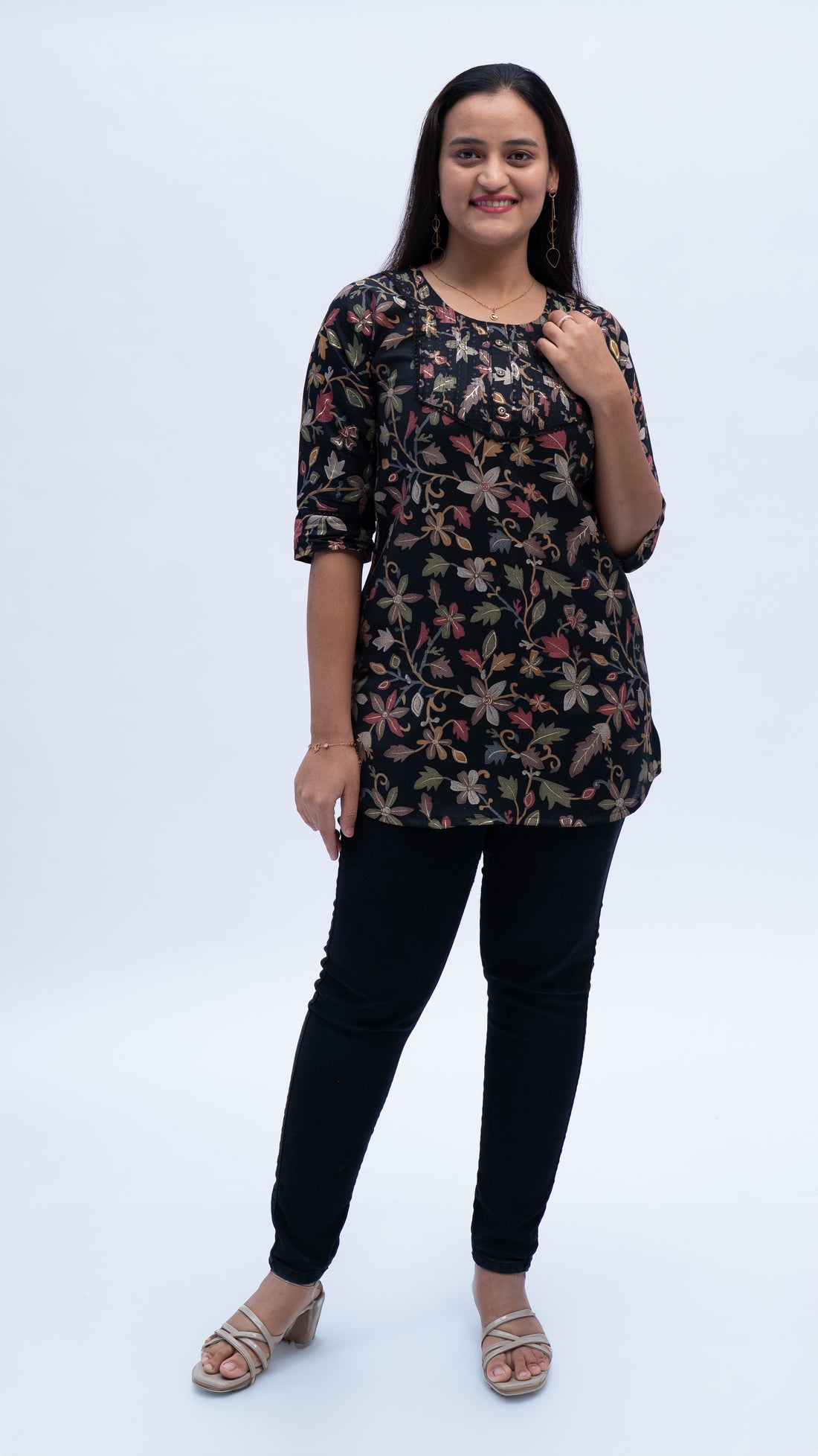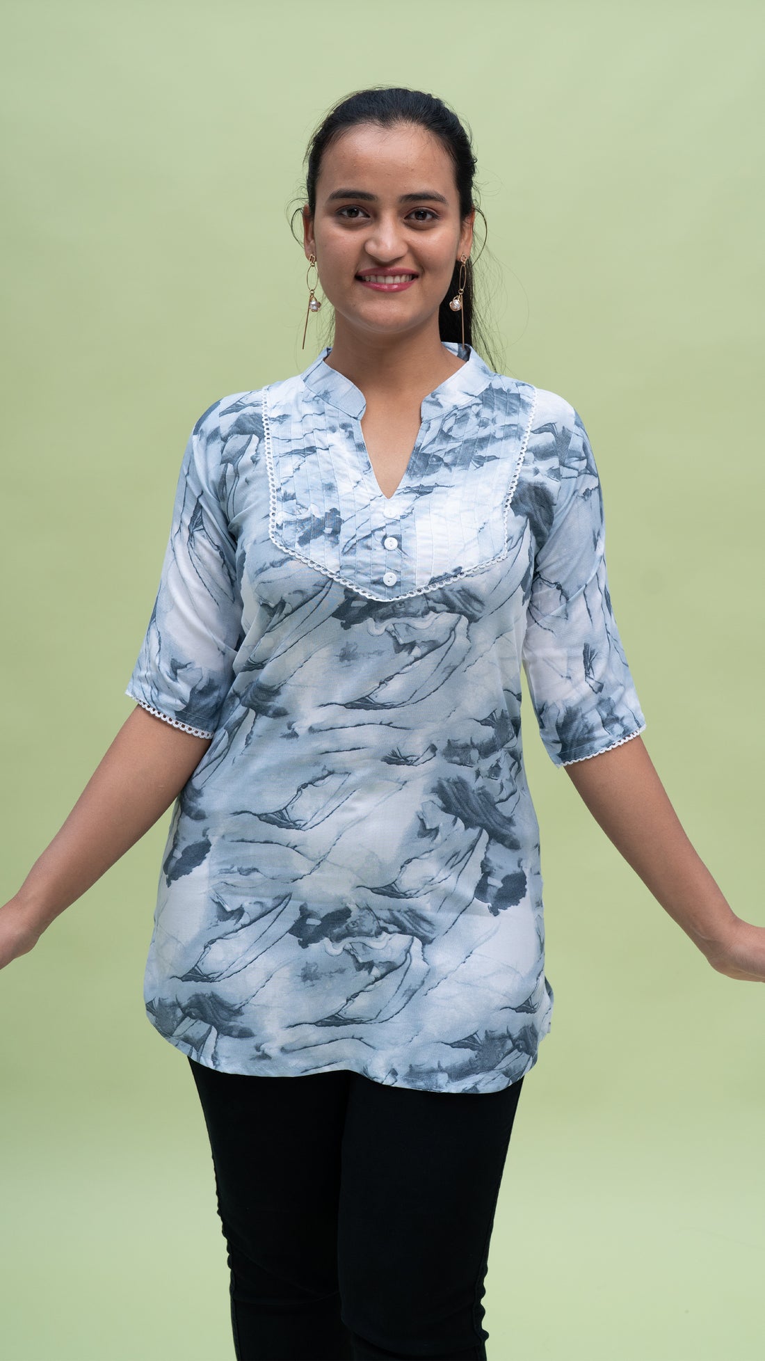 Refresh your wardrobe with this stylish Rayon Print Short Kurti. Made from soft, breathable rayon...