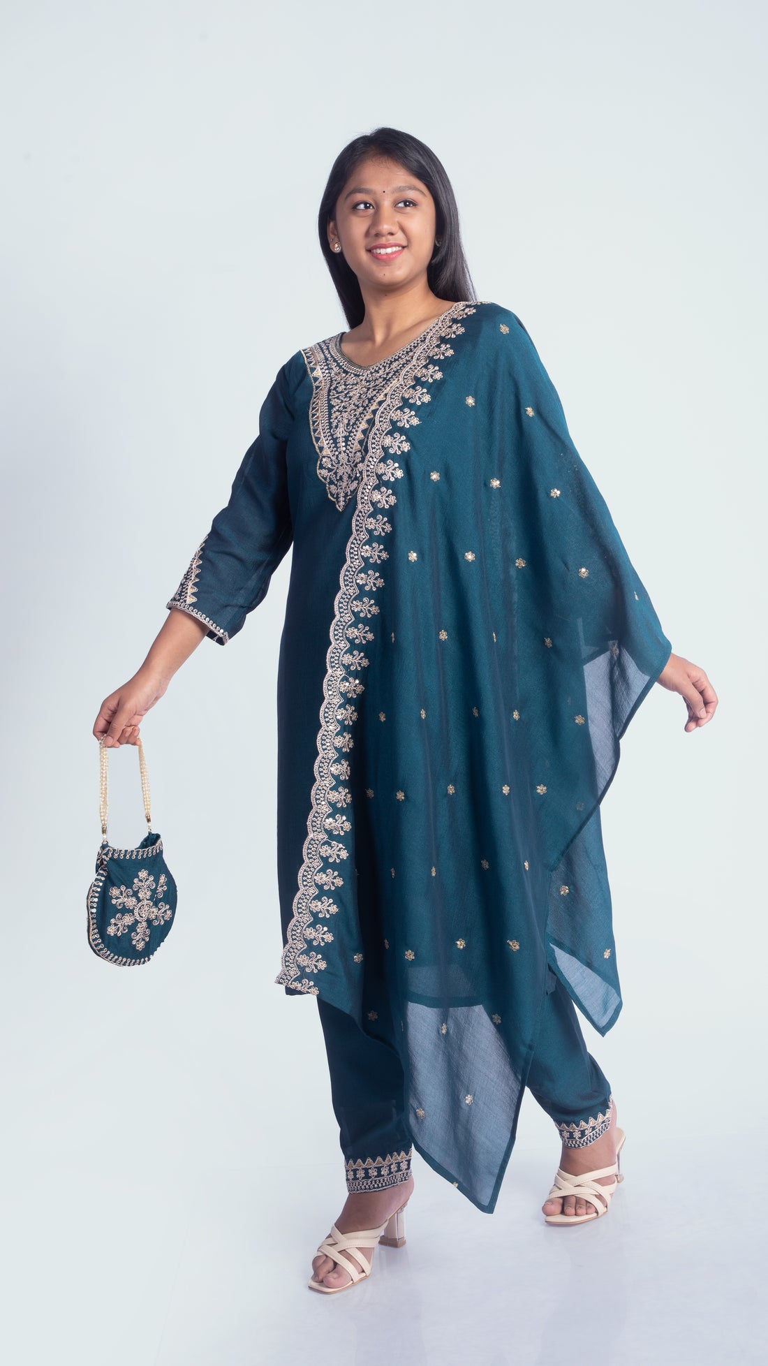 Silk Suit Set with Potli Bag