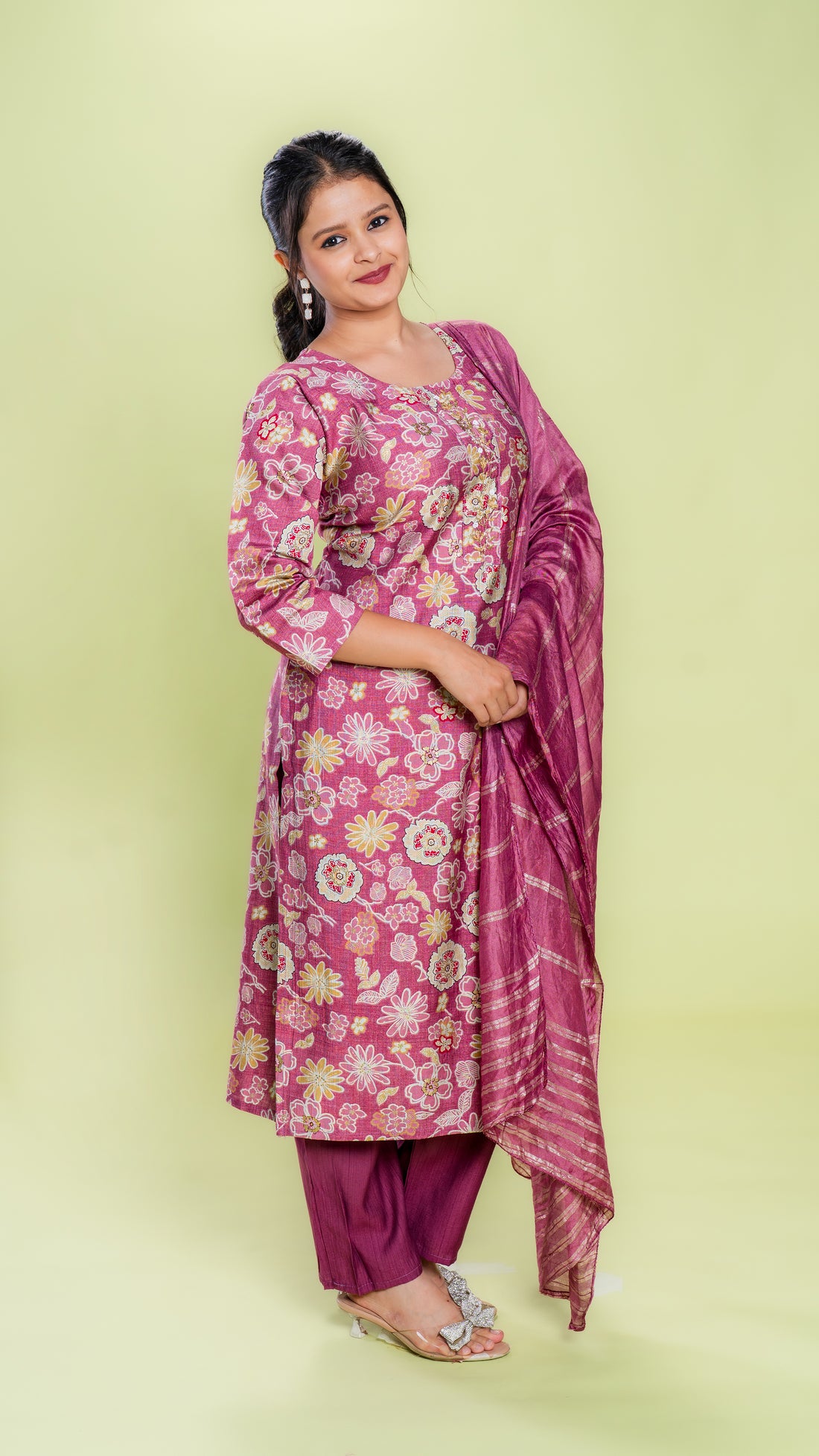 Elevate your wardrobe with this Vibrant Floral Suit Set, available in elegant pink and serene...