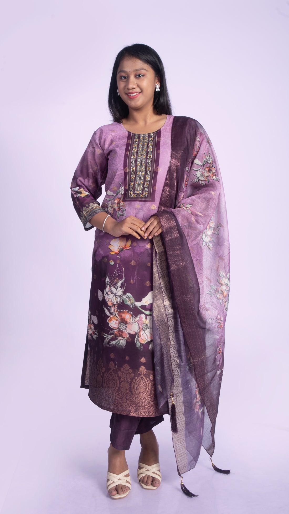 Delicate and elegant, the Floral Whisper Embroidery Suit Set features intricate floral embroidery that adds...