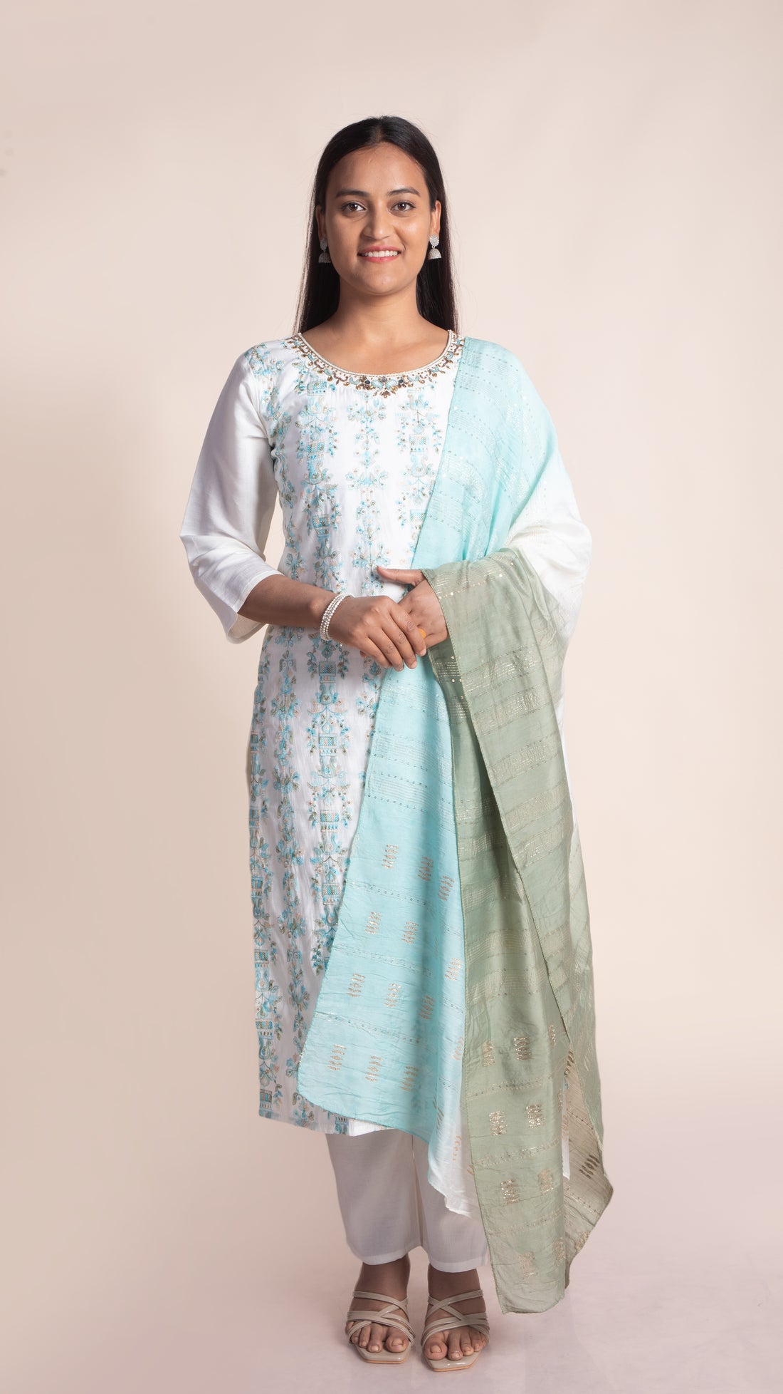 Thread Work Kurta and Pant with Banarasi Print Dupatta