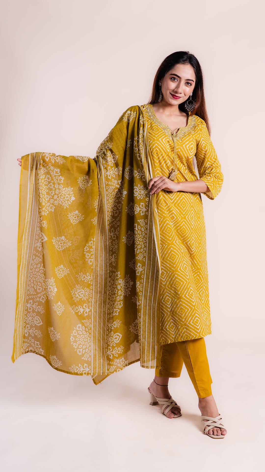 The Sunlit Saga Kurti Set brings vibrant brightness to your wardrobe with its lively colors...