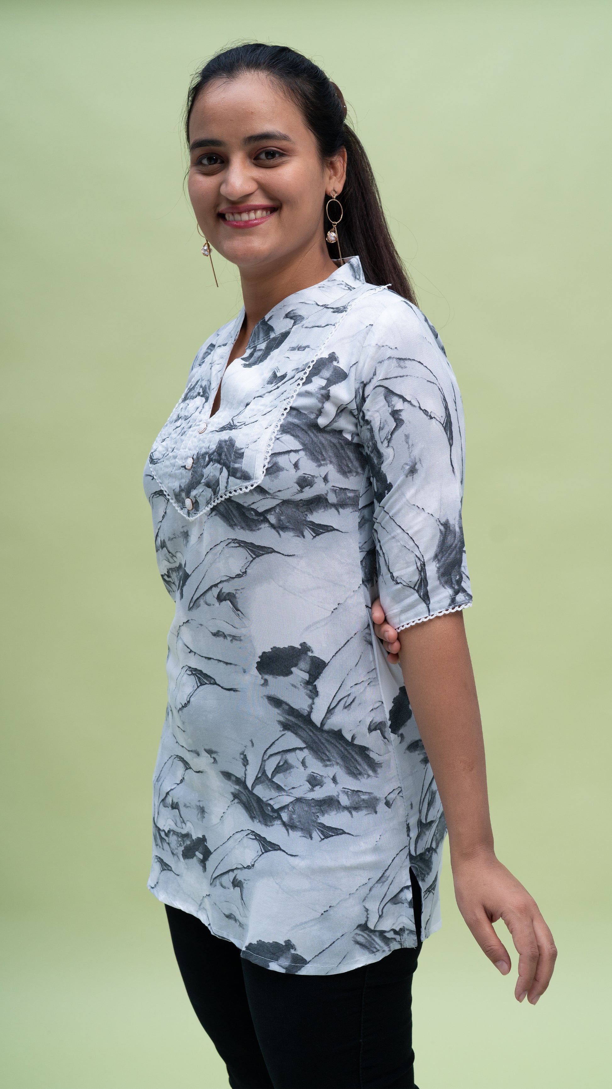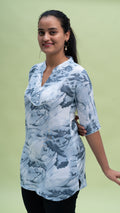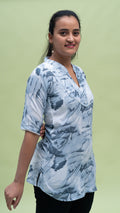 The Tie-Dye Bliss Kurti is a stylish short kurti perfect for summer. Made from a breathable fabric, it keeps you cool and comfortable. Featuring a unique tie-dye design, this kurti is available in three beautiful colors, adding a pop of fun to your wardrobe