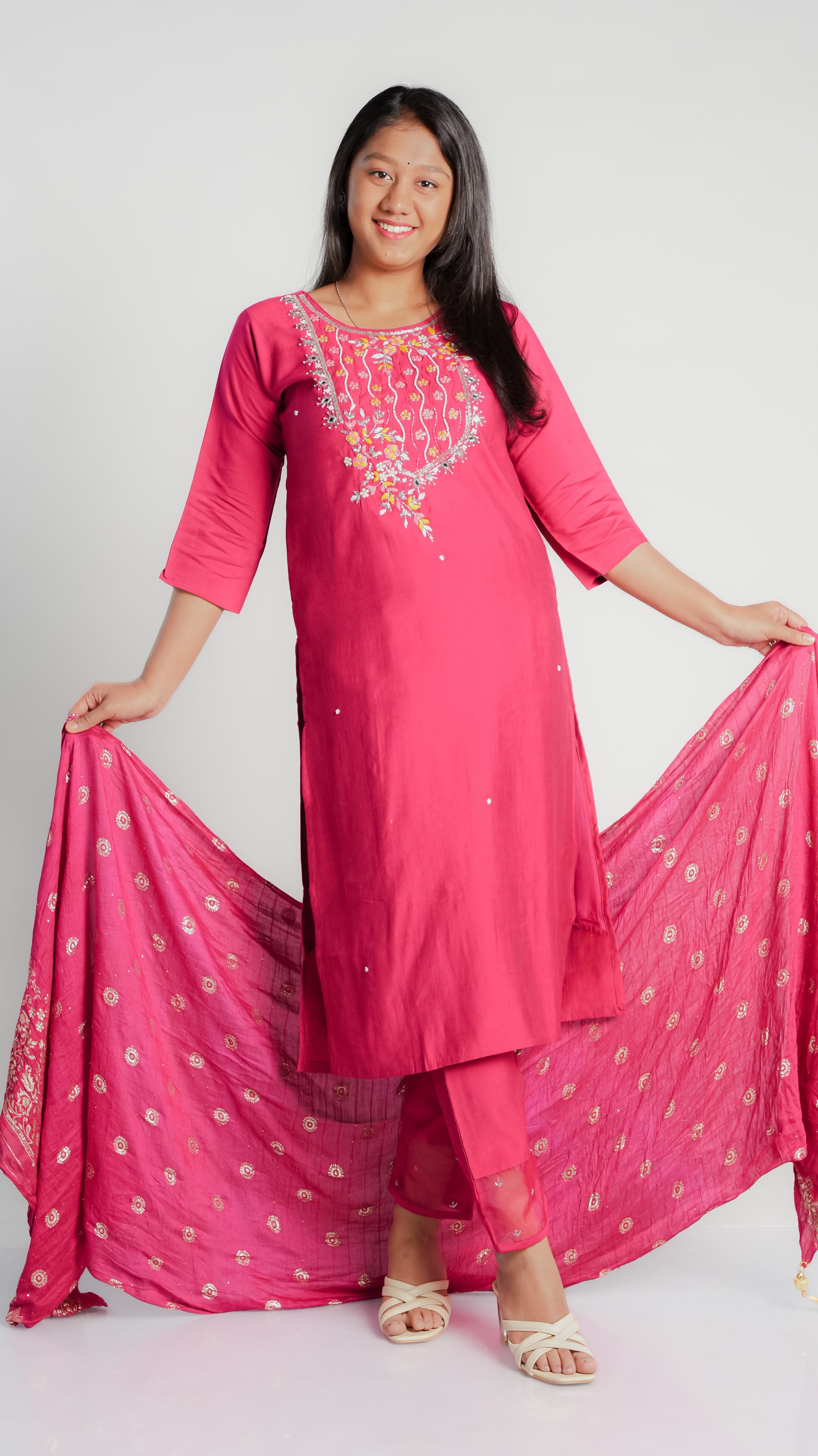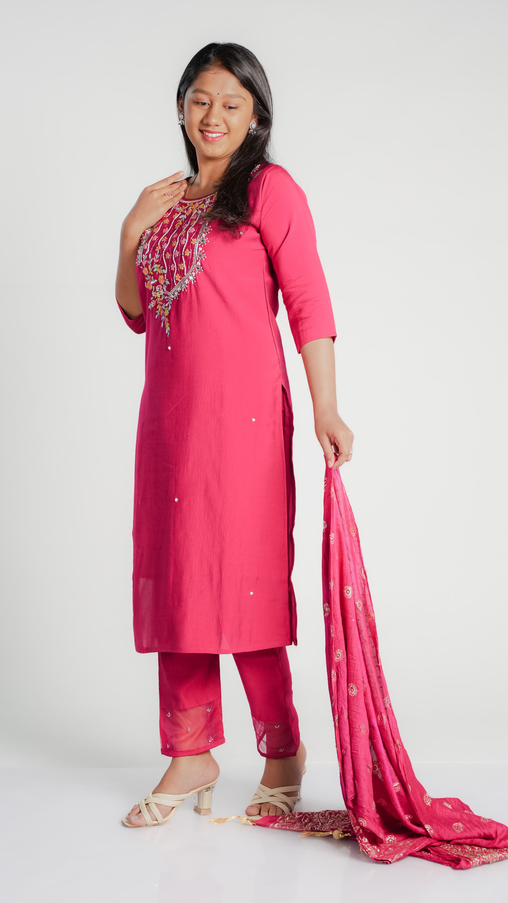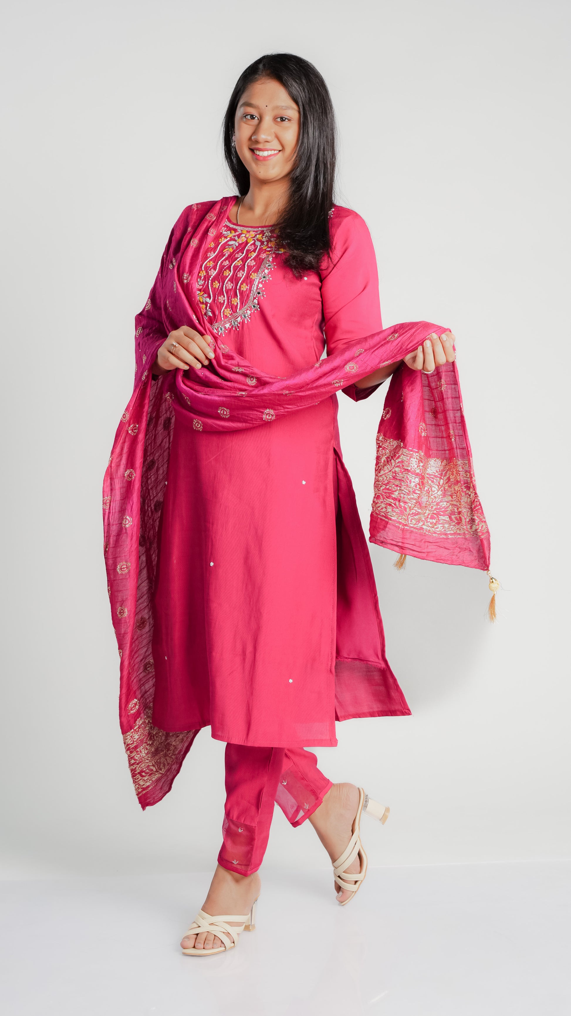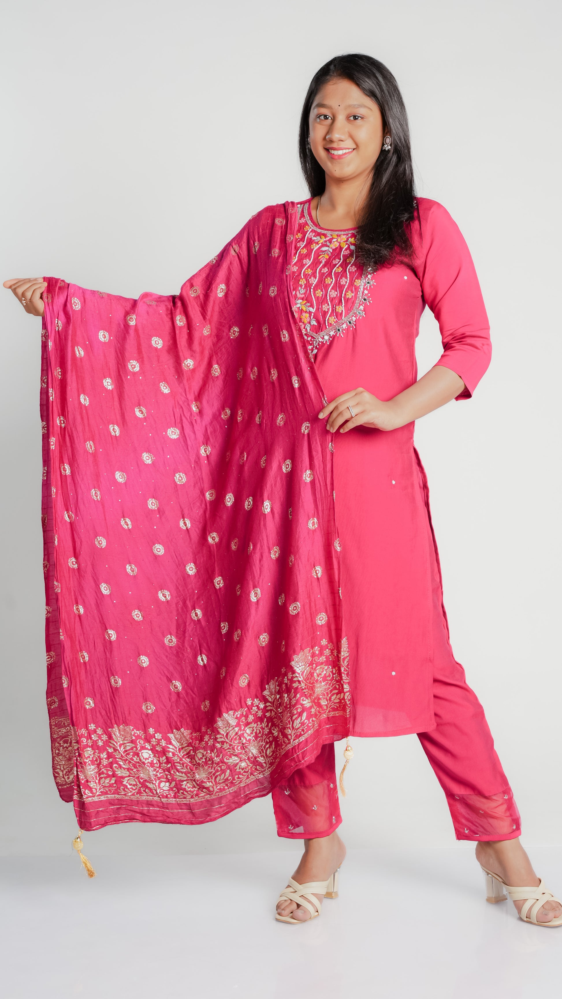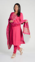 This elegant Banarasi Suit Set is perfect for any special occasion. With intricate beadwork and a stunning Banarasi Dupatta, this suit set offers both style and sophistication. Made from high-quality materials, it provides comfort and durability. Stand out in this unique ensemble and make a statement.