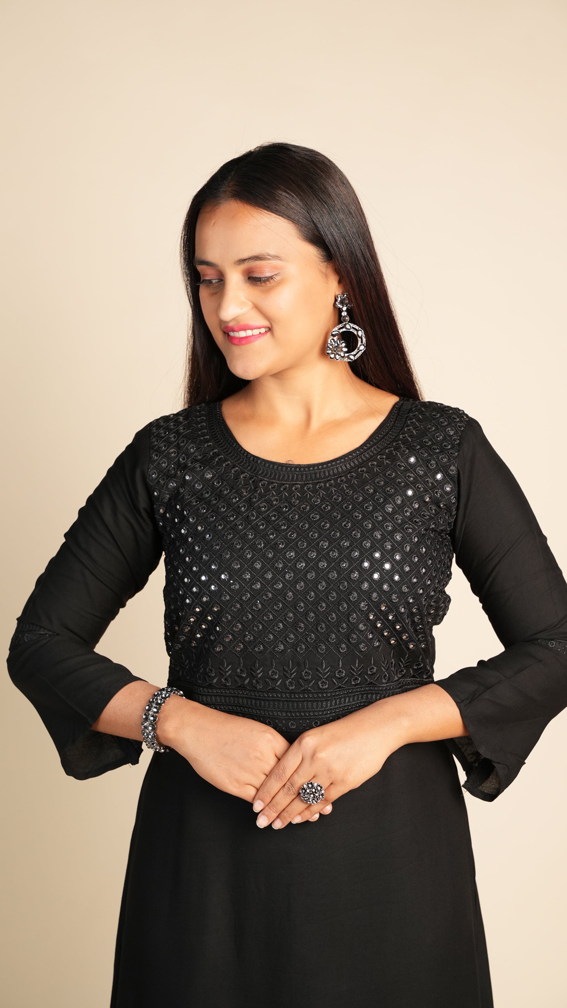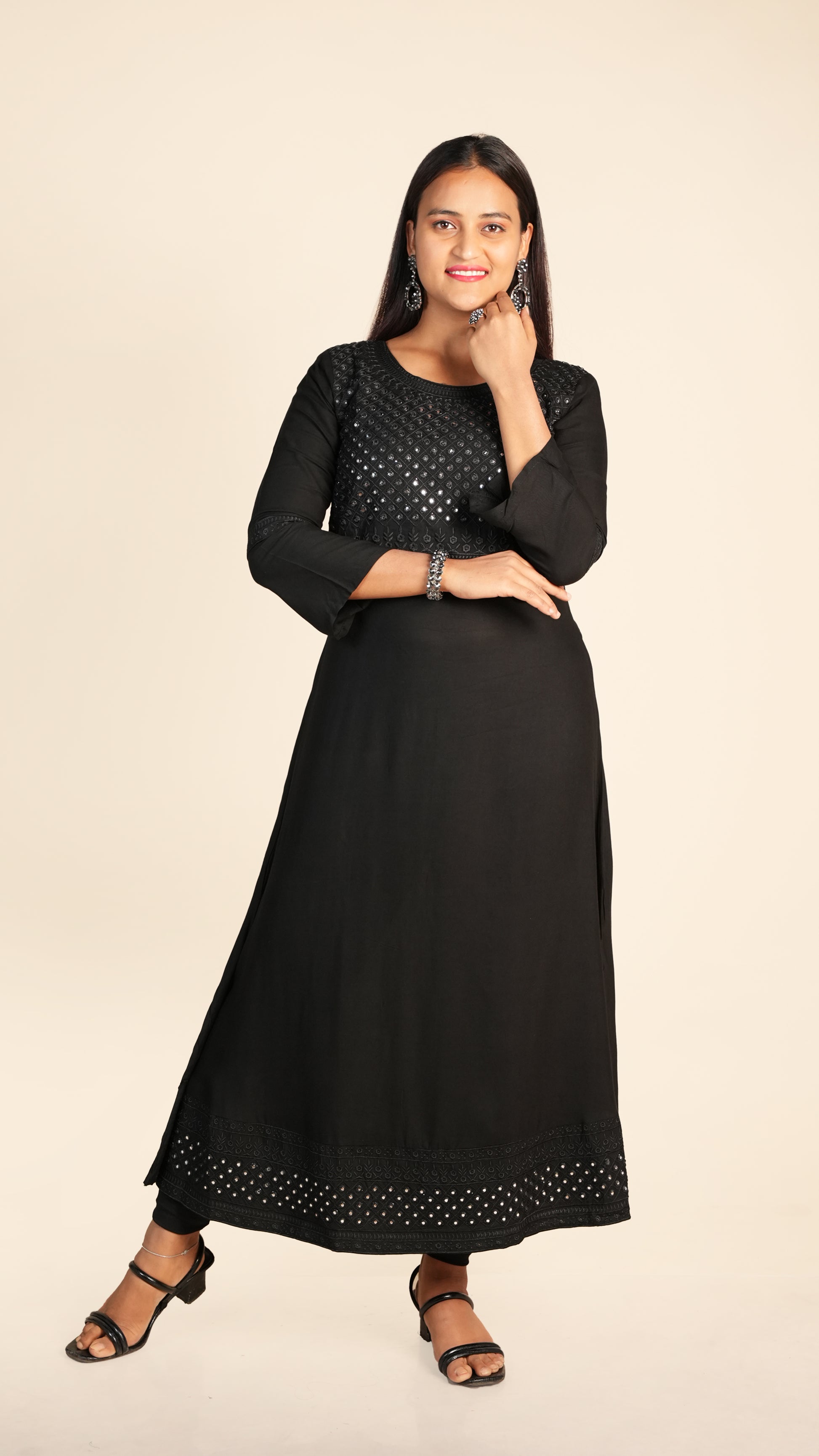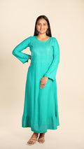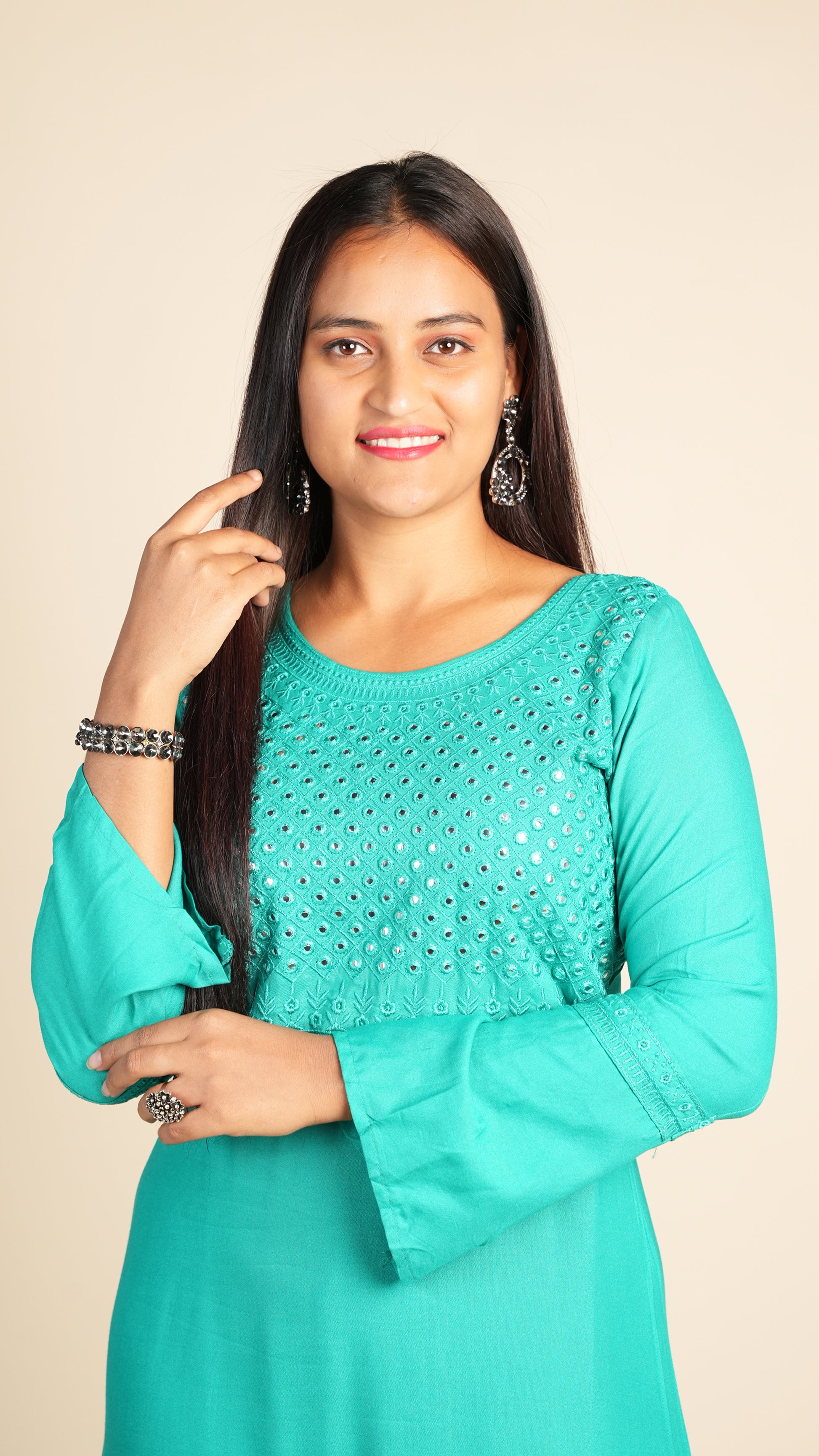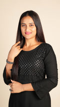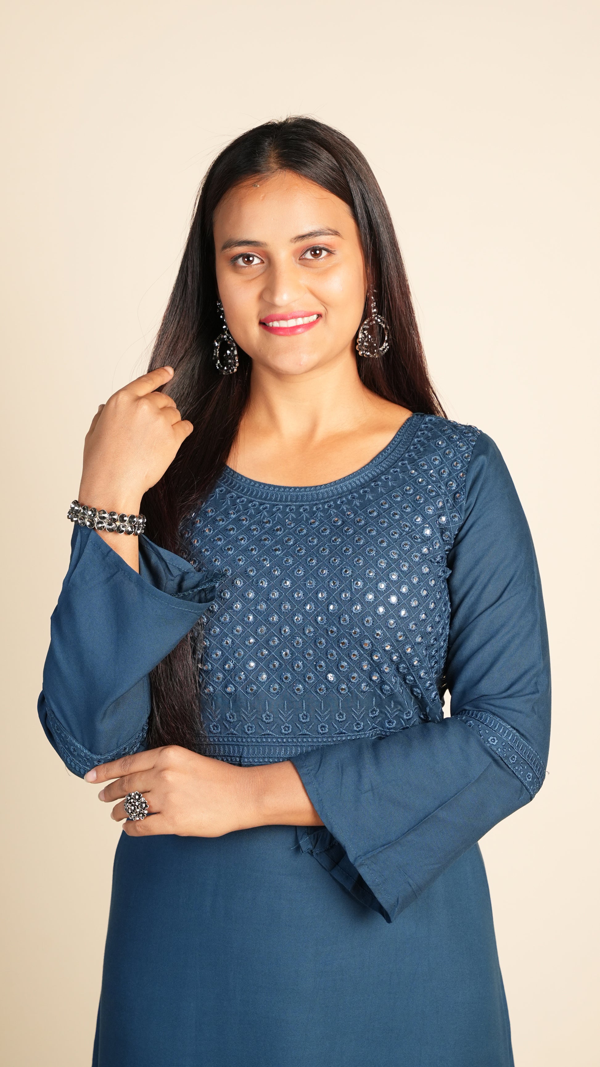 This kurta features bell sleeves and a flared design, adding a touch of elegance and femininity to any outfit. The wide sleeves allow for comfortable movement and the flared silhouette accentuates the natural curves of the body. Perfect for any occasion, this kurta is a must-have in any wardrobe.
