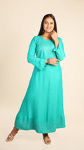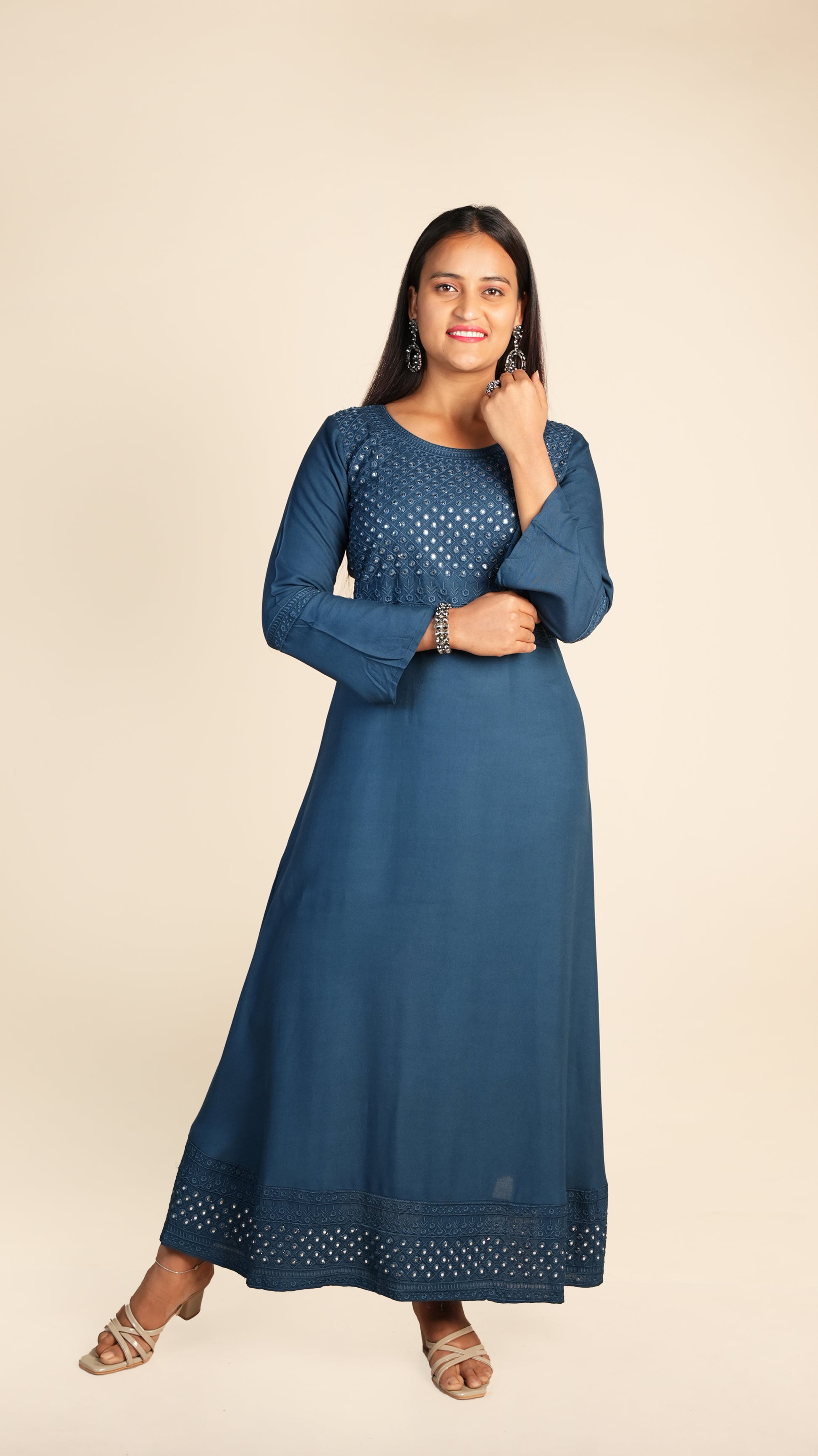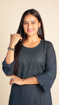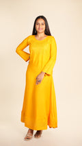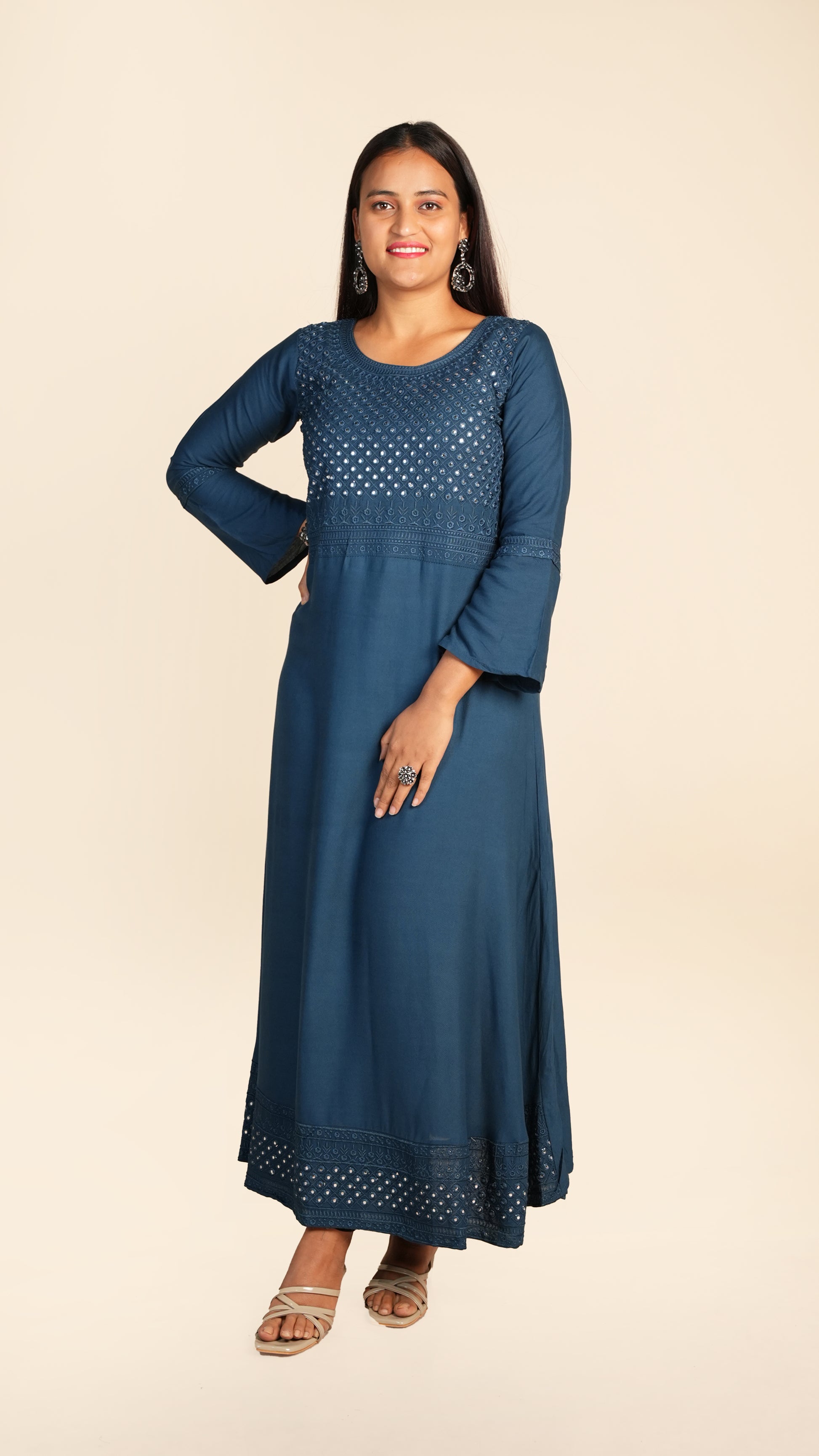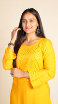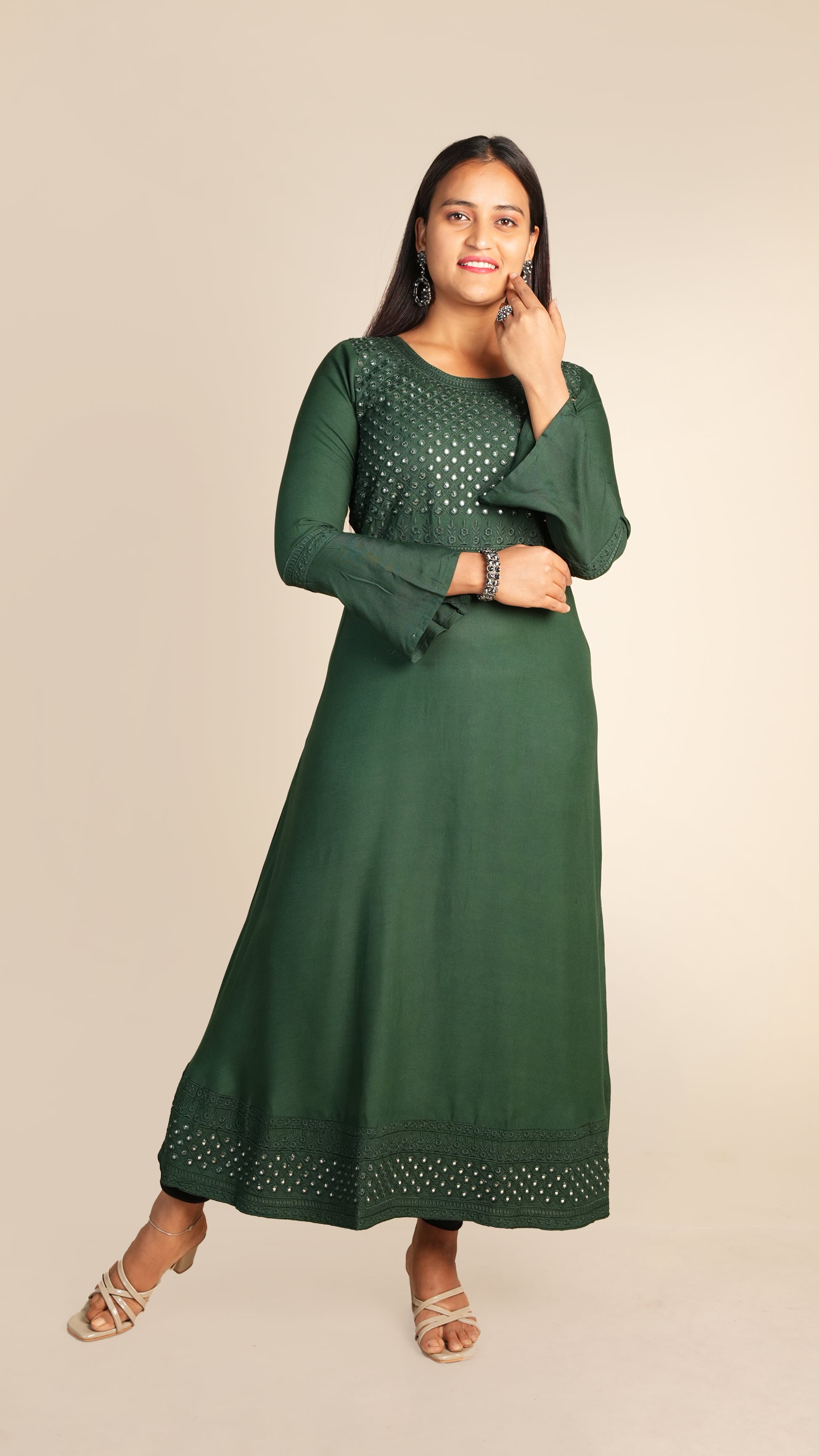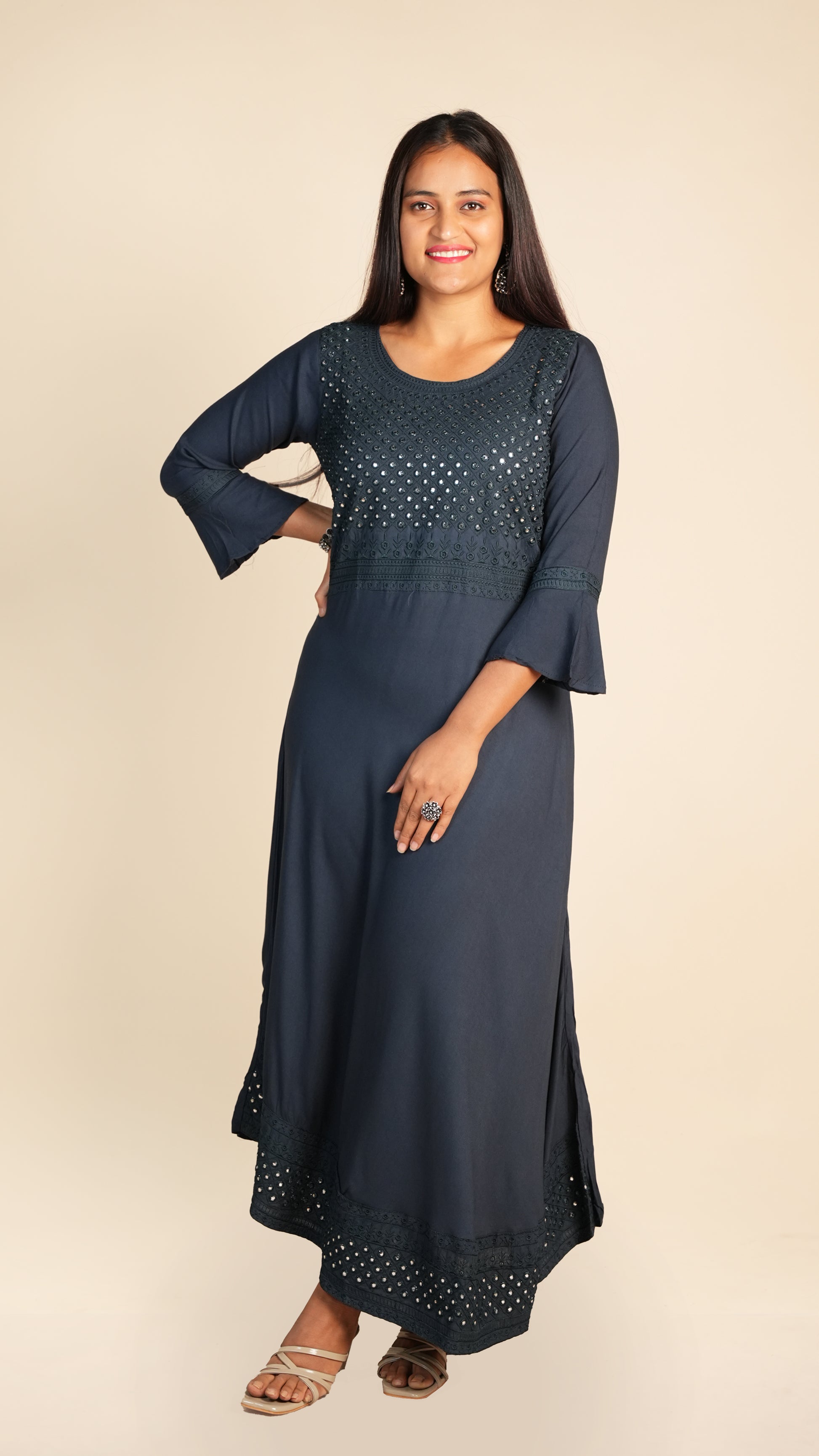 This kurta features bell sleeves and a flared design, adding a touch of elegance and femininity to any outfit. The wide sleeves allow for comfortable movement and the flared silhouette accentuates the natural curves of the body. Perfect for any occasion, this kurta is a must-have in any wardrobe.