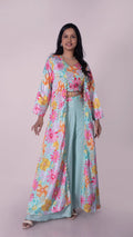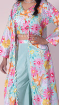 Elevate your style with our Wide Legged Palazzo, paired with a stunning Floral Print Crop Top and Long Jacket. The wide leg design provides comfort and effortless movement, while the striking prints add a touch of elegance. Perfect for any occasion, this ensemble is a must-have for any fashion-forward individual.