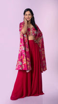 Floral Print Beaded Crop Top with Palazzo and Jacket