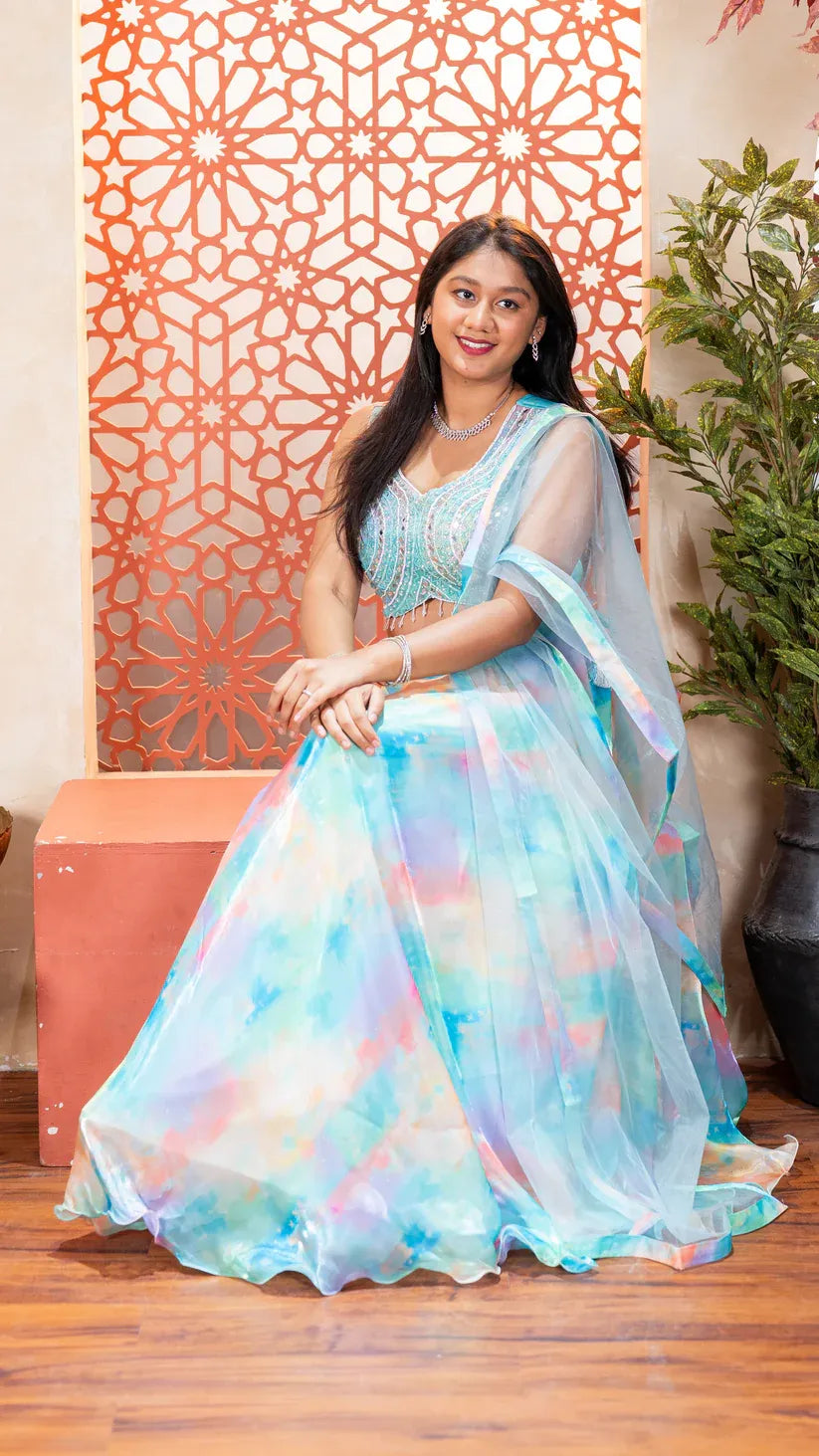 This exquisite Mermaid Lehnga is designed with intricate heavy work on the Crop Top and a delicate Net Dupatta. Its unique Mermaid silhouette compliments and flatters the figure. Perfect for any formal event or special occasion.