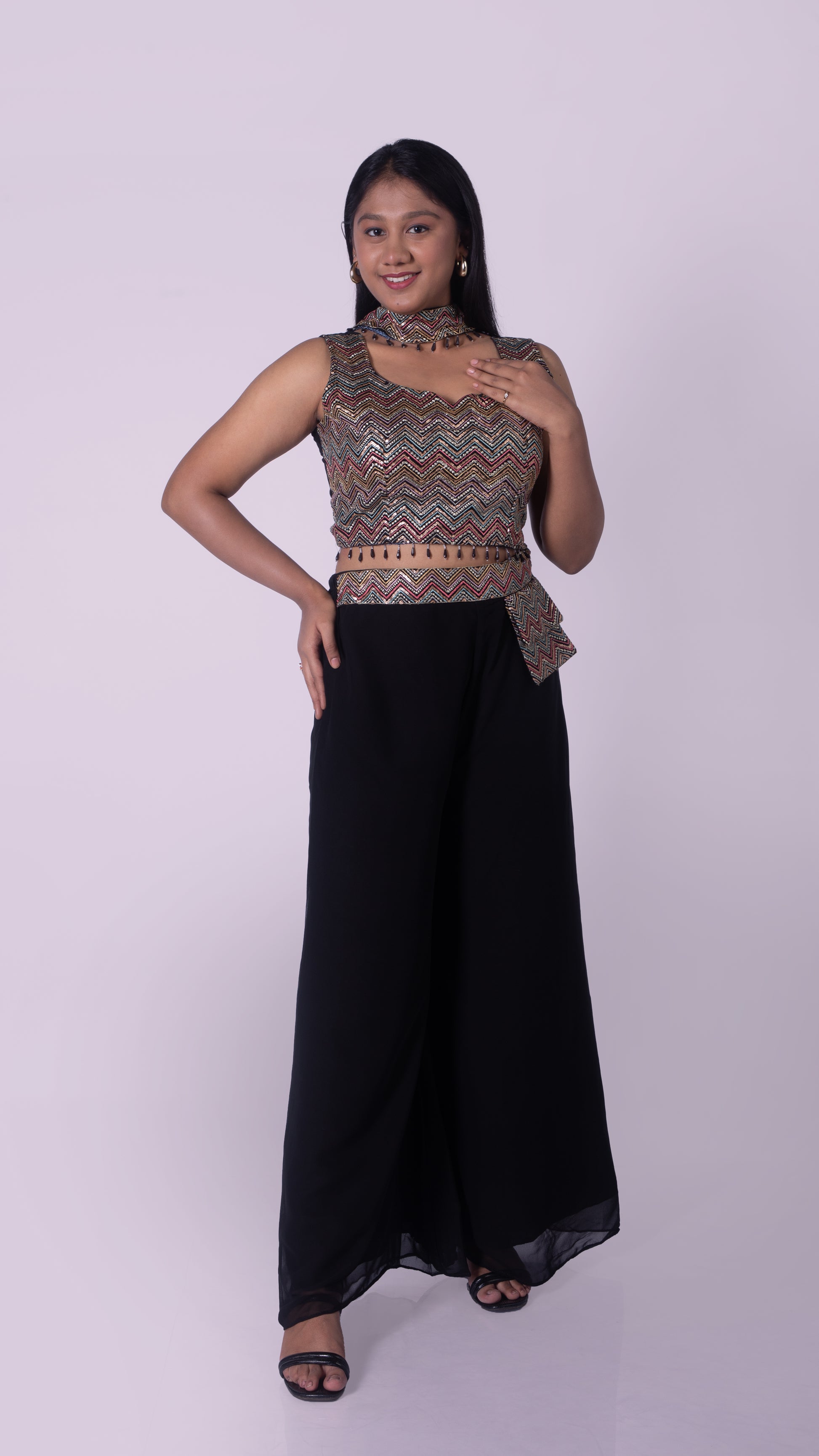Palazzo with Attached Pocket and Embroidery with Beads Worked Top and Choker Dupatta