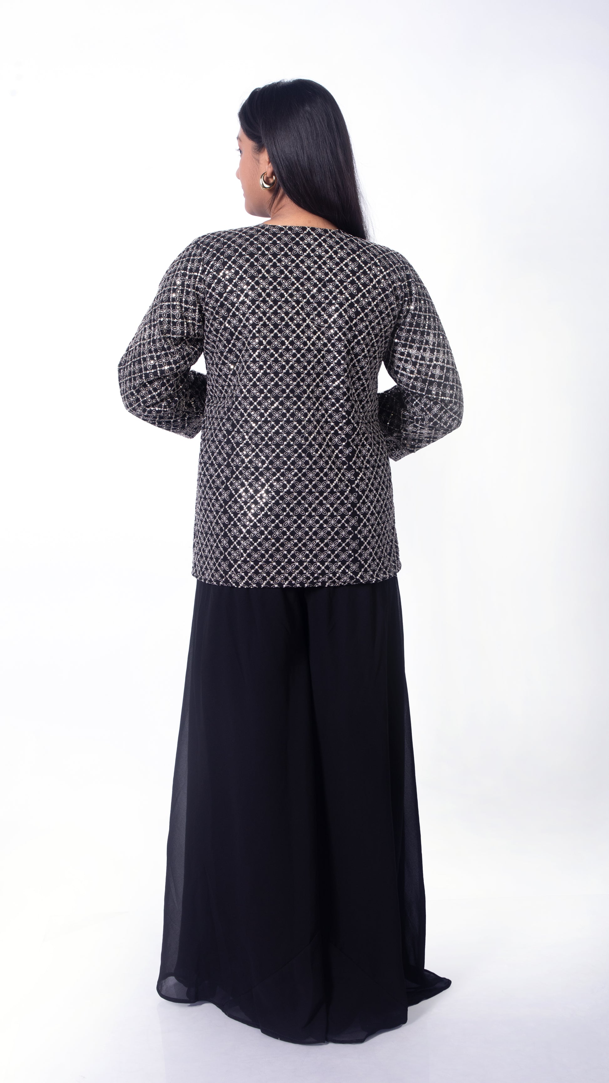 Flared Palazzo and Crop Top with Heavy Worked Jacket and Additional Jutti