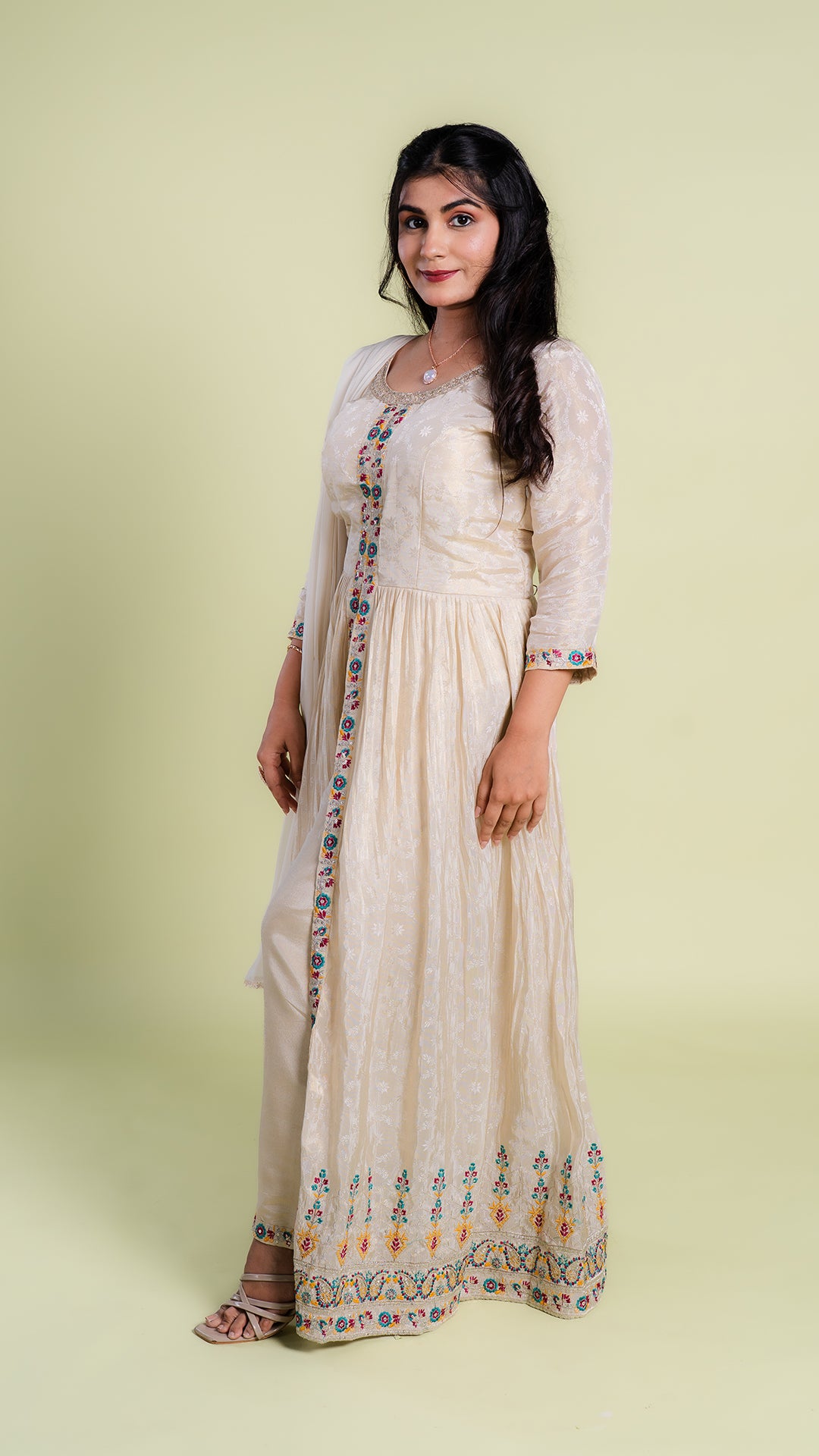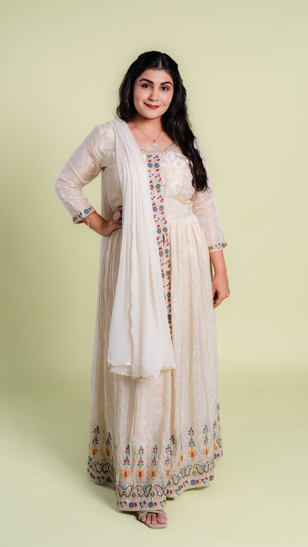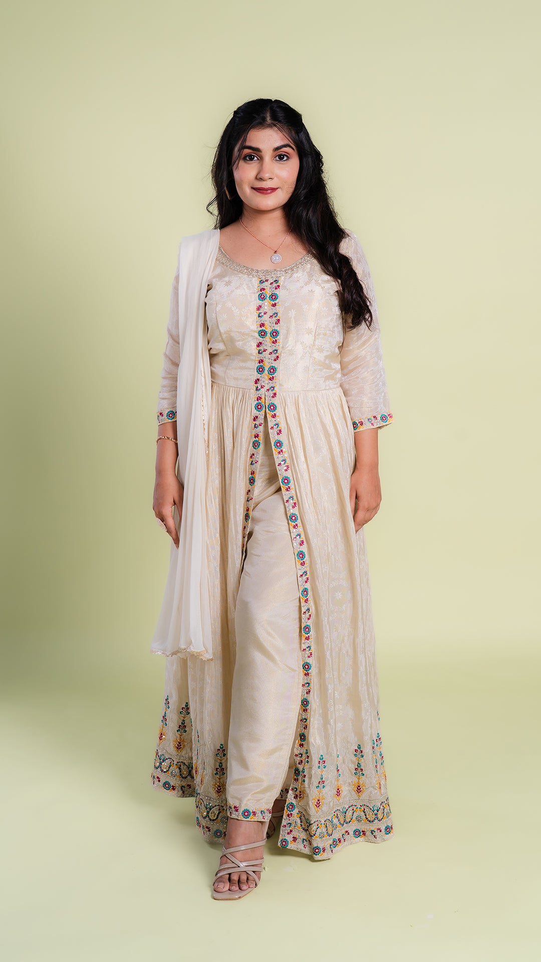 This Front Slit Embroidered Cape Top is elegantly designed with intricate embroidery and a stylish front slit. Paired with a straight pant and chiffon dupatta, this outfit exudes grace and sophistication. Perfect for any special occasion, this ensemble is sure to make you stand out from the crowd.