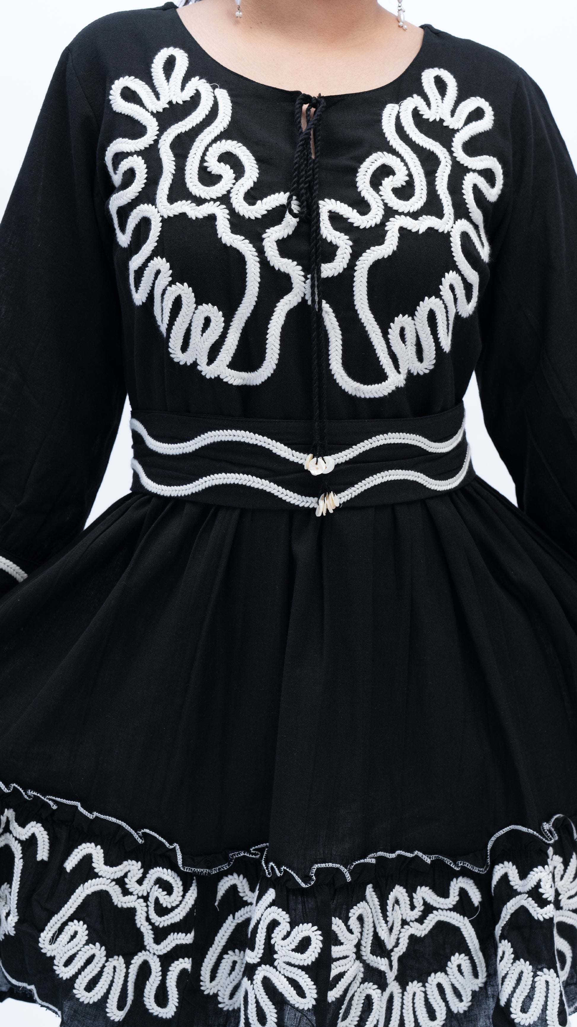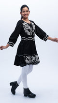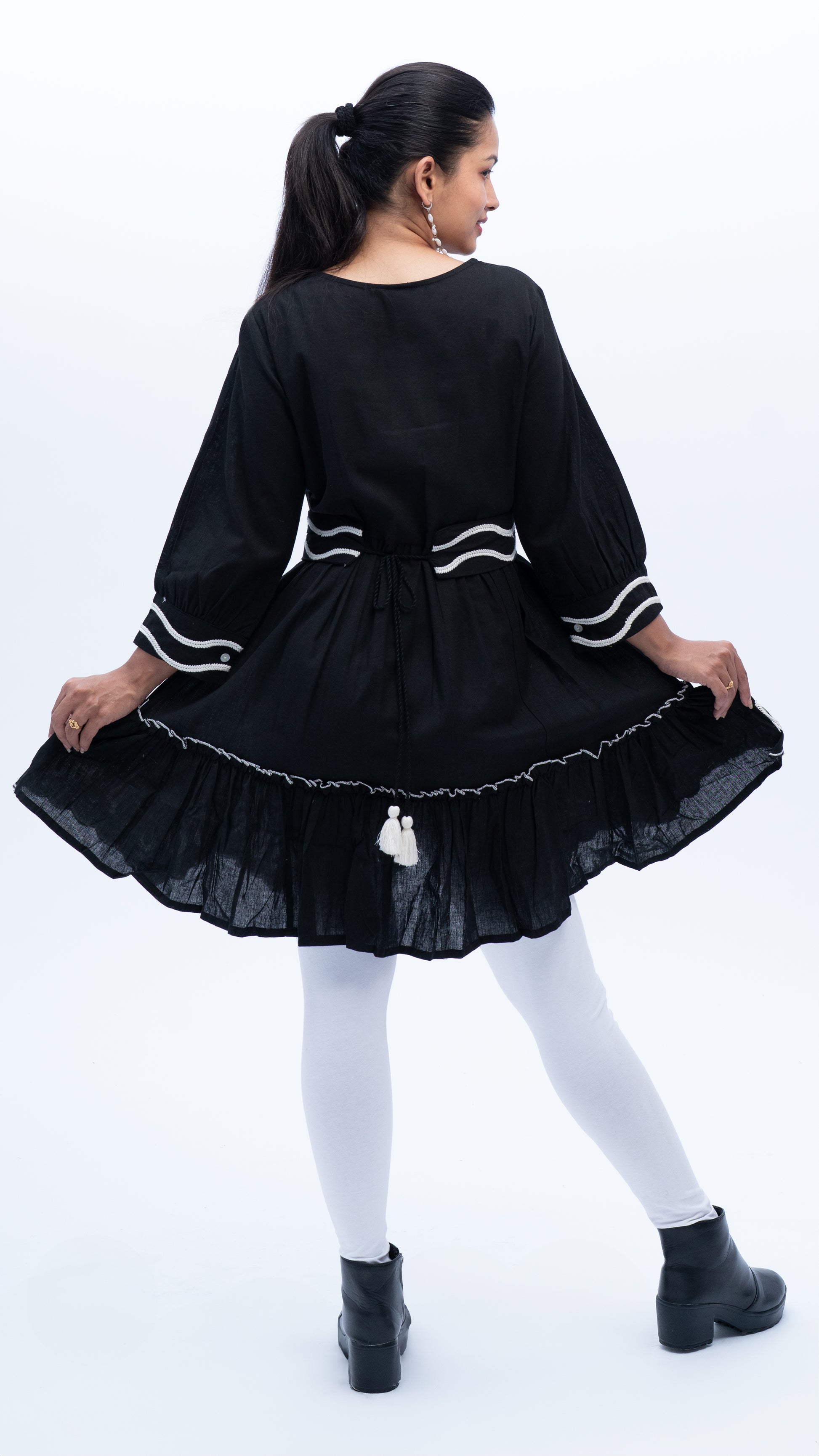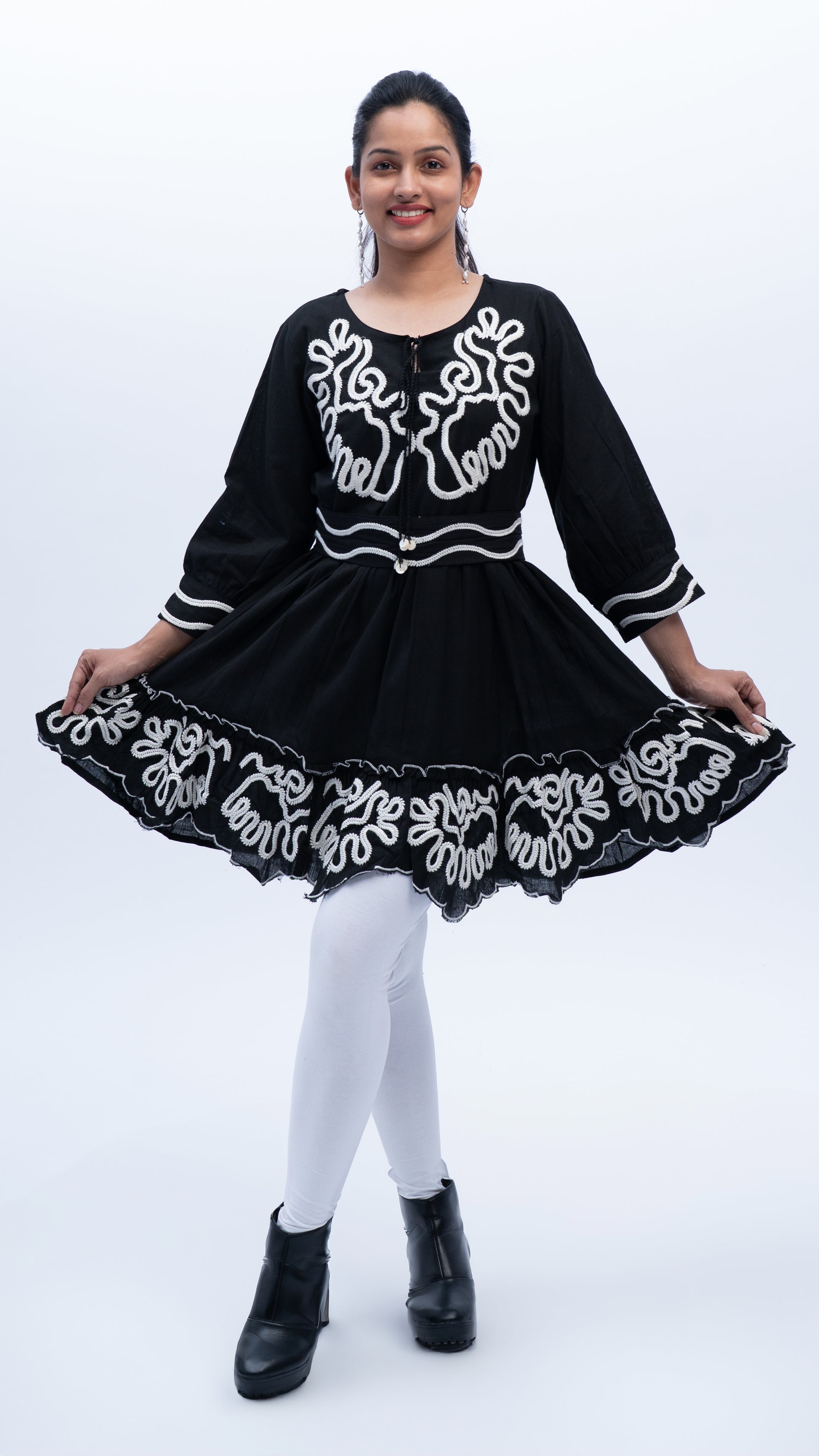 Make a bold style statement with this Black Tunic with White Thread Work. The elegant contrast of black and white is enhanced by intricate thread detailing, creating a sophisticated and timeless look. Perfect for both casual and semi-formal occasions, this tunic is crafted from soft, breathable fabric to keep you comfortable throughout the day.