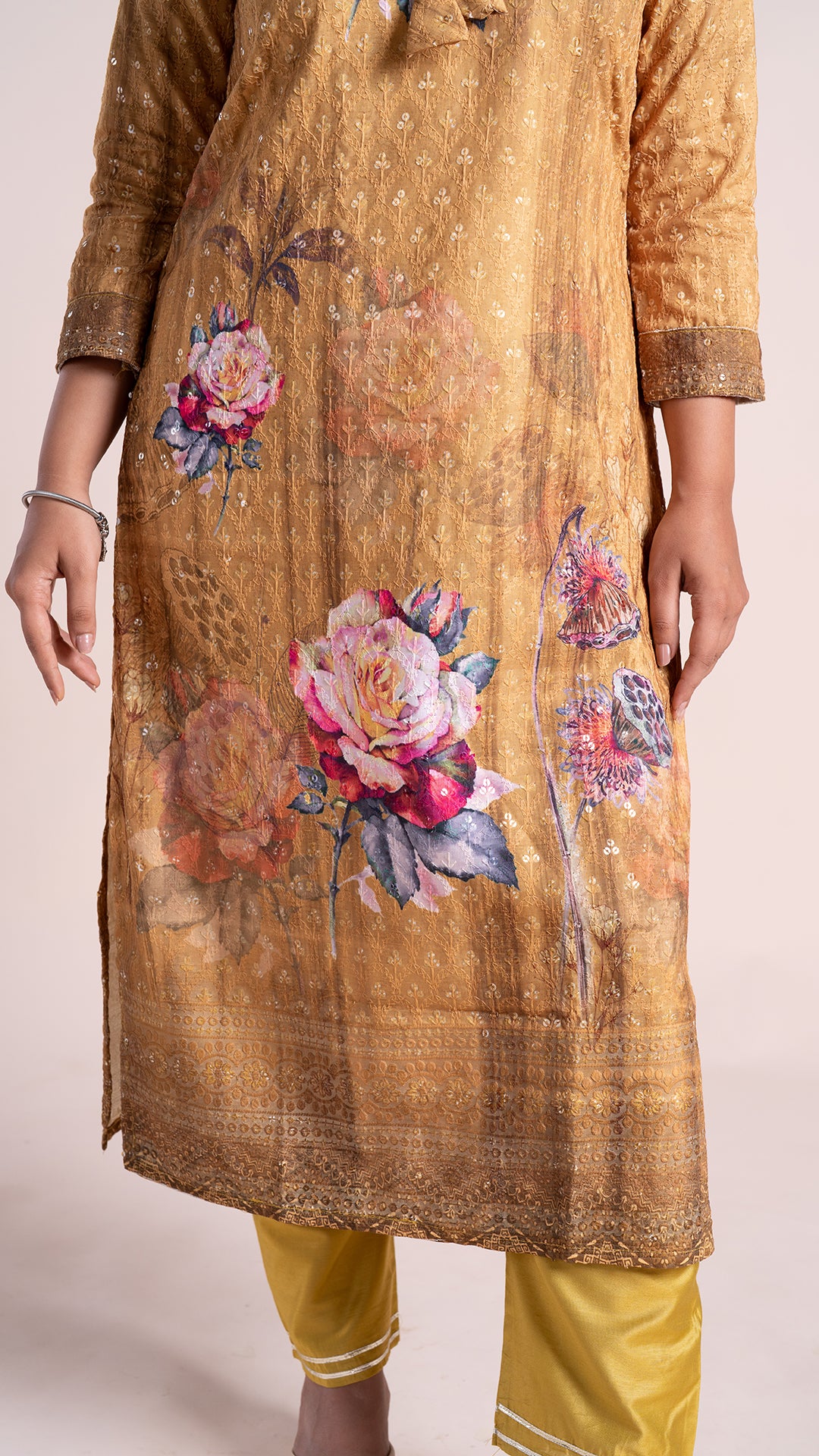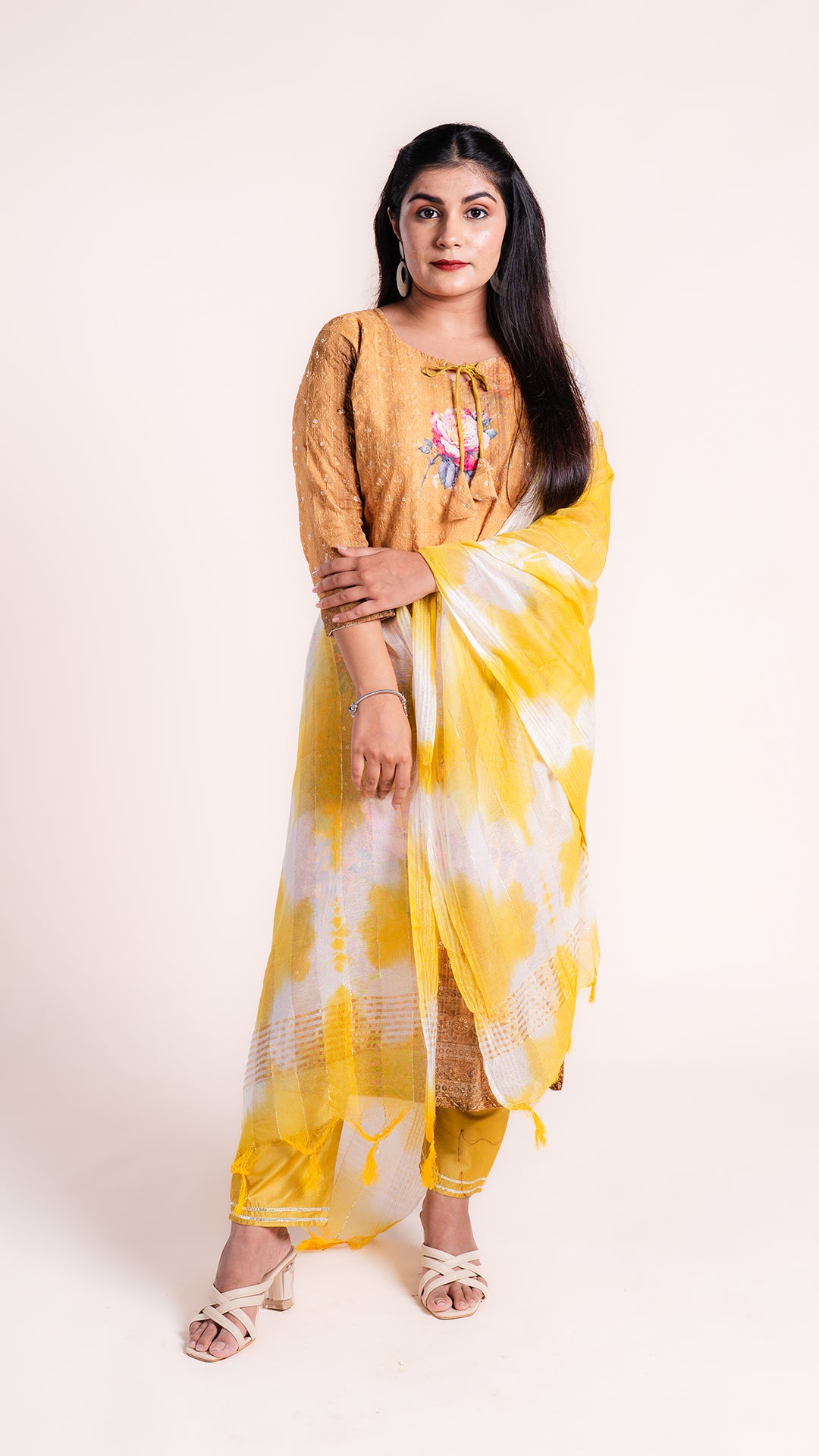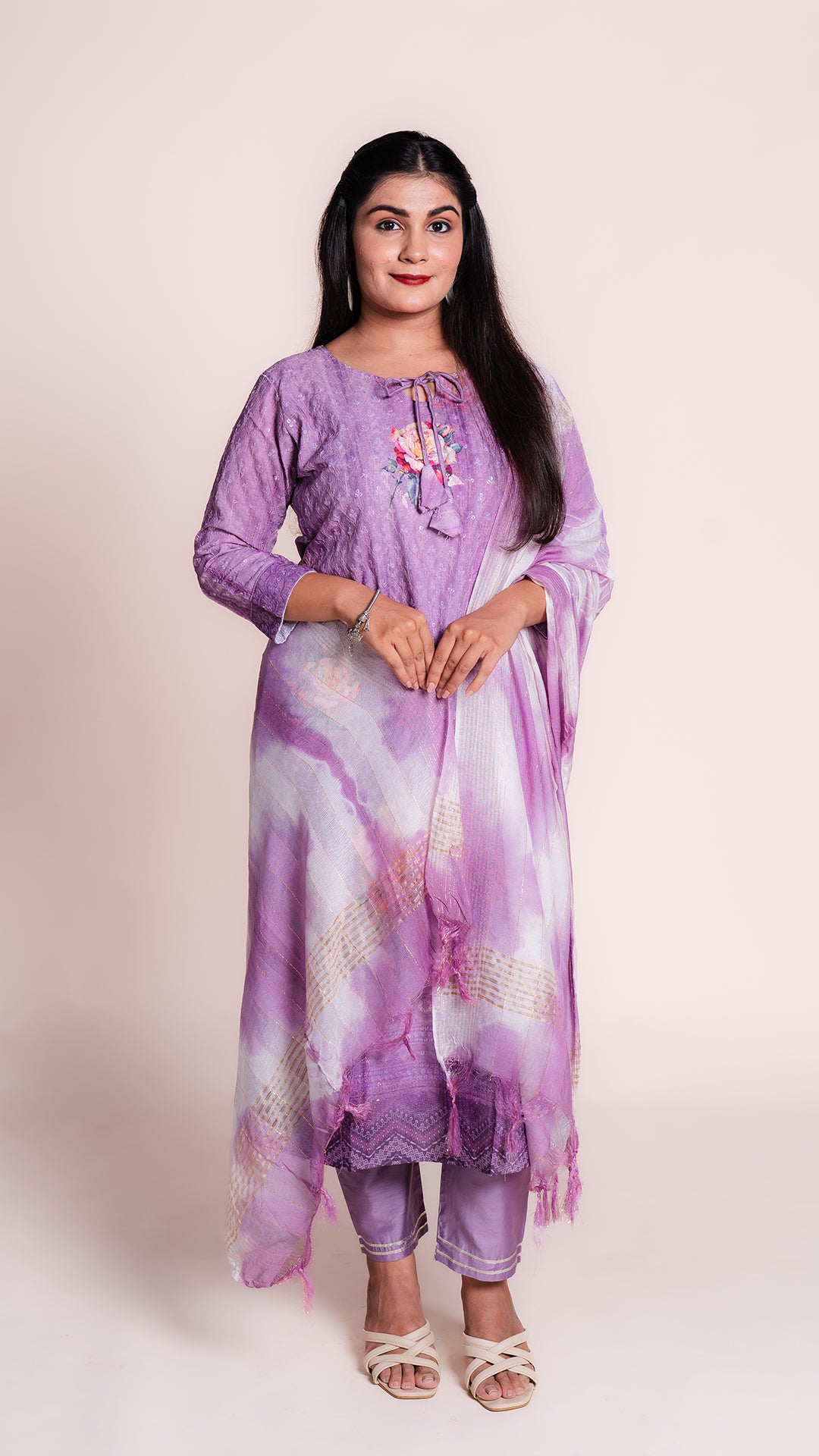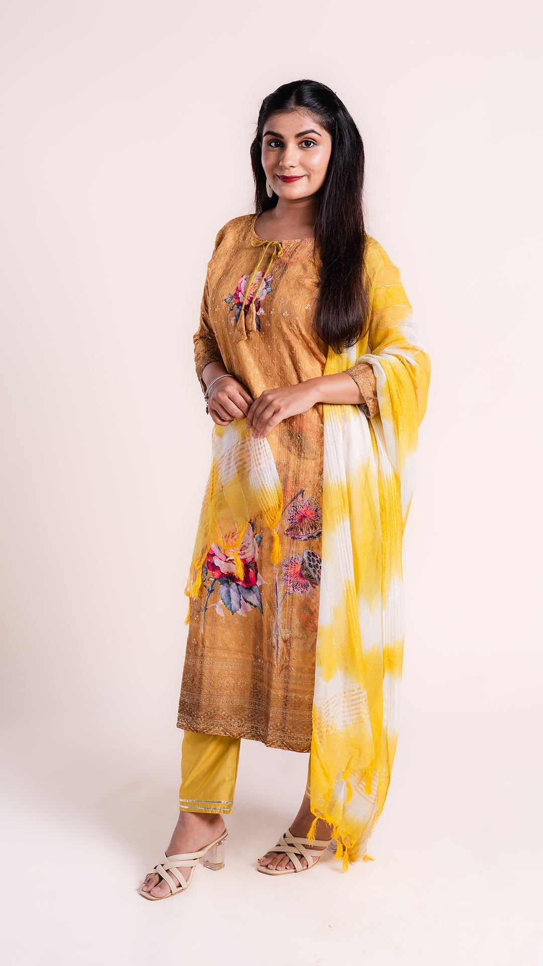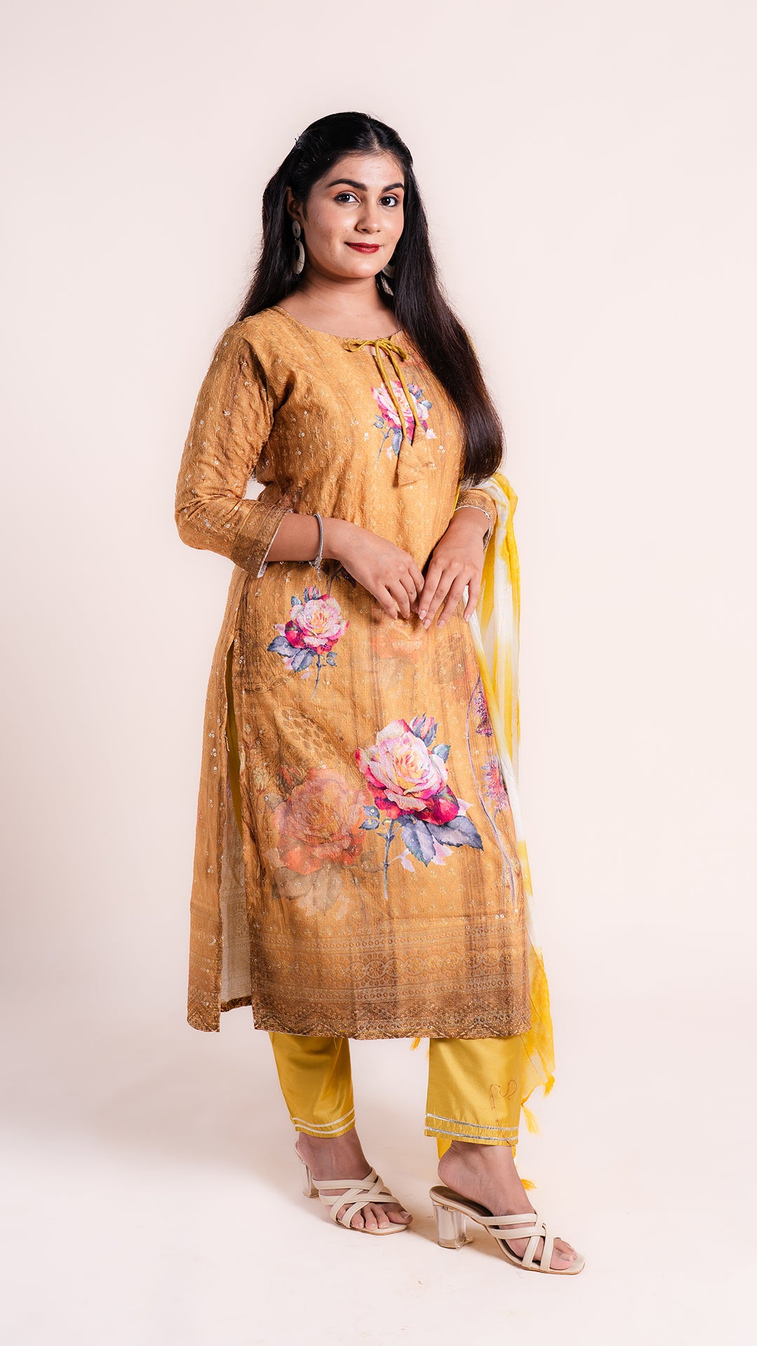 This Chikankari Suit Set features a beautiful Digital Print Kurti, showcasing the perfect blend of tradition and modernity. Made with high-quality materials, this set is lightweight and comfortable, making it perfect for both casual and formal occasions. Elevate your wardrobe with this statement piece.