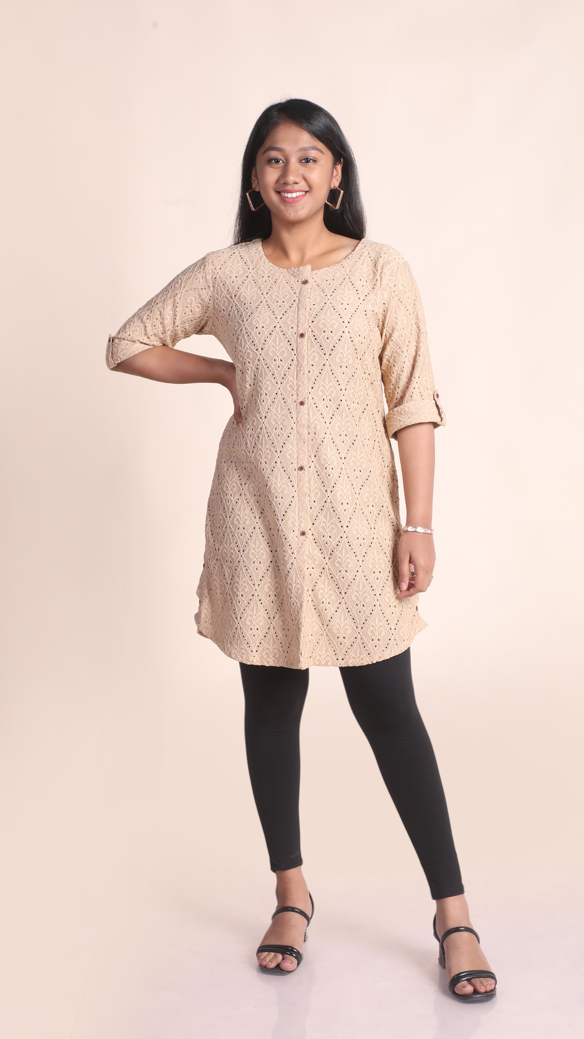 This Cotton Blend Chikankari Kurti is the perfect blend of comfort and style. Made with a high-quality cotton blend fabric, it offers a soft and breathable feel while showcasing beautiful Chikankari embroidery. Elevate your wardrobe with this versatile and elegant piece.