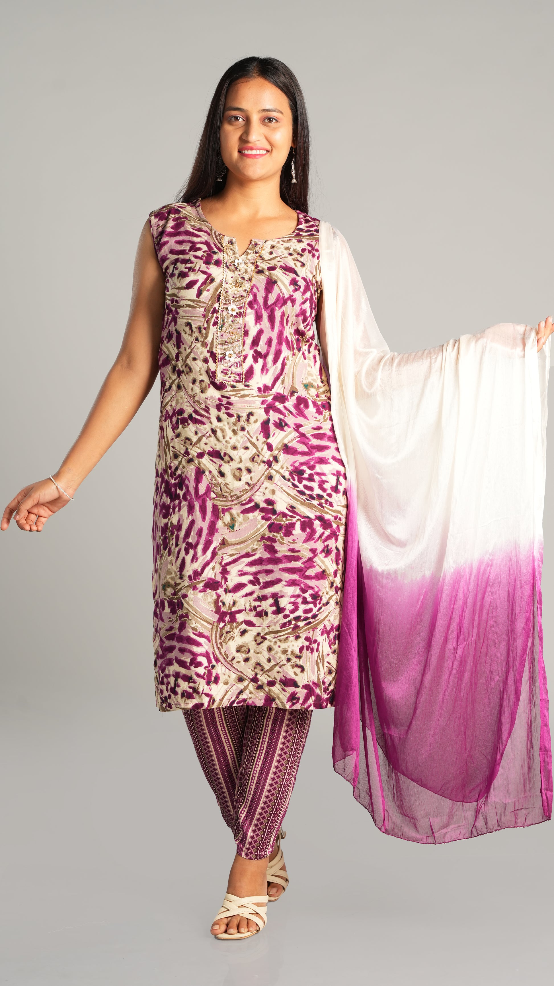 Introducing our 100% cotton blend suit set with a luxurious shinon dupatta. This suit set combines the comfort of cotton with the elegance of shinon to create a versatile and stylish outfit for any occasion. Upgrade your wardrobe with this expertly crafted and durable suit set.