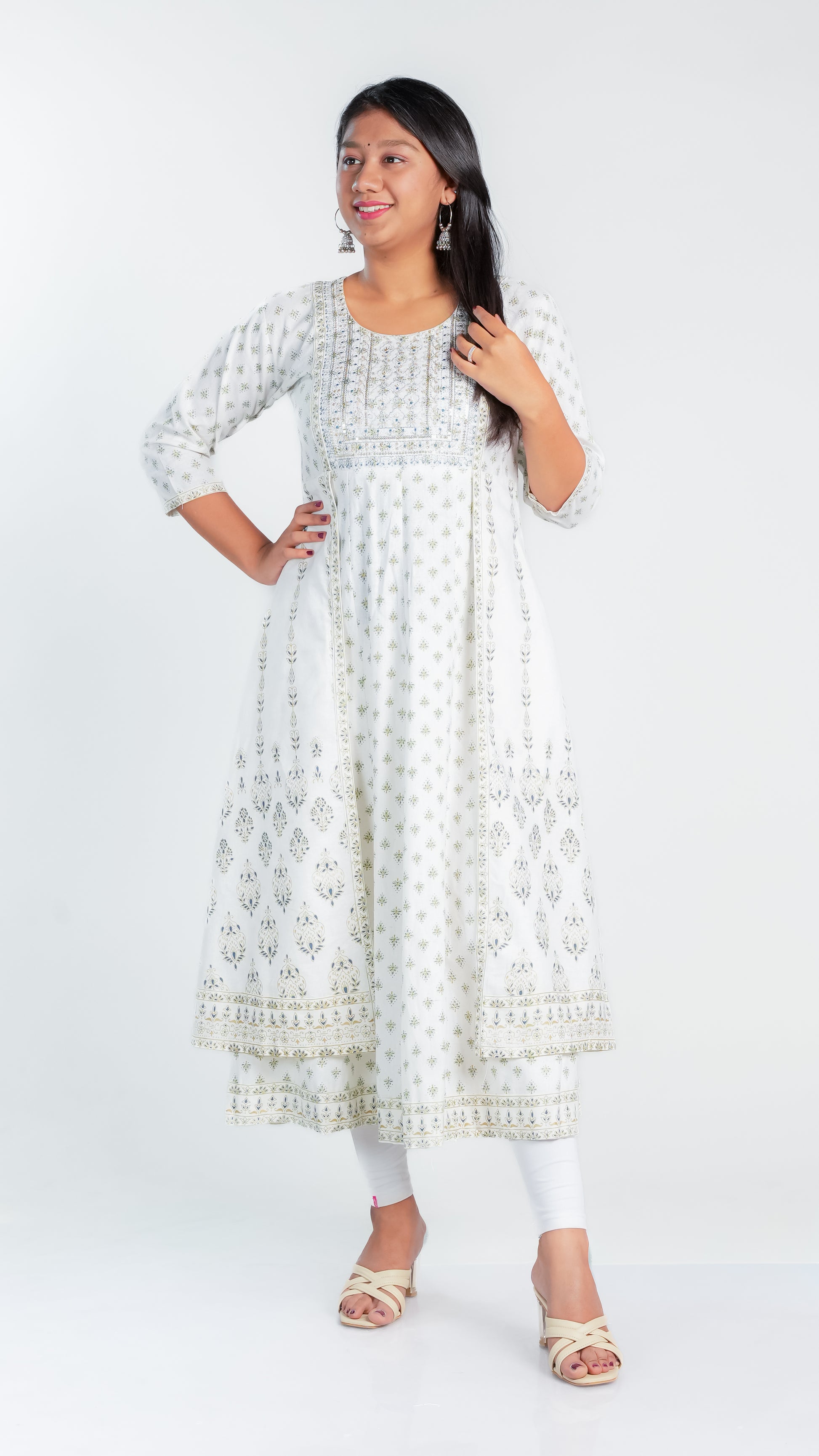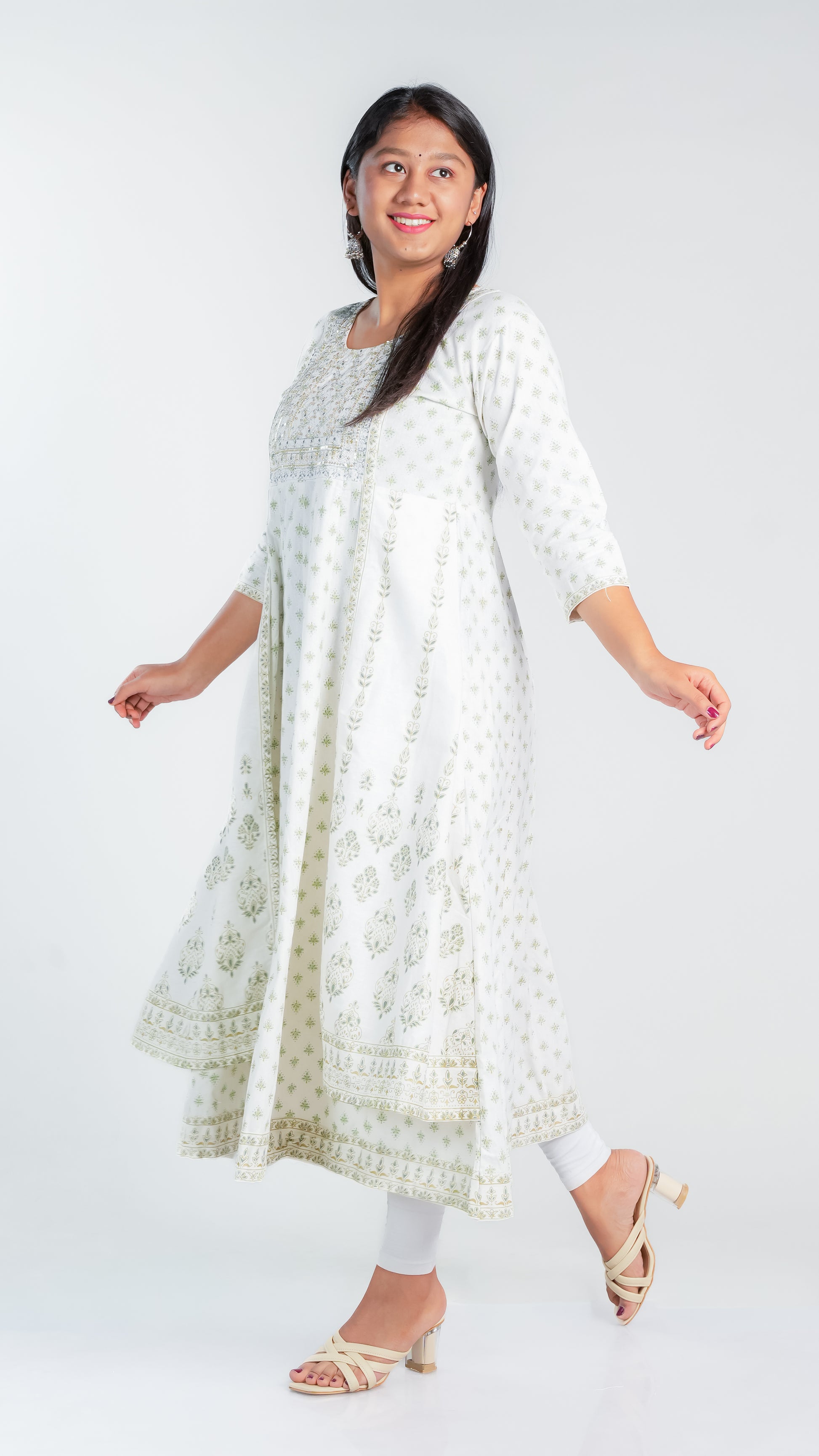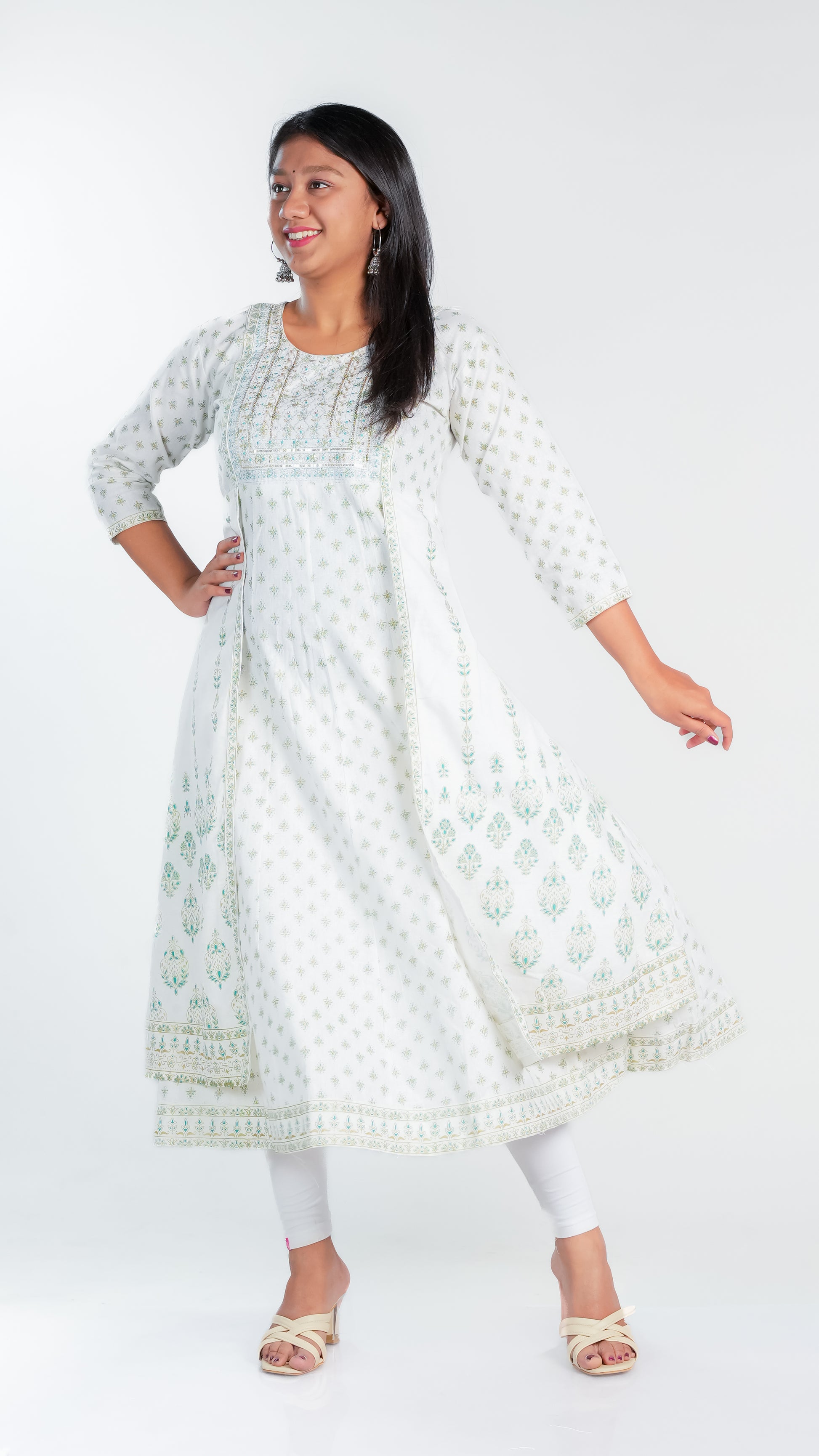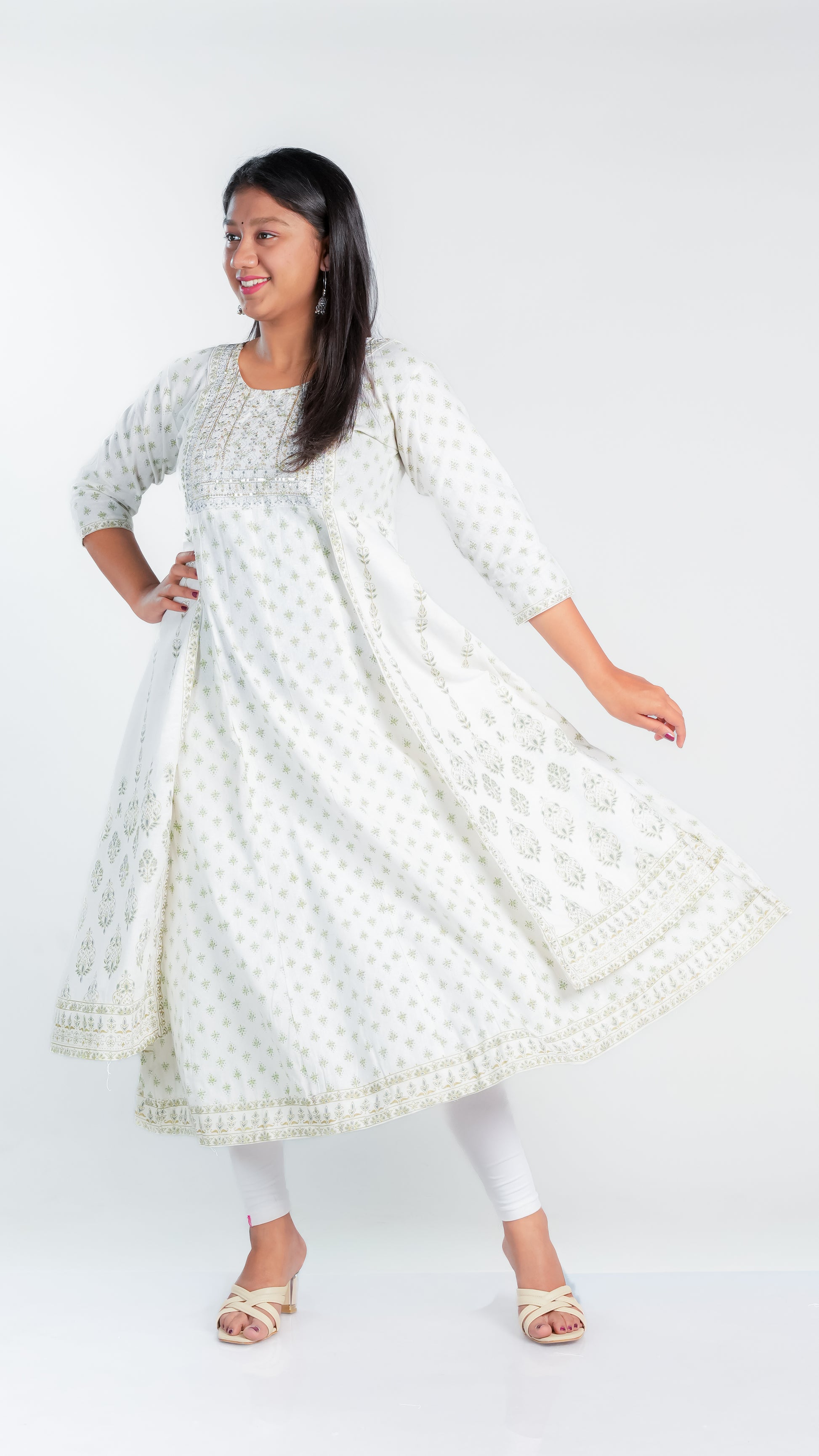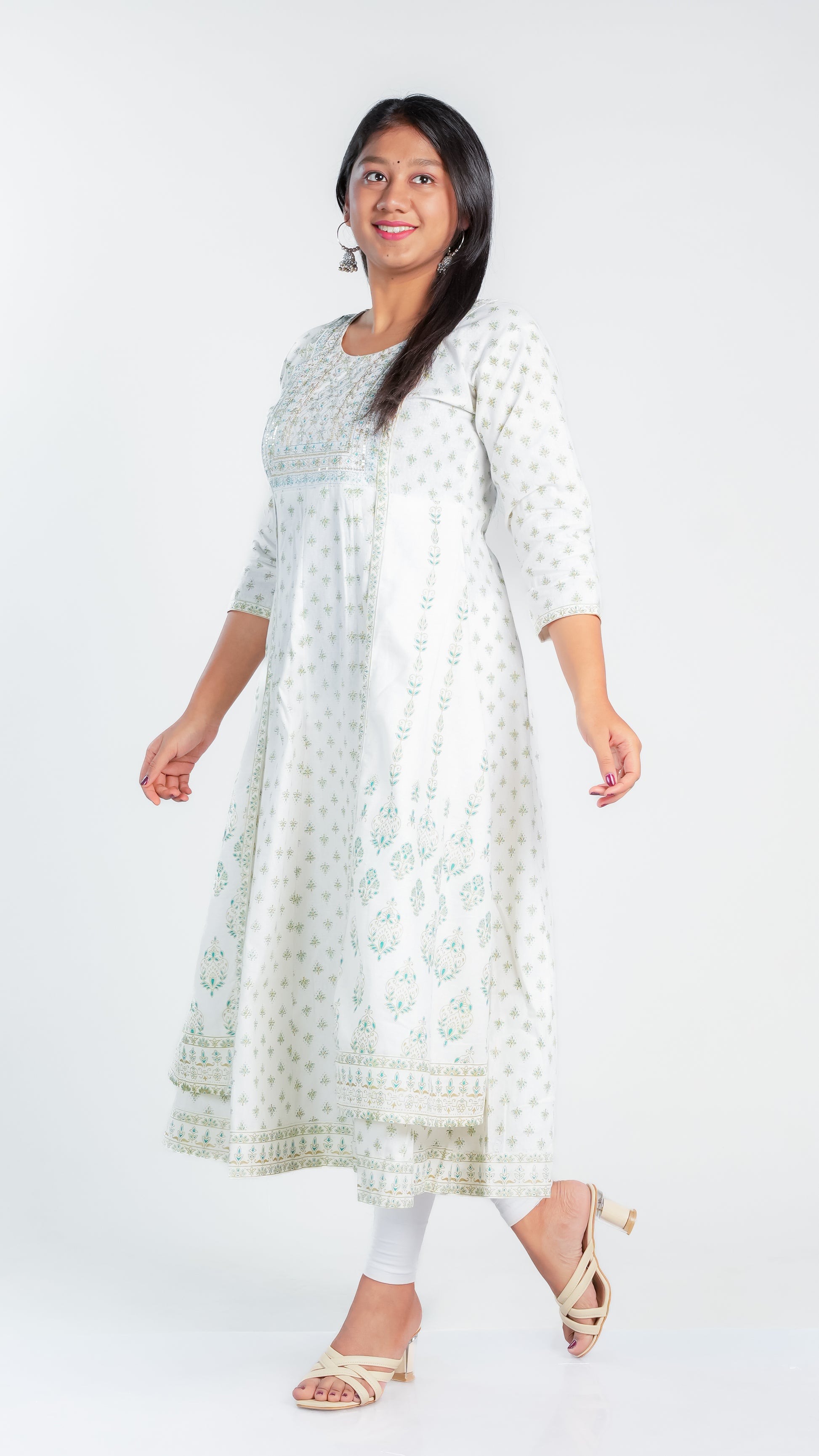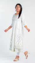 Crafted from high-quality cotton, our Snow Dazzle Frock Kurti provides a comfortable and lightweight fit for all-day wear. Enjoy the breathable fabric that also offers easy movement and durability. Perfect for any occasion, our Cotton Ghera is a versatile addition to your wardrobe.