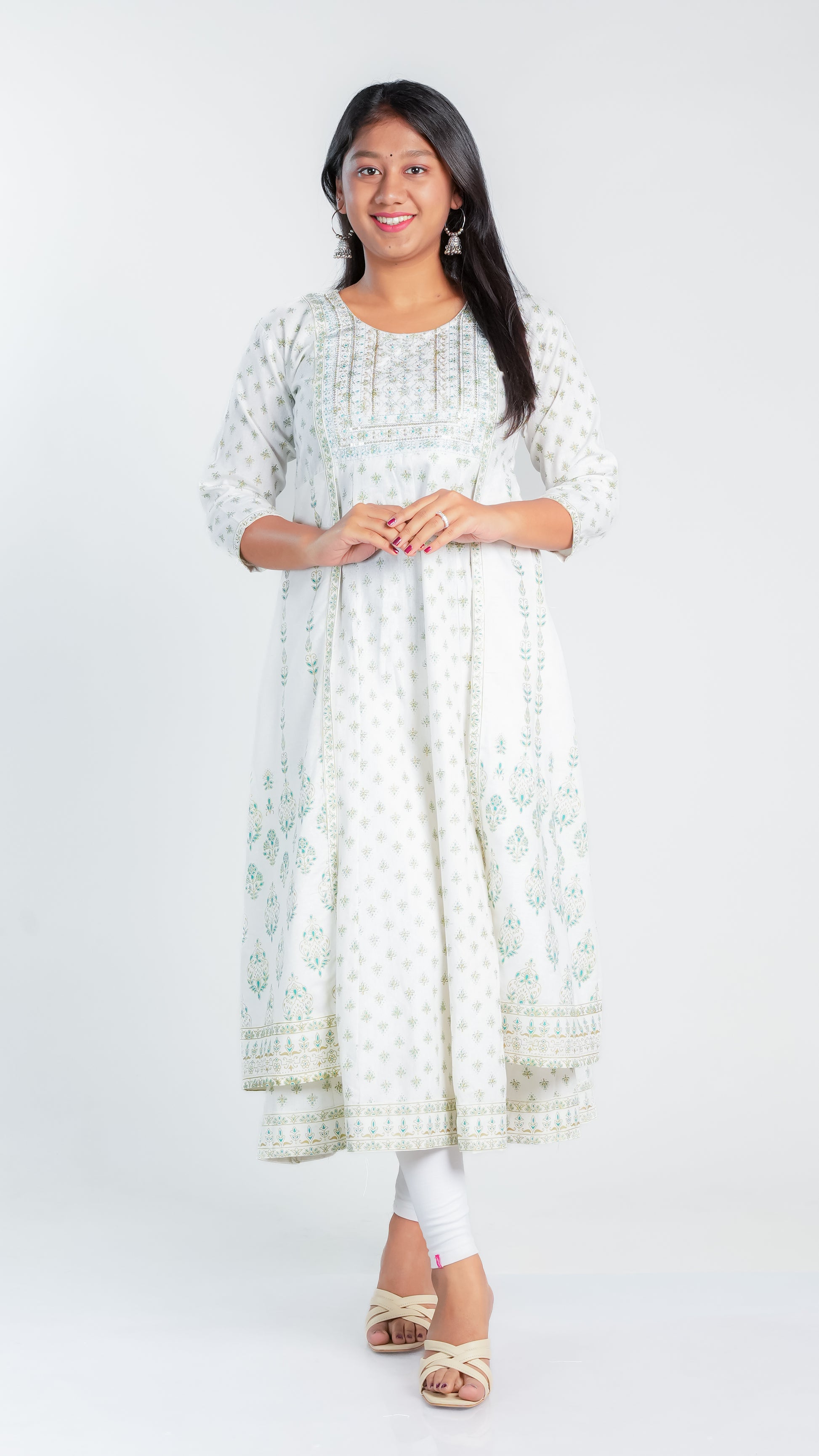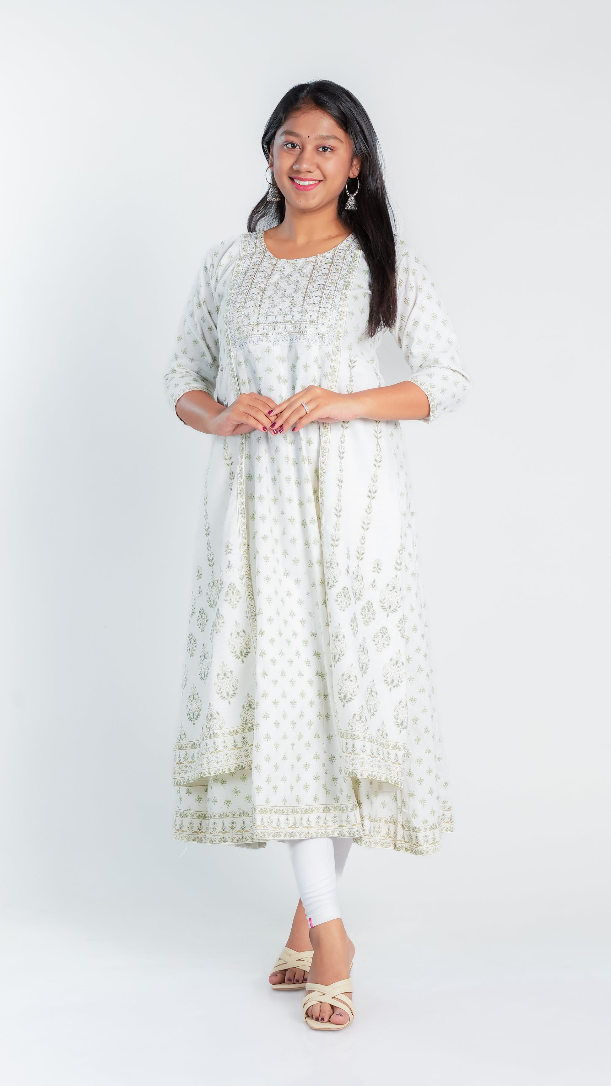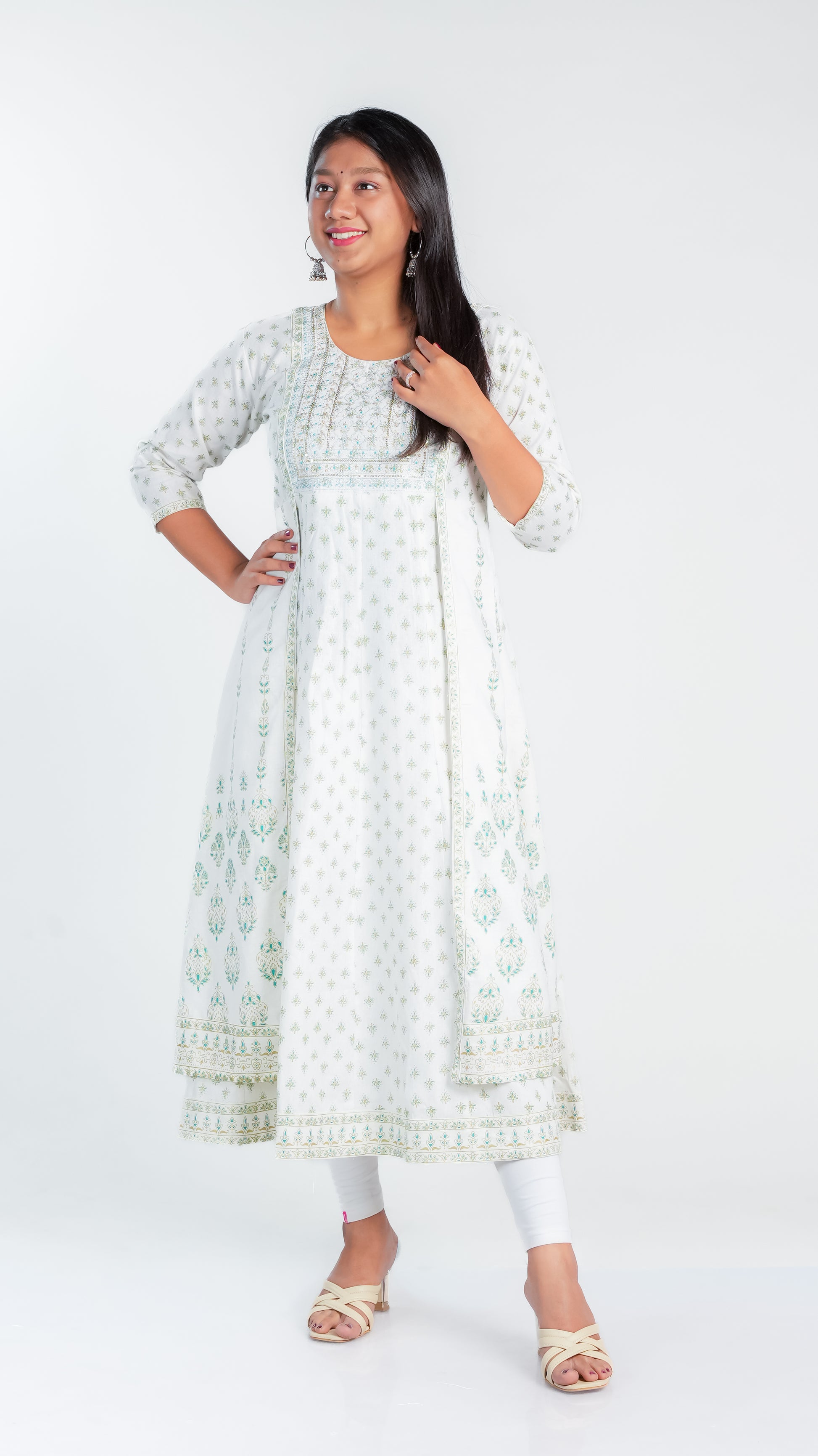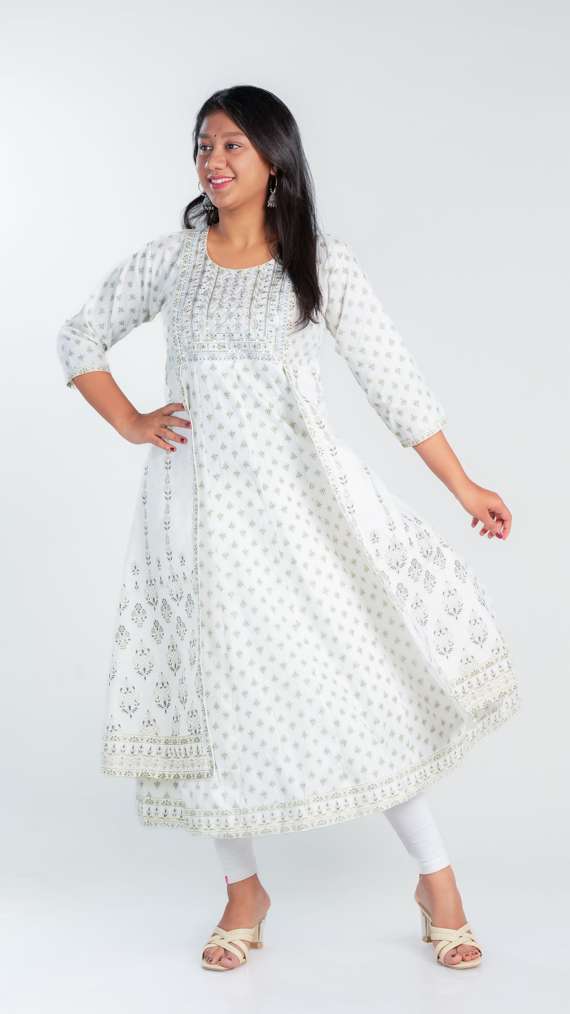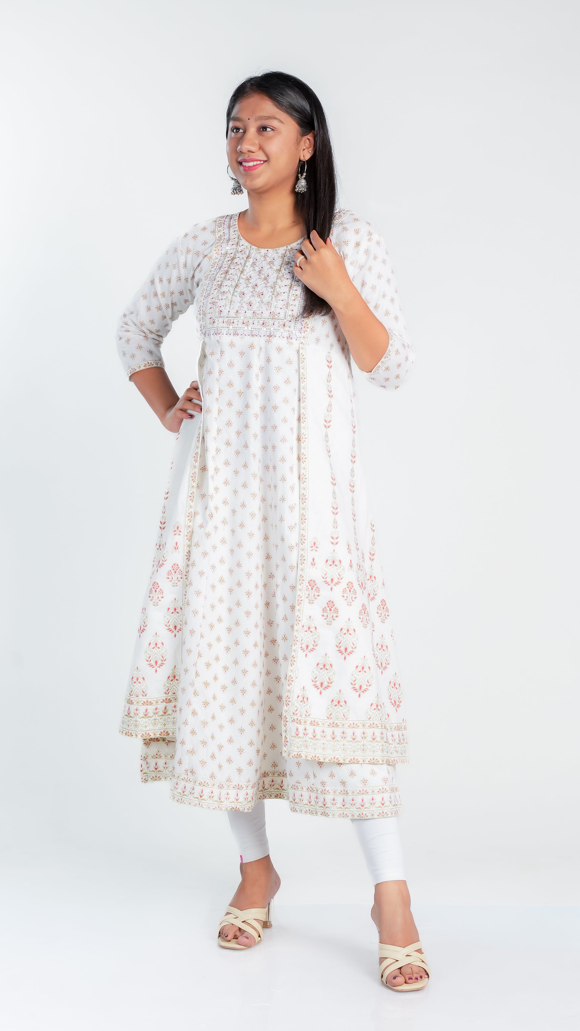 Crafted from high-quality cotton, our Snow Dazzle Frock Kurti provides a comfortable and lightweight fit for all-day wear. Enjoy the breathable fabric that also offers easy movement and durability. Perfect for any occasion, our Cotton Ghera is a versatile addition to your wardrobe.