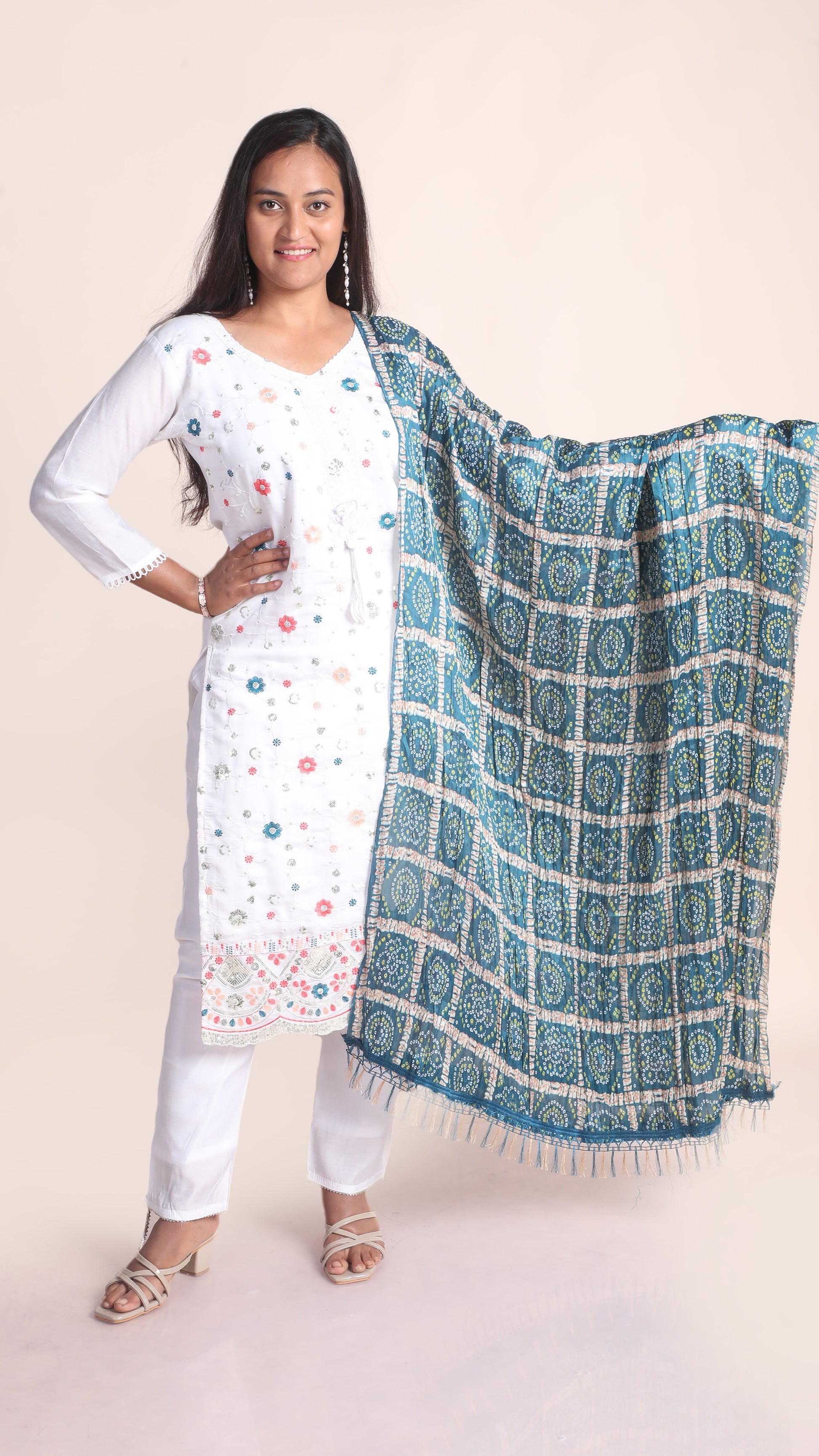 Experience elegance and sophistication with our Daisy White Floral Embroidery Suit Set. This set features delicate floral embroidery on a pristine white fabric, perfect for any special occasion. The high-quality material and impeccable design make this set a must-have for any fashion-forward individual. Elevate your style with this timeless and luxurious suit set.