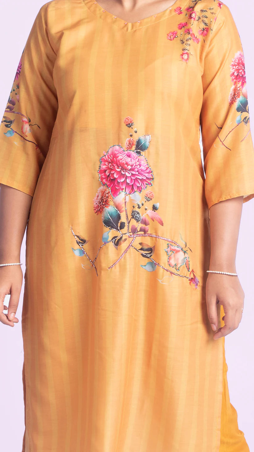 This stylish Amber Muse Suit Set features a beautifully printed dupatta, adding a touch of elegance to your wardrobe. Made with high-quality digital printing, this suit set offers vibrant colors and intricate patterns. Elevate your style with this versatile and fashion-forward ensemble.