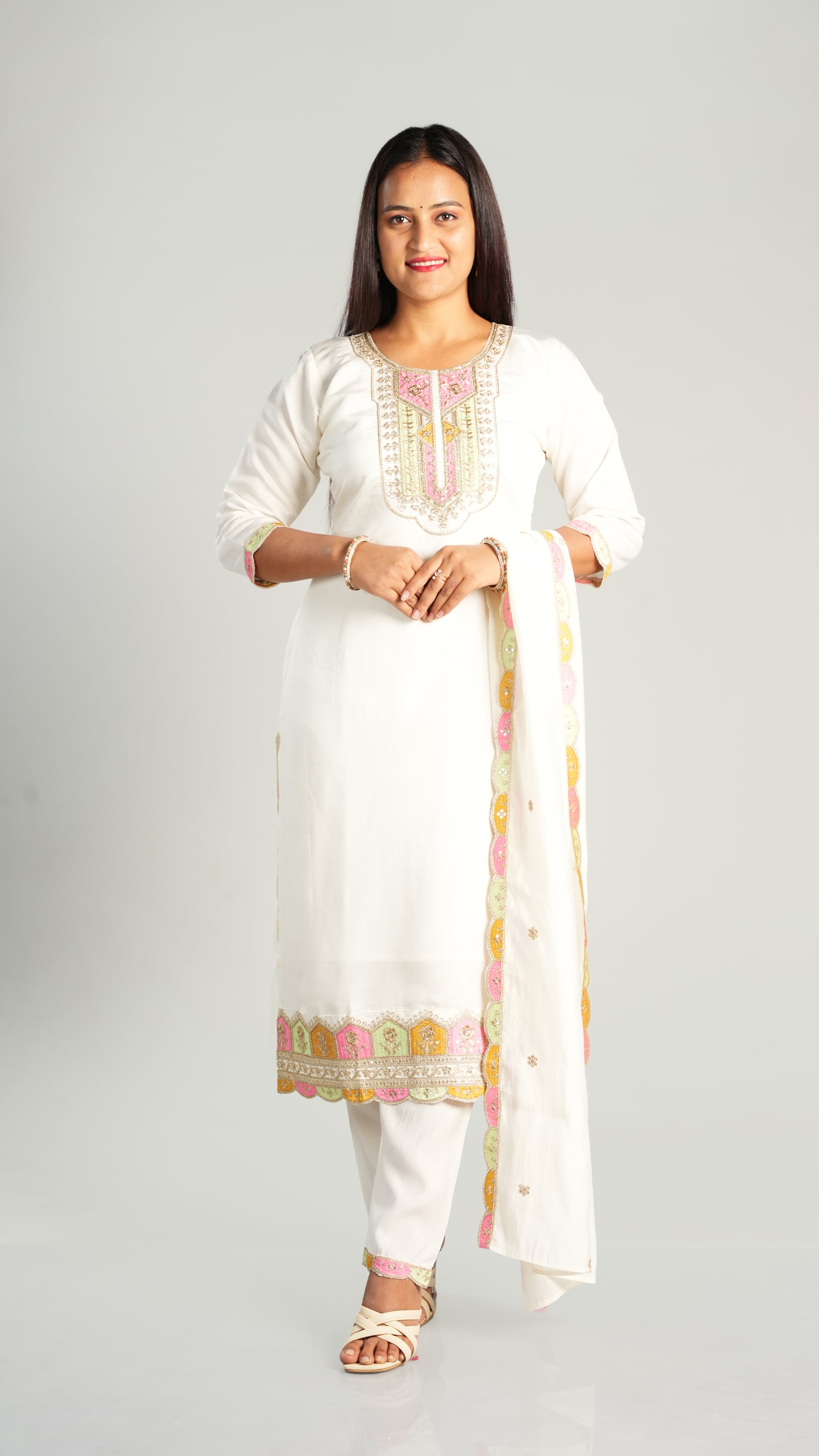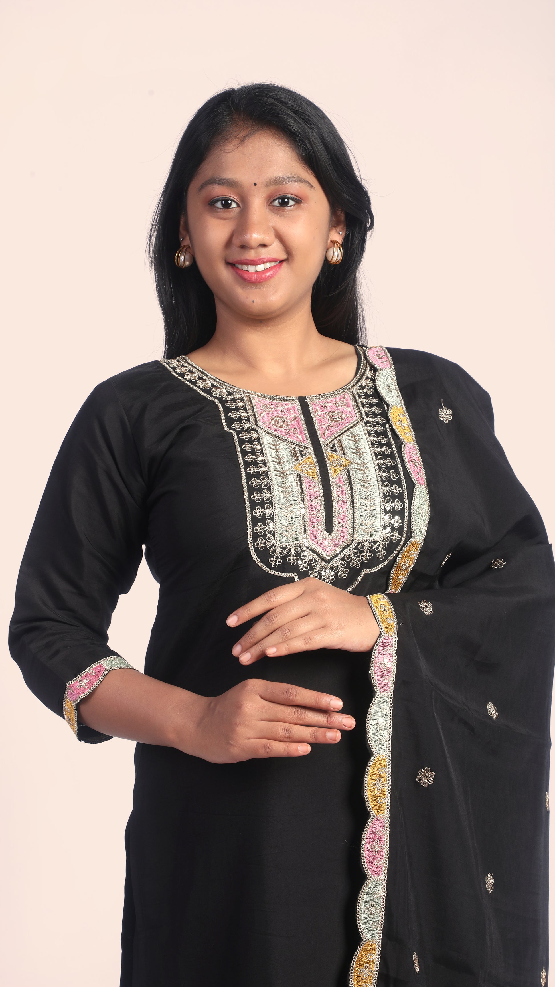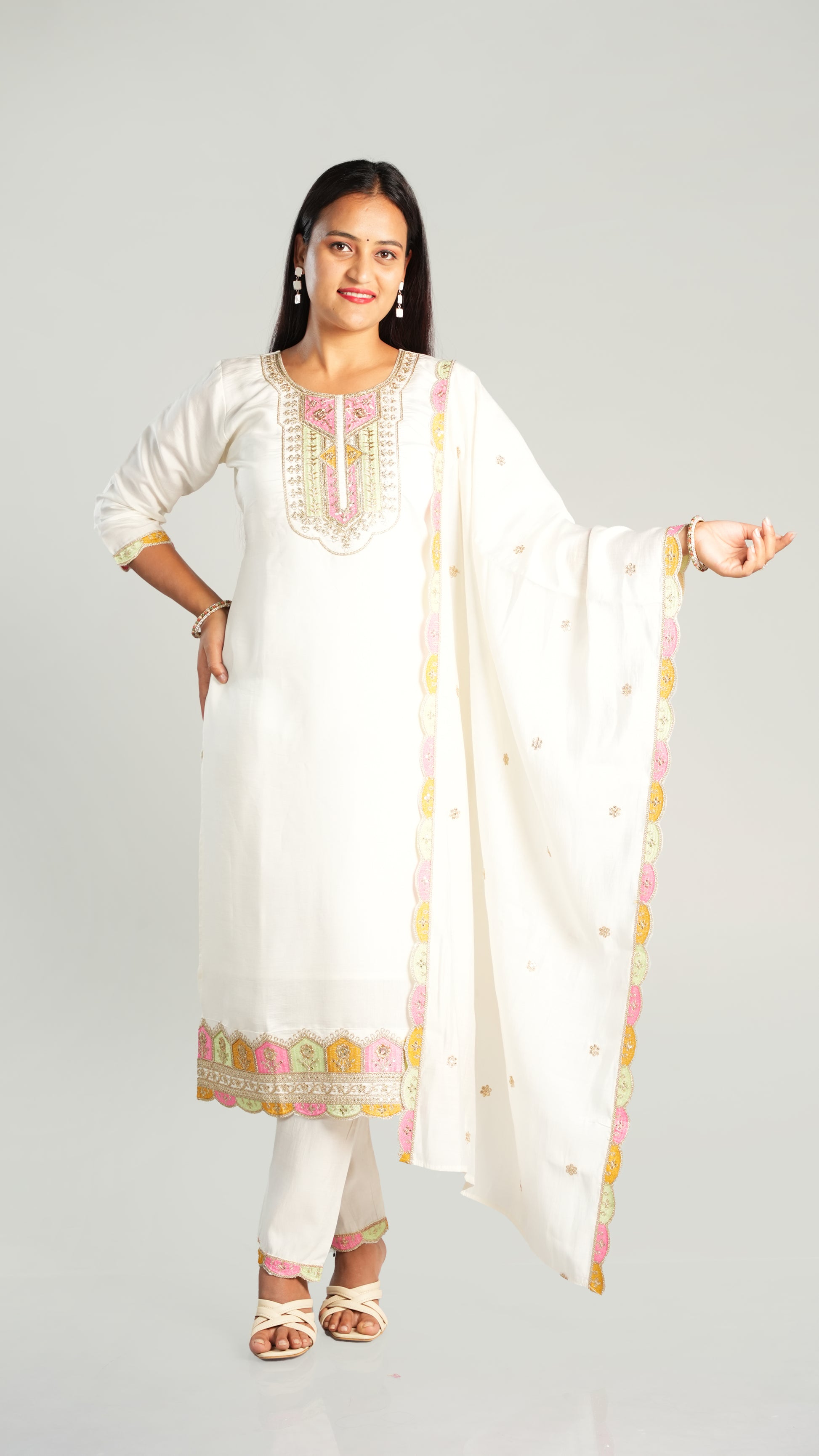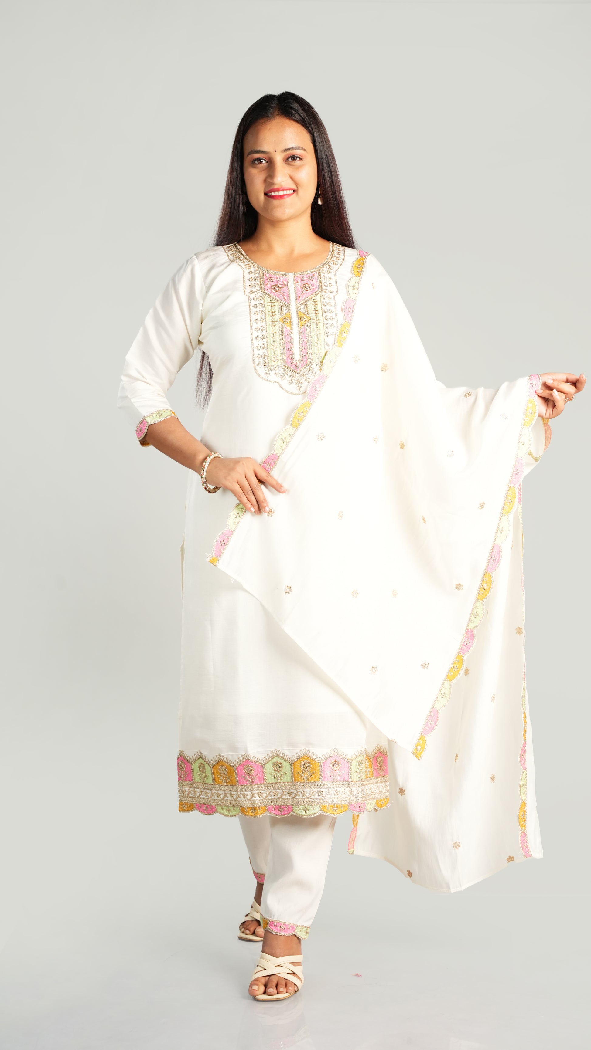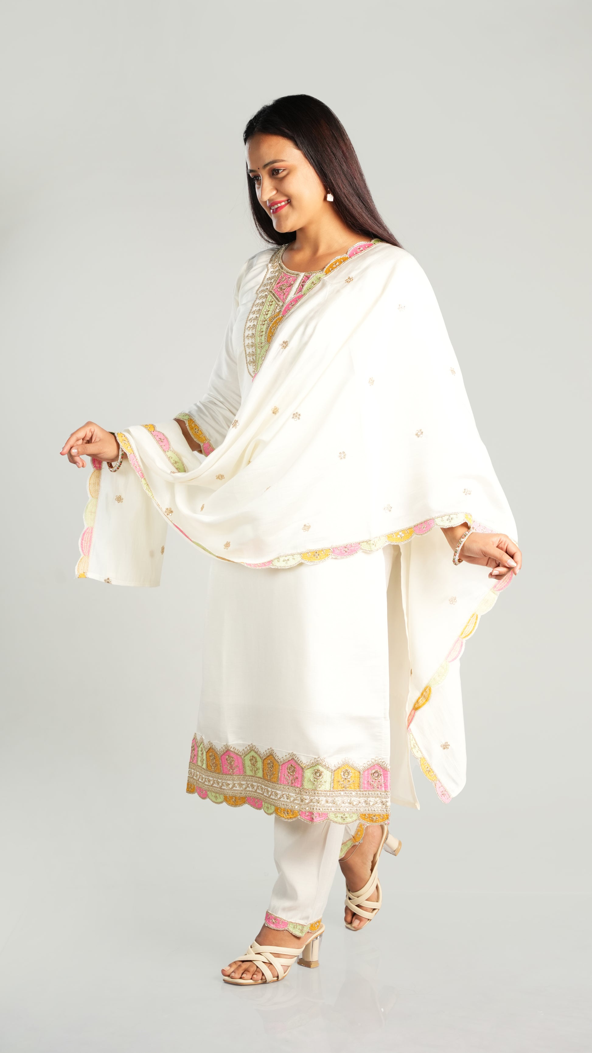 Experience the luxurious elegance of our Kurta Set with Dupatta. Made with high-quality materials and intricate detailing, this set is perfect for any special occasion. The flowing dupatta adds a touch of grace, while the kurta's design ensures comfort and style. Elevate your wardrobe with this beautiful and timeless piece.
