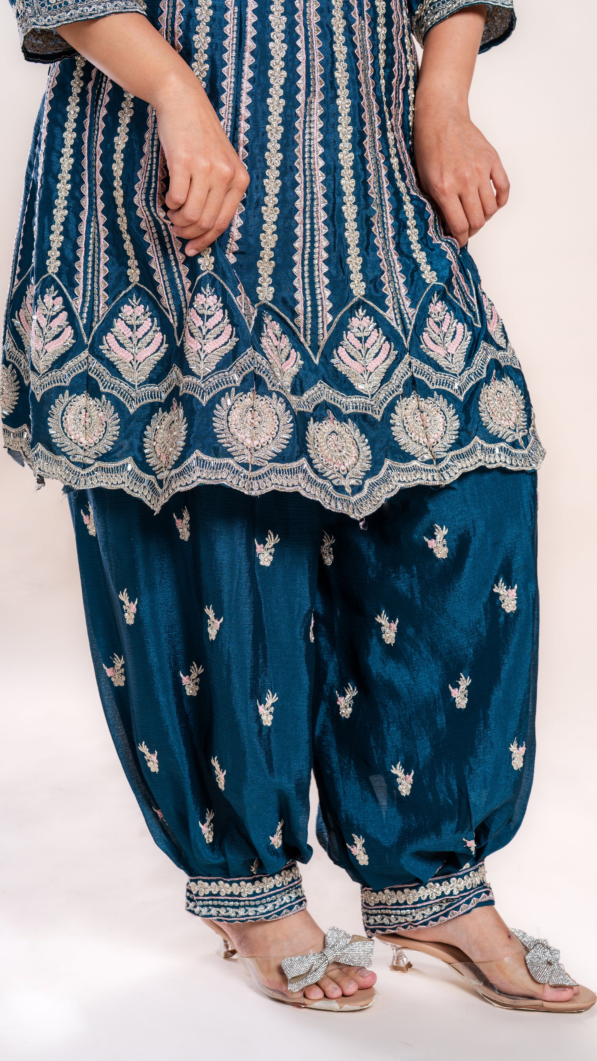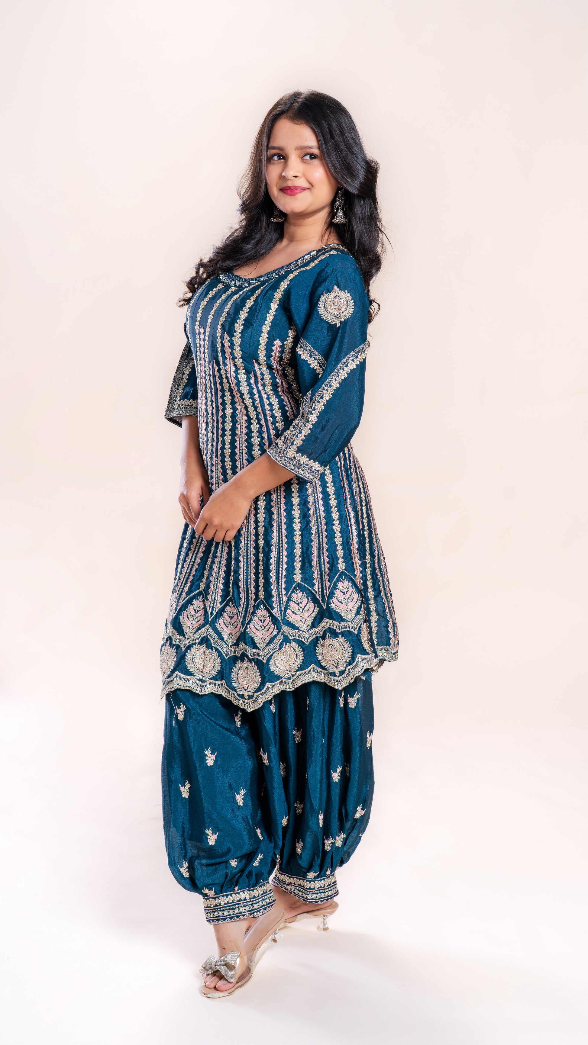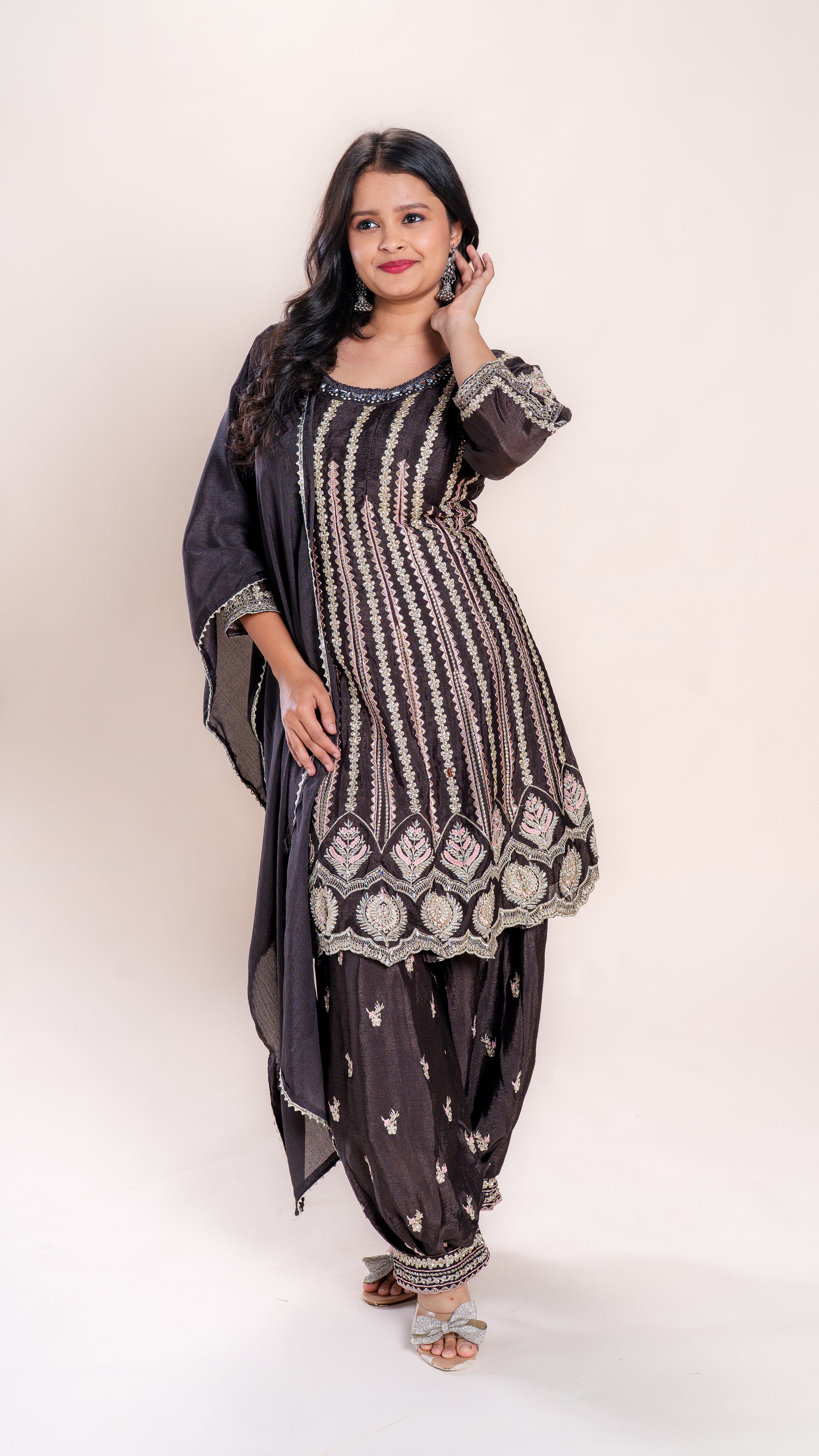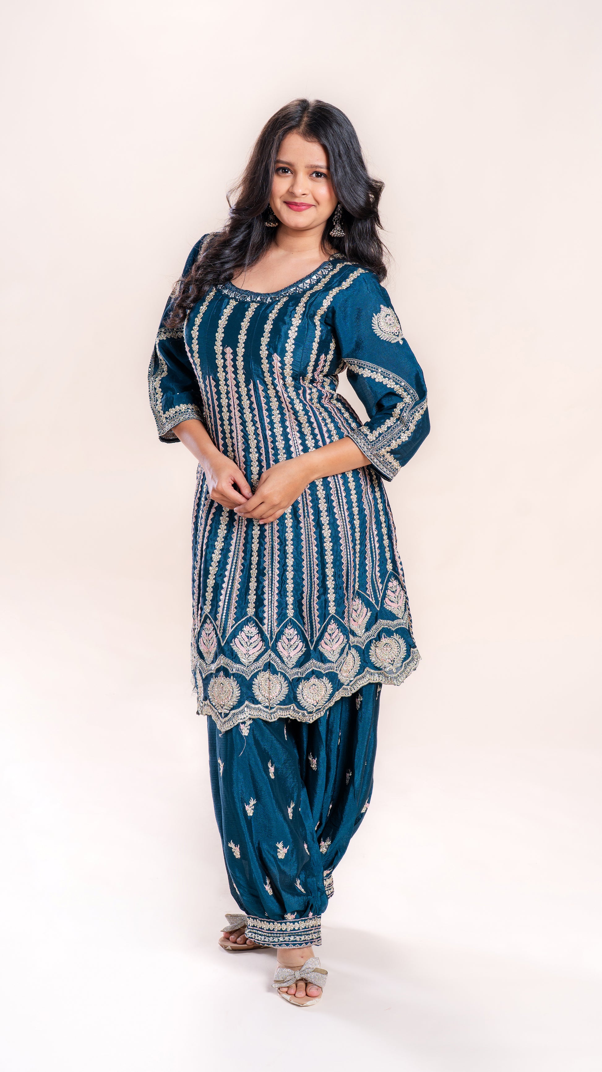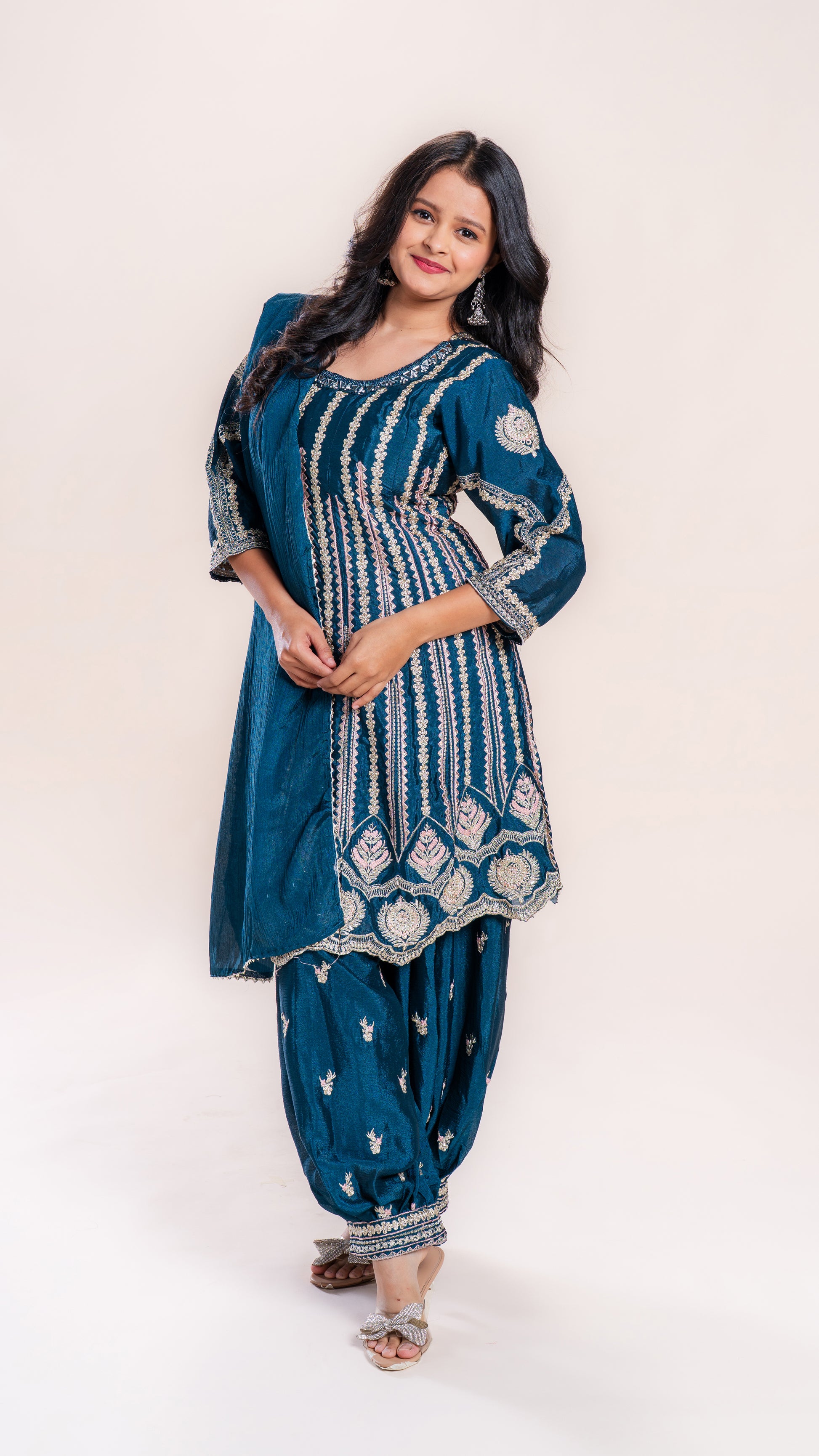 The Embroidered Stria Patiala Set combines traditional craftsmanship with contemporary style. Featuring intricate embroidery on a comfortable Patiala salwar, this set offers both elegance and ease of wear. Ideal for festive occasions or casual gatherings, it ensures a graceful silhouette while maintaining breathability and comfort throughout the day. Perfect for those who appreciate detailed handiwork and classic Indian attire.