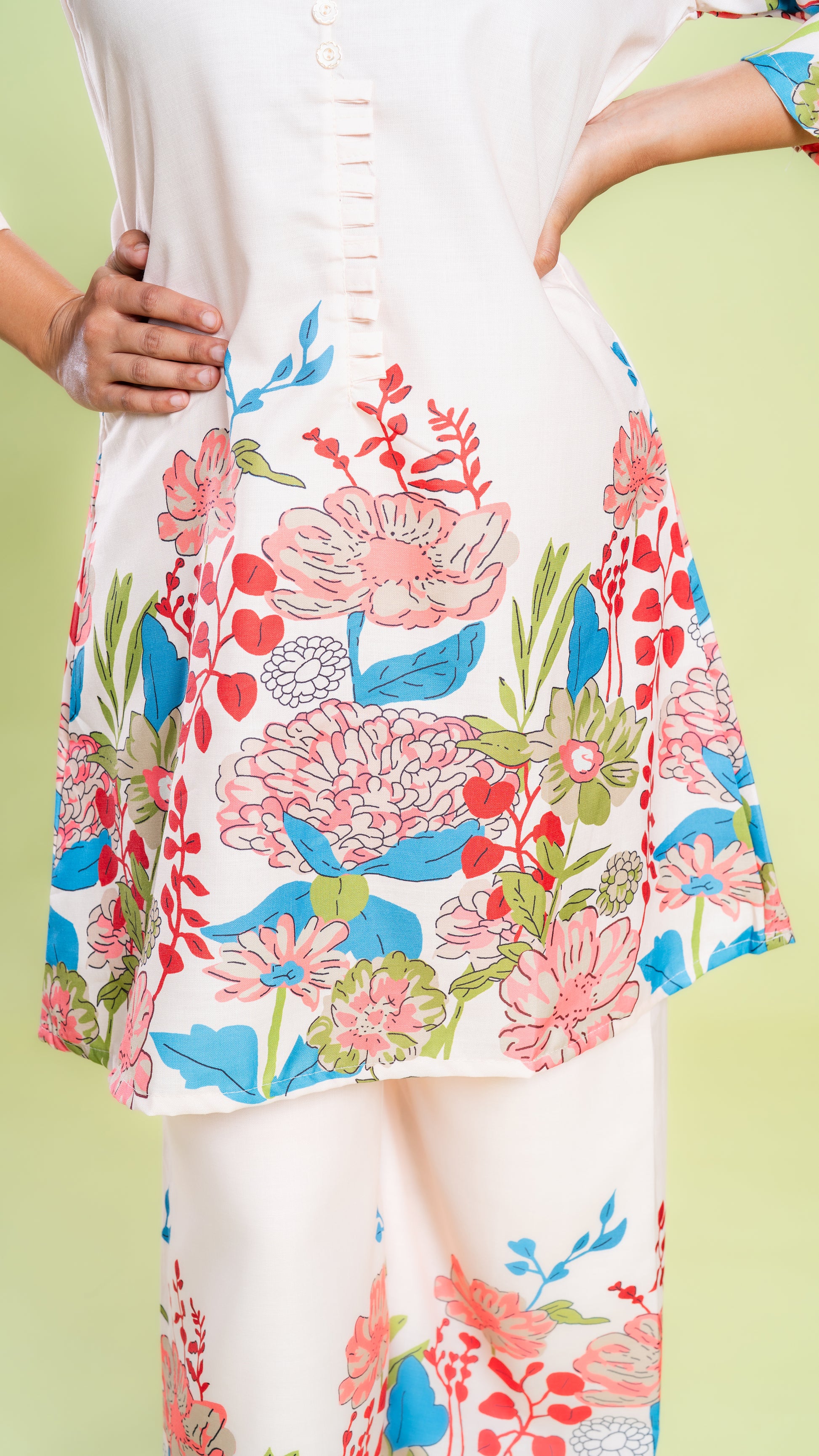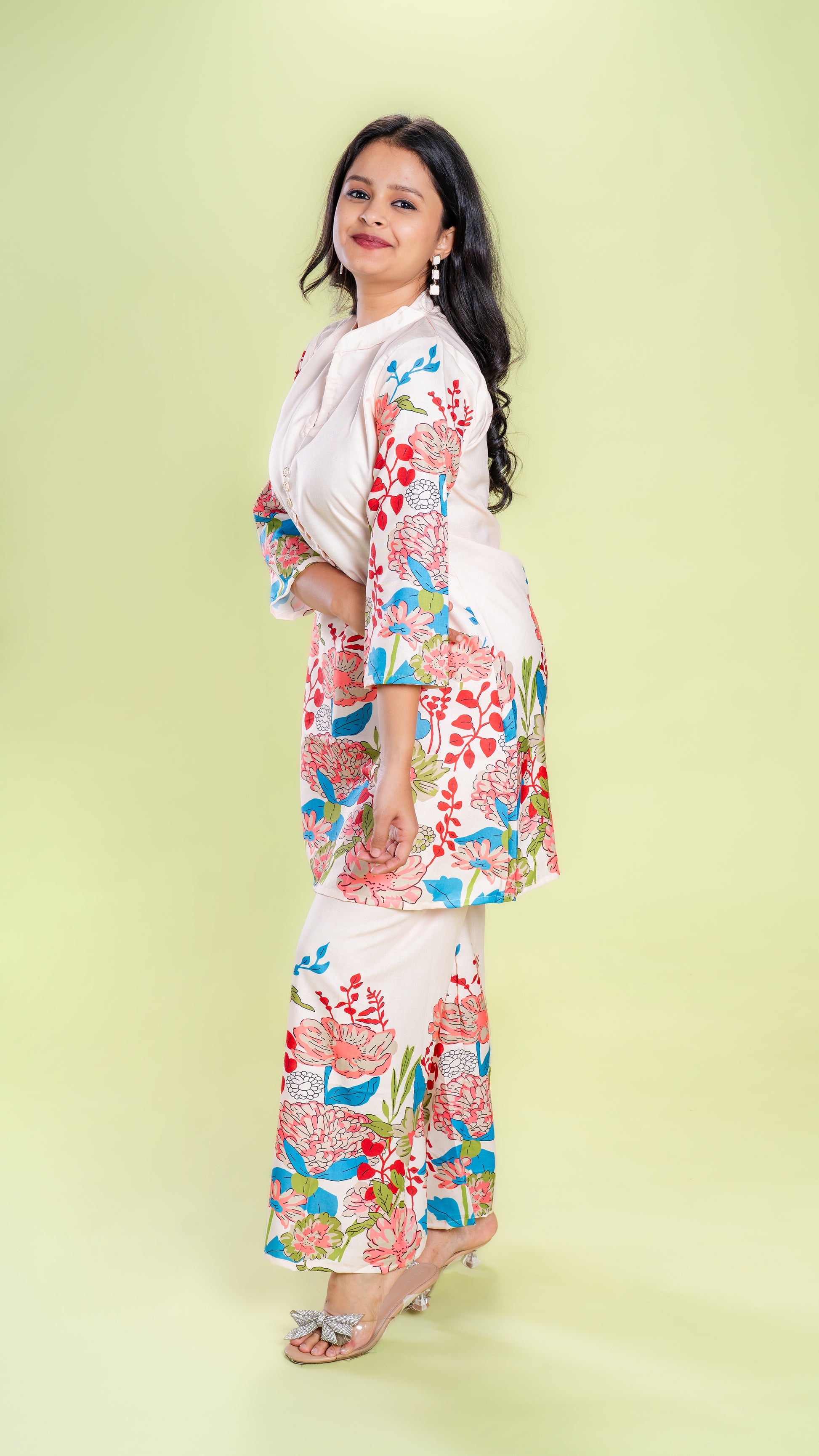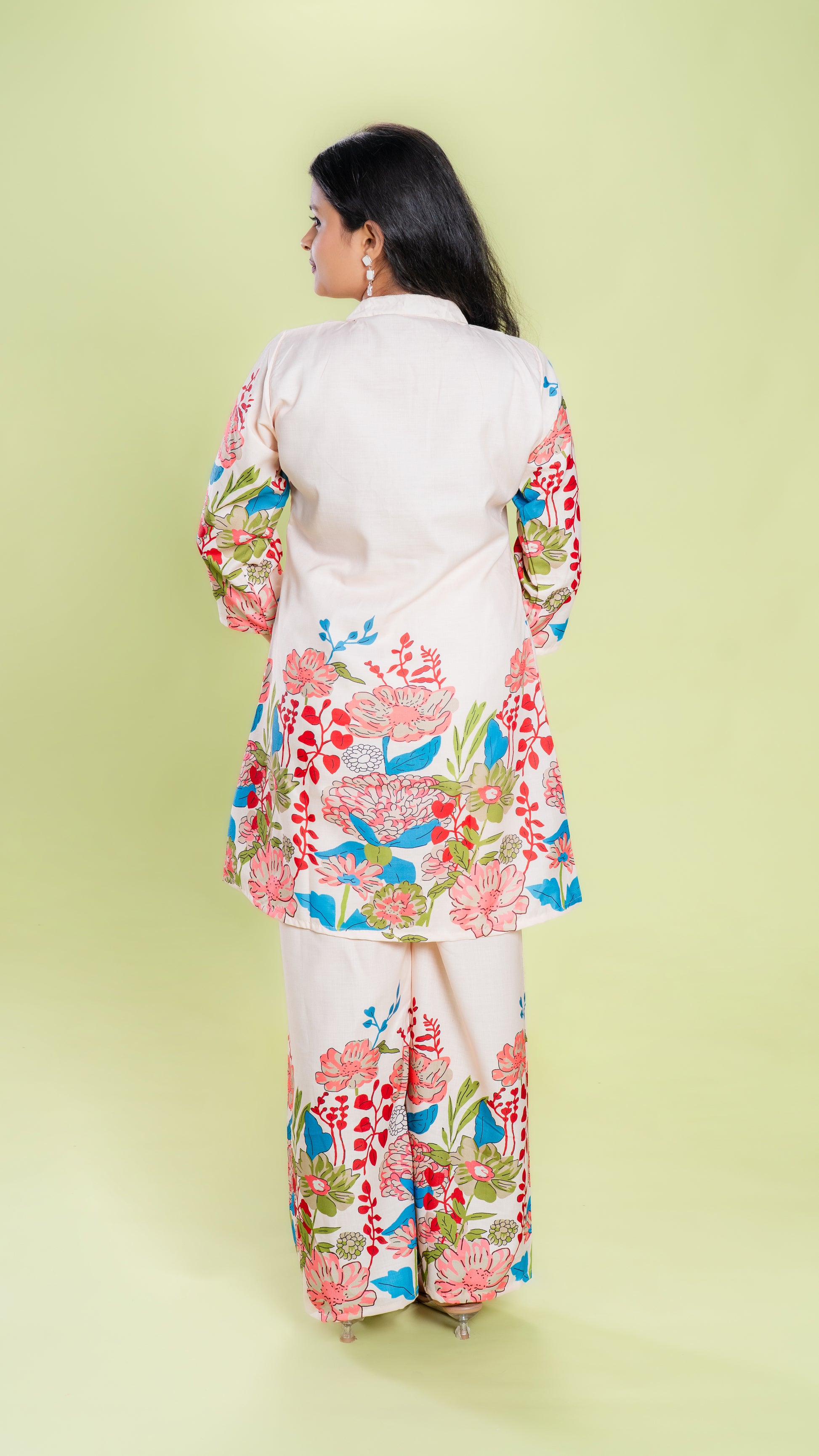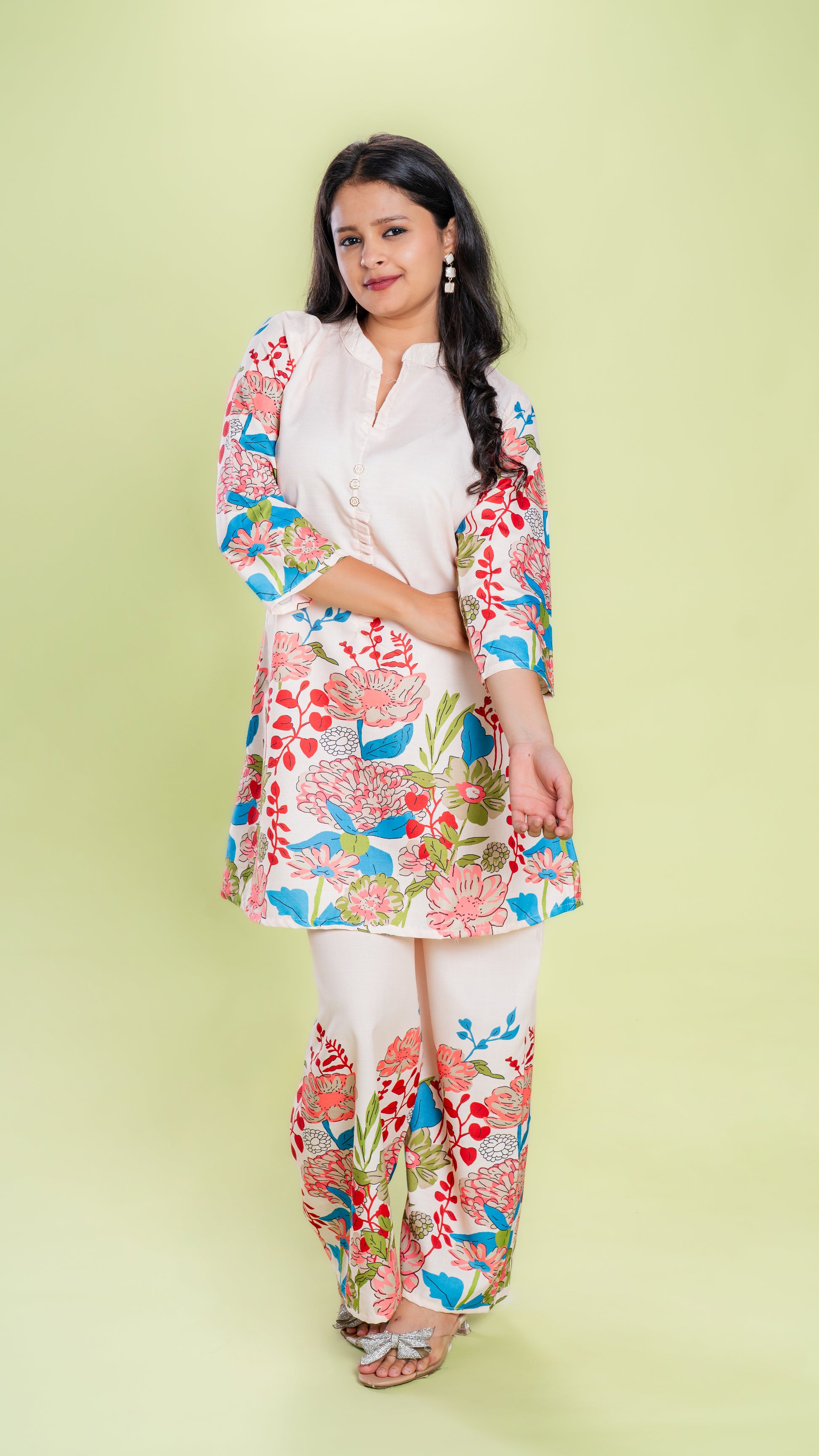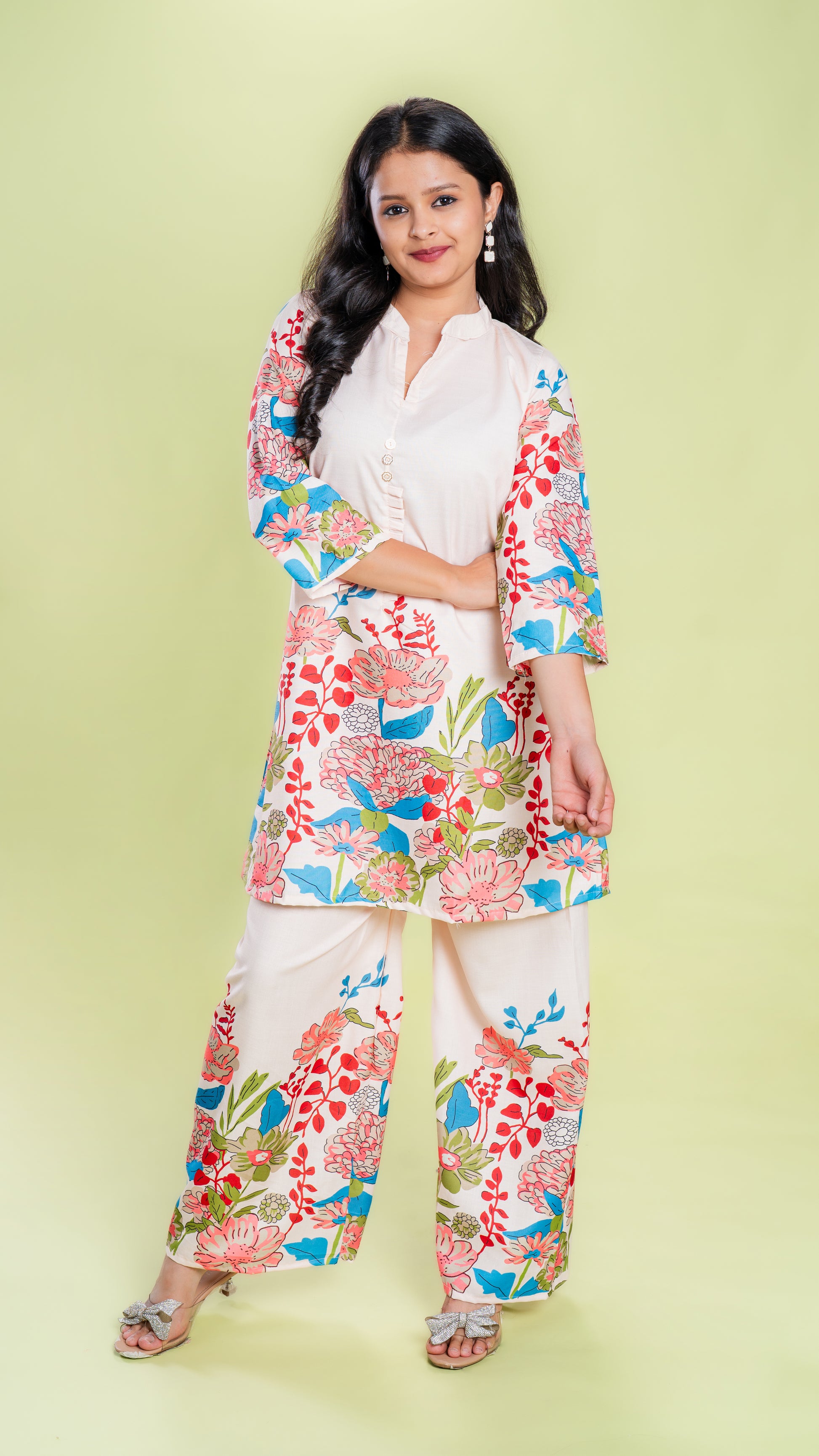 Elevate your wardrobe with the Essential Co-ord Set featuring a delicate cream floral print. This thoughtfully designed set offers a harmonious blend of comfort and style, perfect for both casual outings and refined occasions. The soft cream base adorned with subtle floral patterns adds a touch of elegance, while the coordinated pieces ensure effortless dressing. Ideal for those who appreciate timeless fashion with a modern twist.