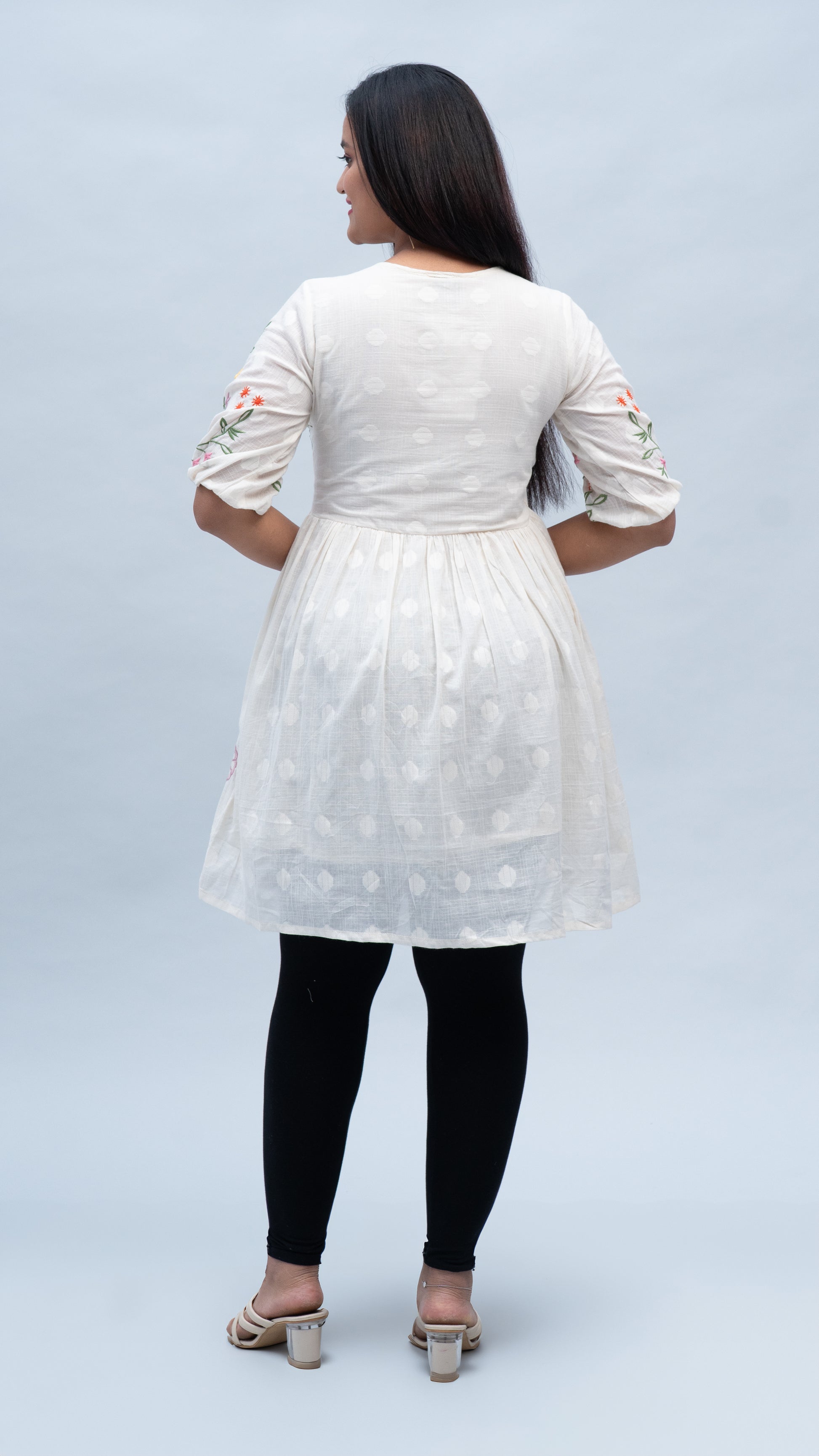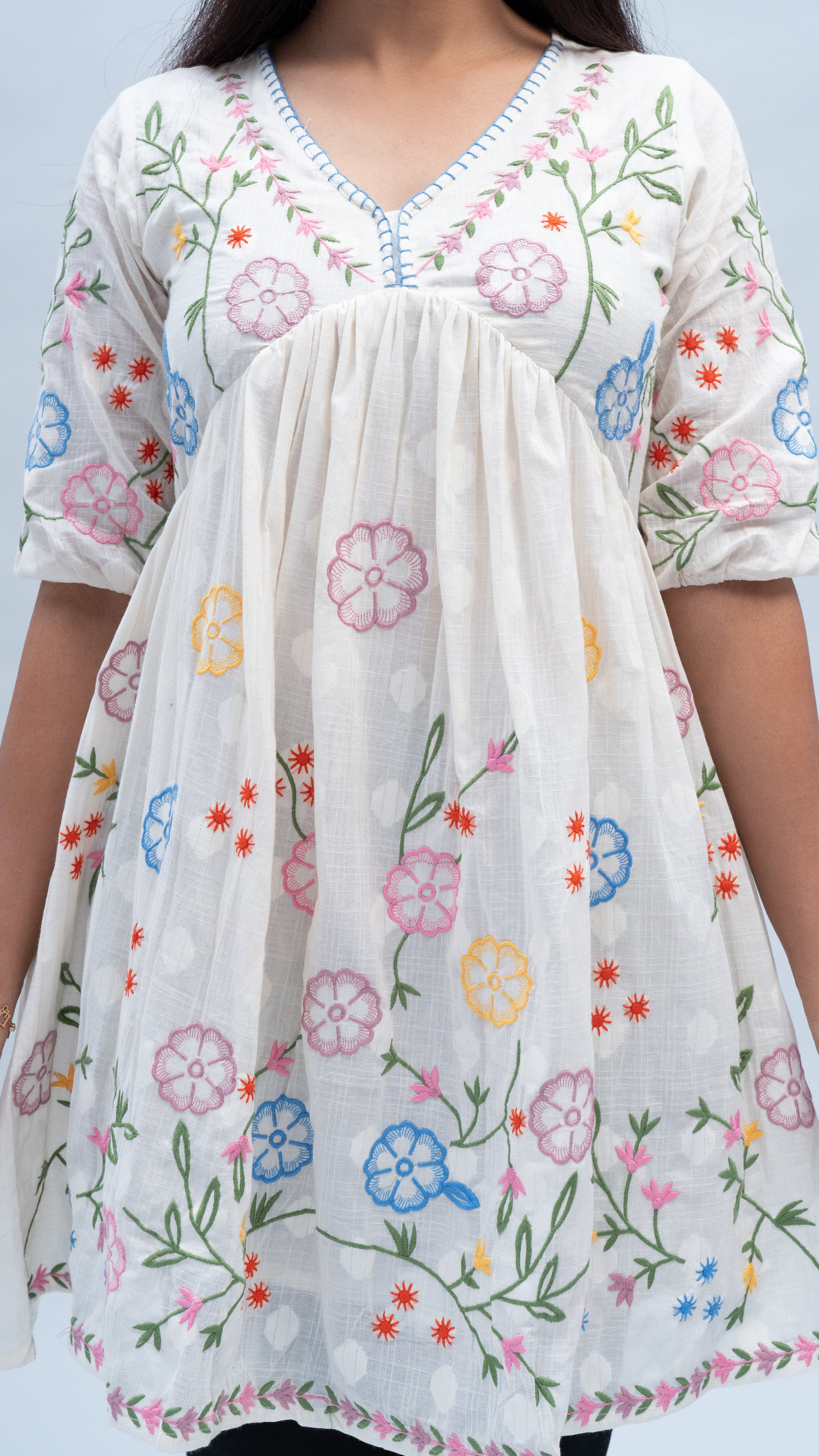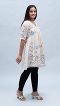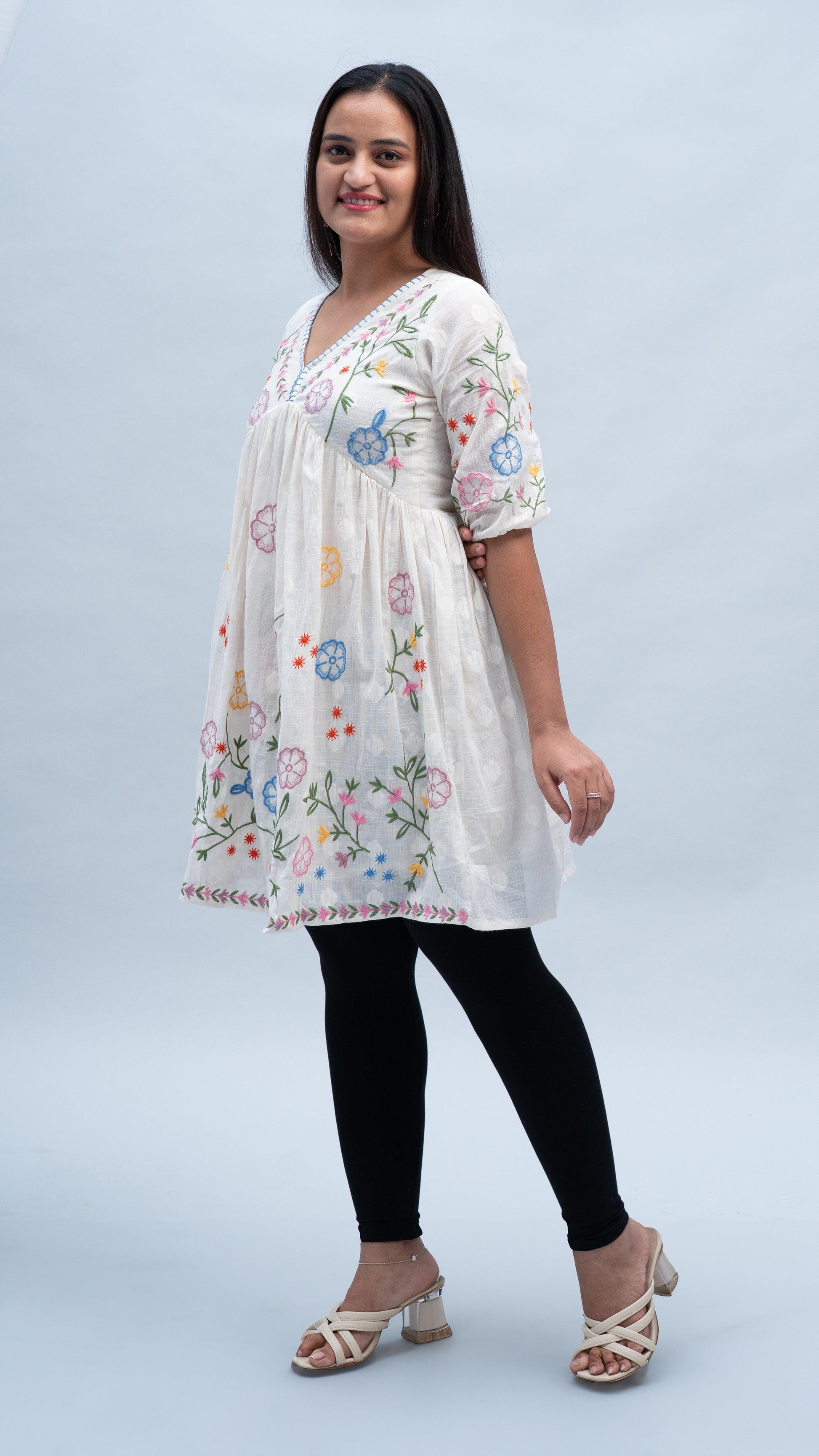 Add a touch of elegance to your wardrobe with this floral embroidered tunic. Featuring intricate floral patterns and a flattering, relaxed fit, it's perfect for casual outings or special occasions. Crafted for comfort and style, this tunic is a must-have for your collection.