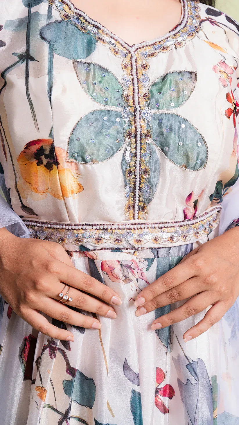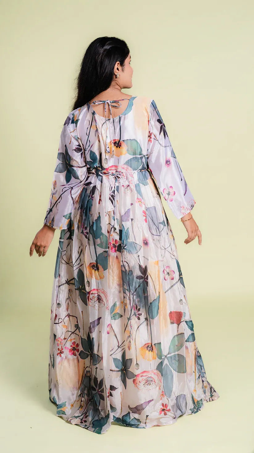 Floral Print Heavy Gown with Net Dupatta