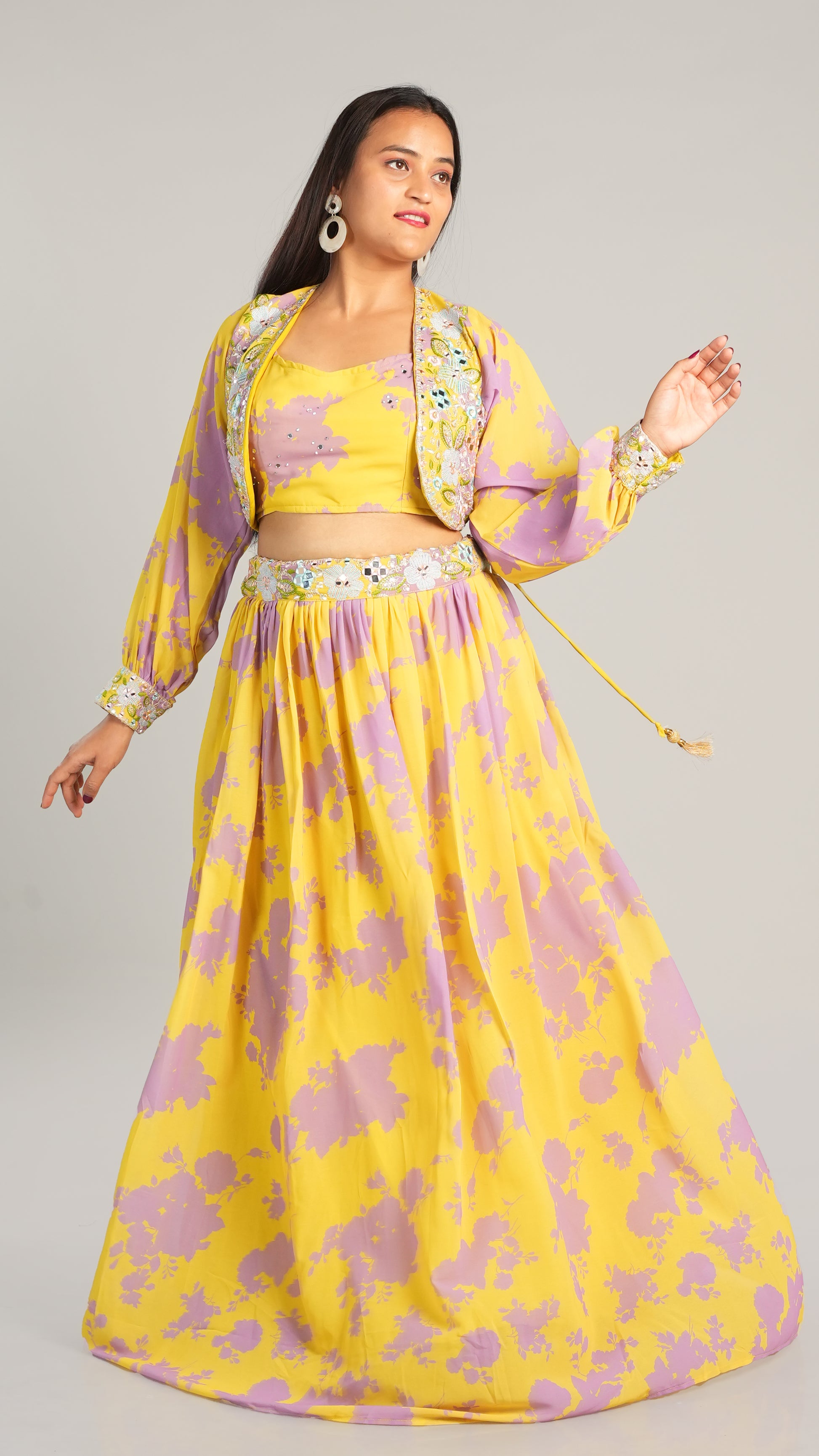 Effortlessly exude elegance and grace with our Floral Radiance Lehenga Set. The intricate floral design adds a touch of sophistication while the high-quality fabric ensures comfort and durability. Perfect for special occasions, this set is a must-have for any fashion-forward individual.