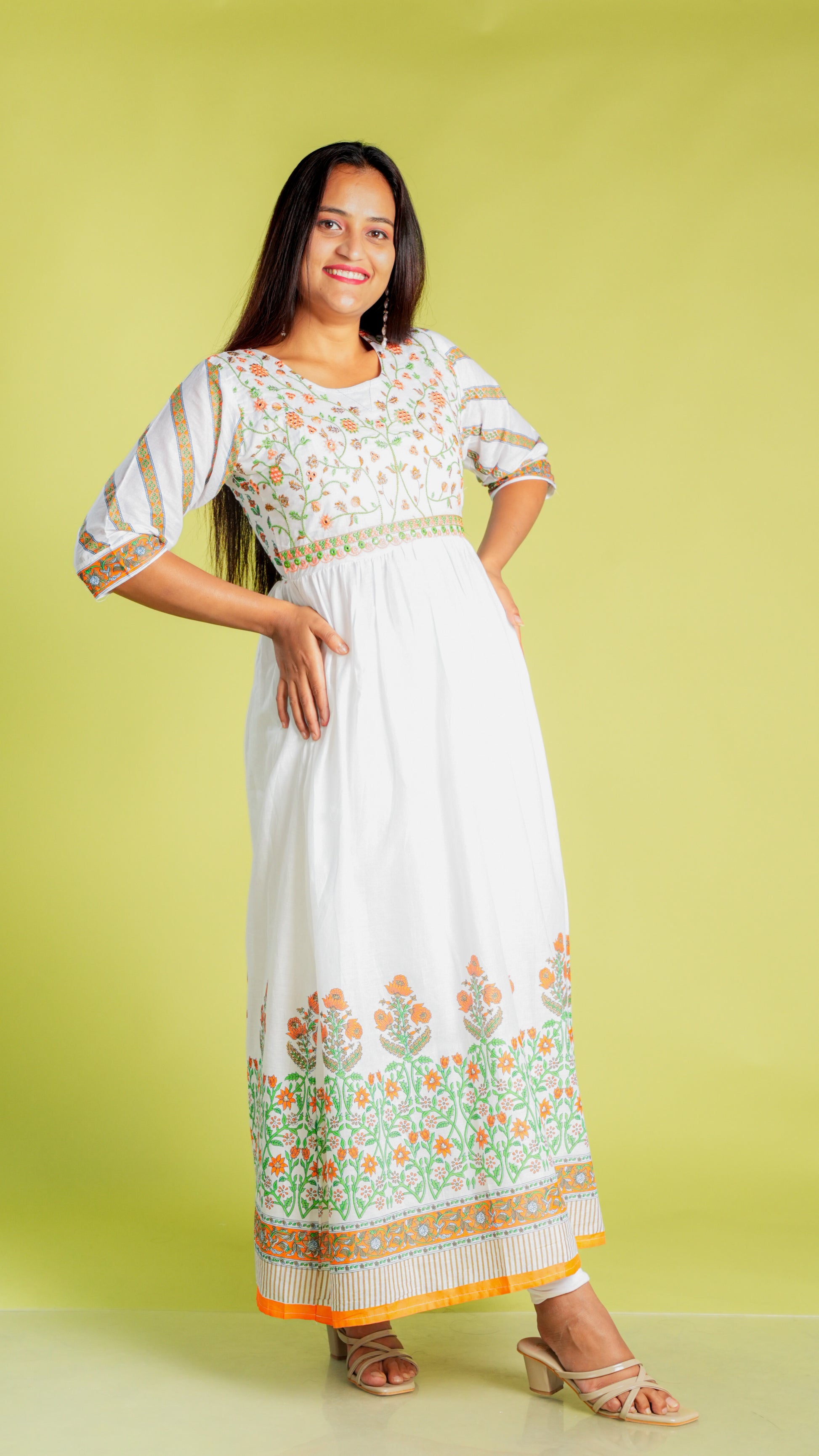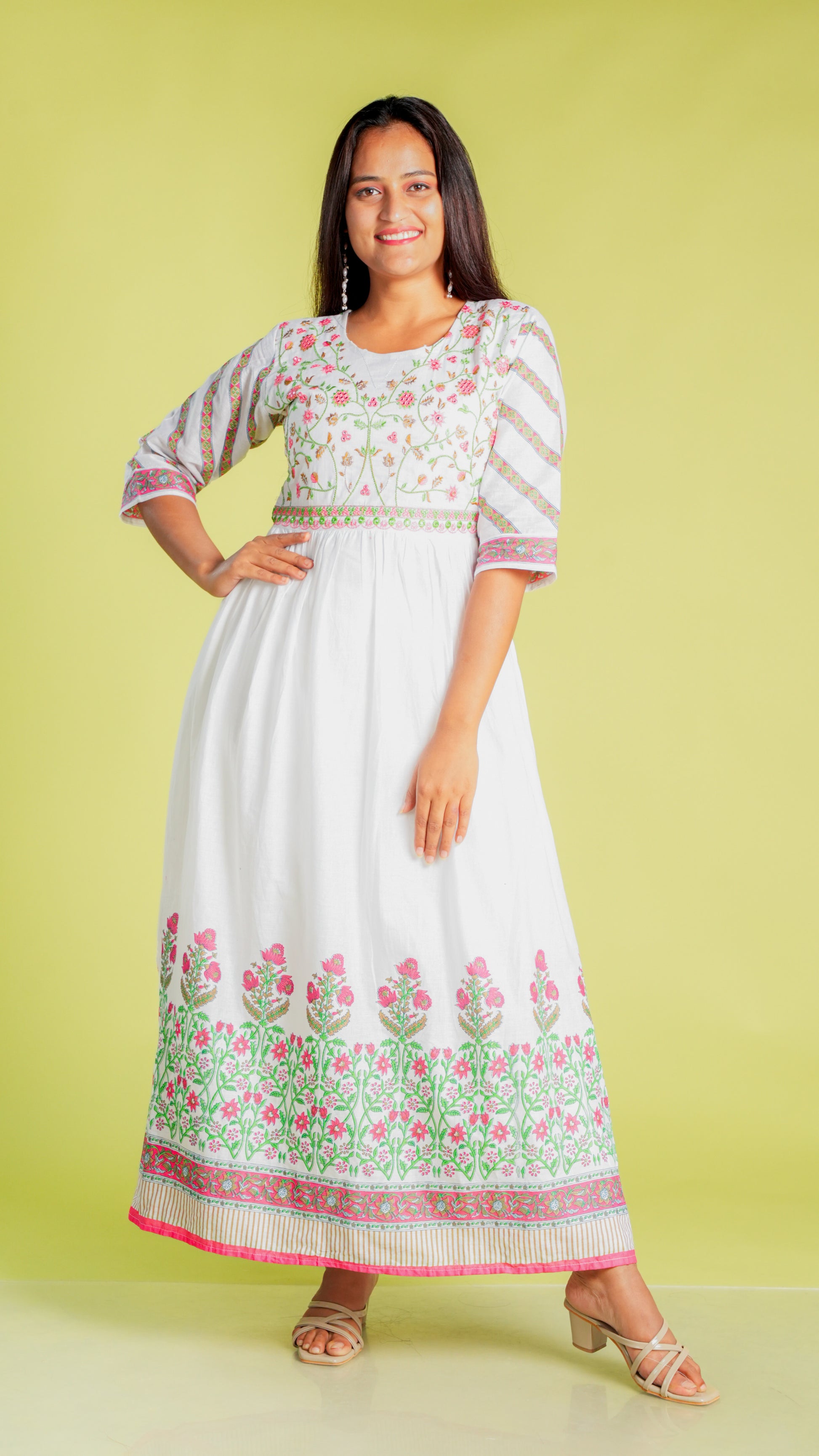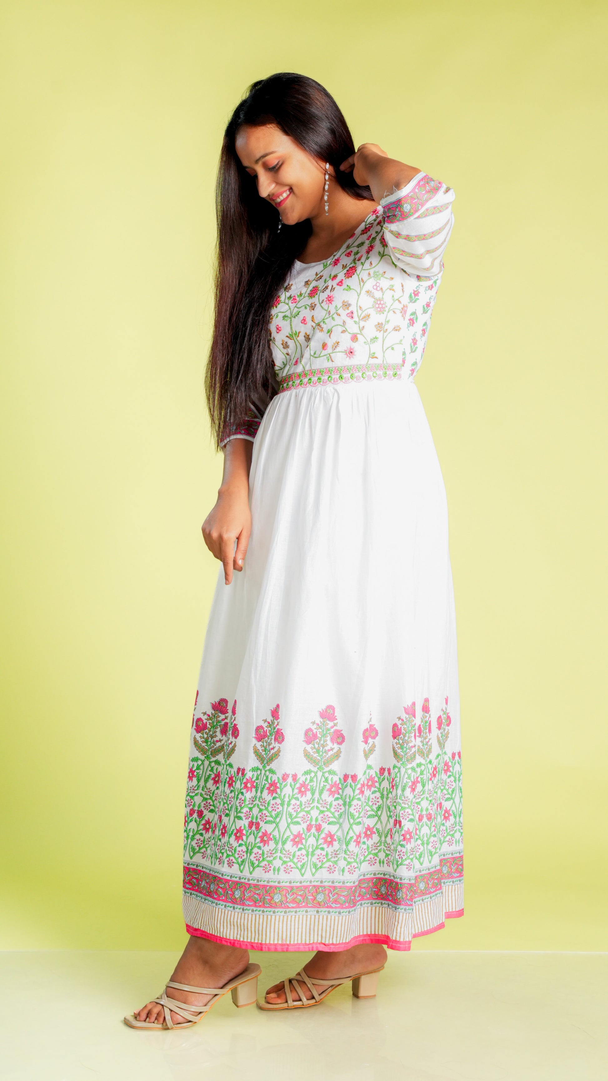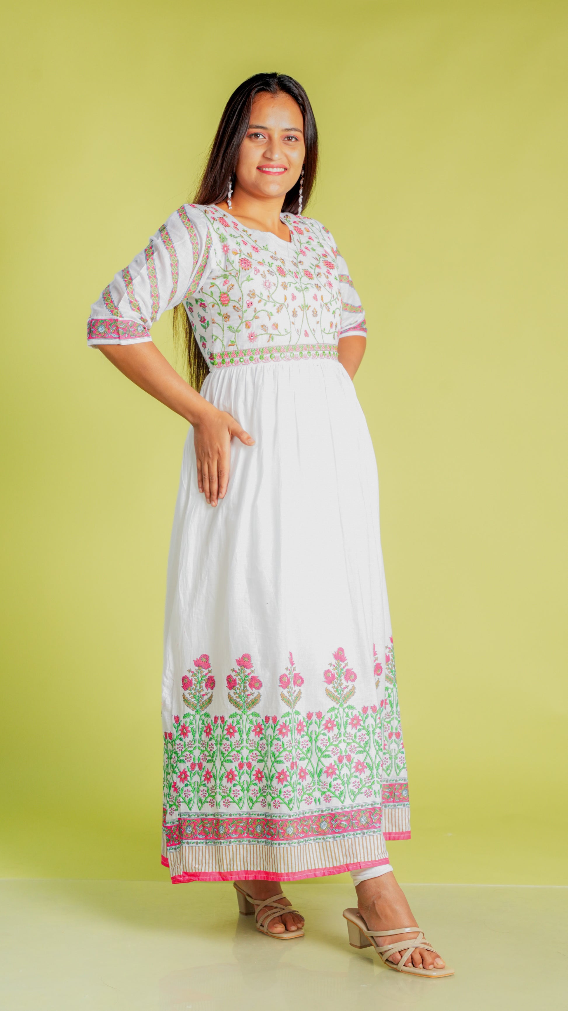 This Petal Whisper Frok is a statement piece for any wardrobe. The intricate floral print and durable fabric make it a versatile and stylish option for any occasion. Elevate your fashion game with this expertly crafted frok.