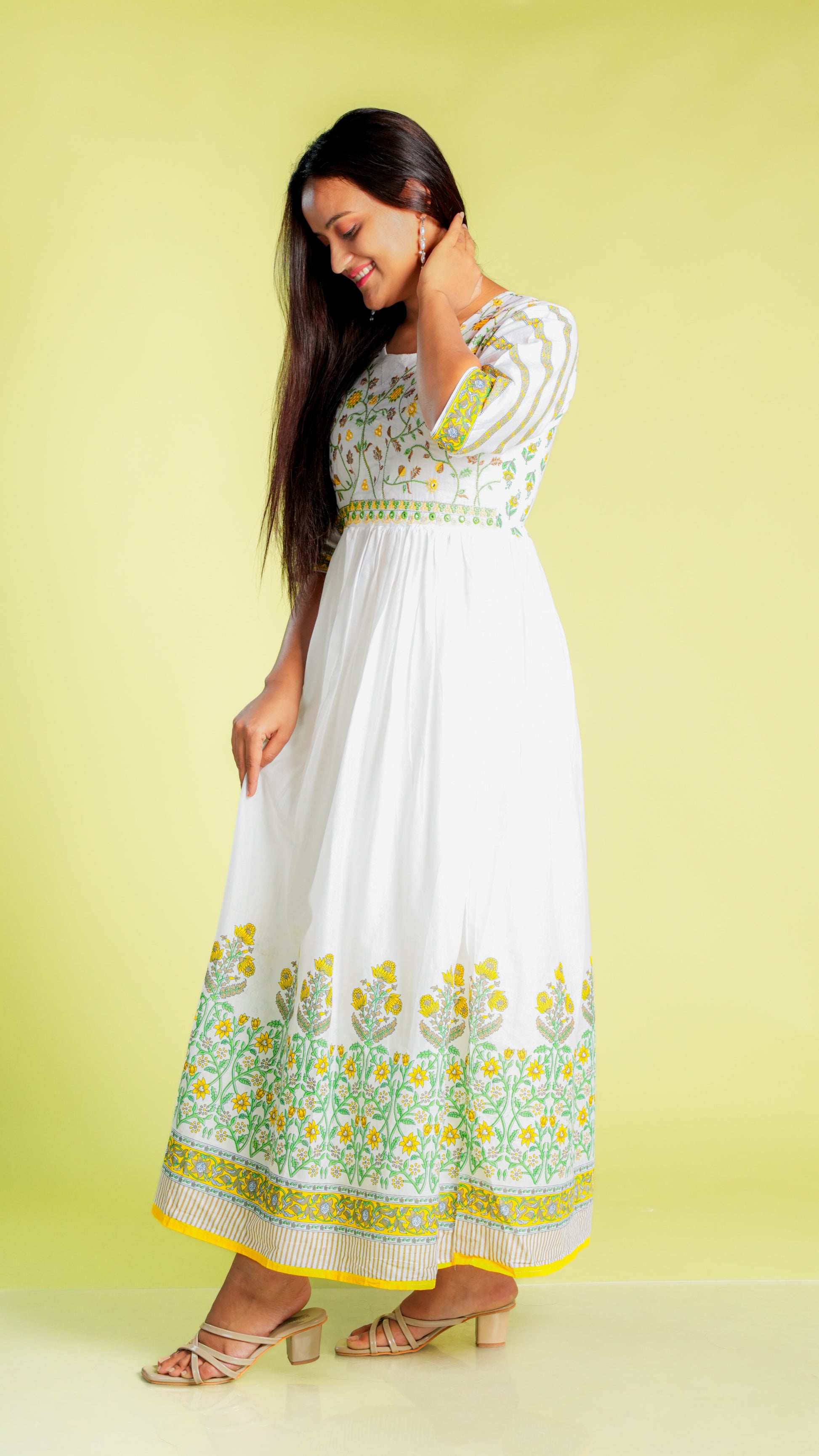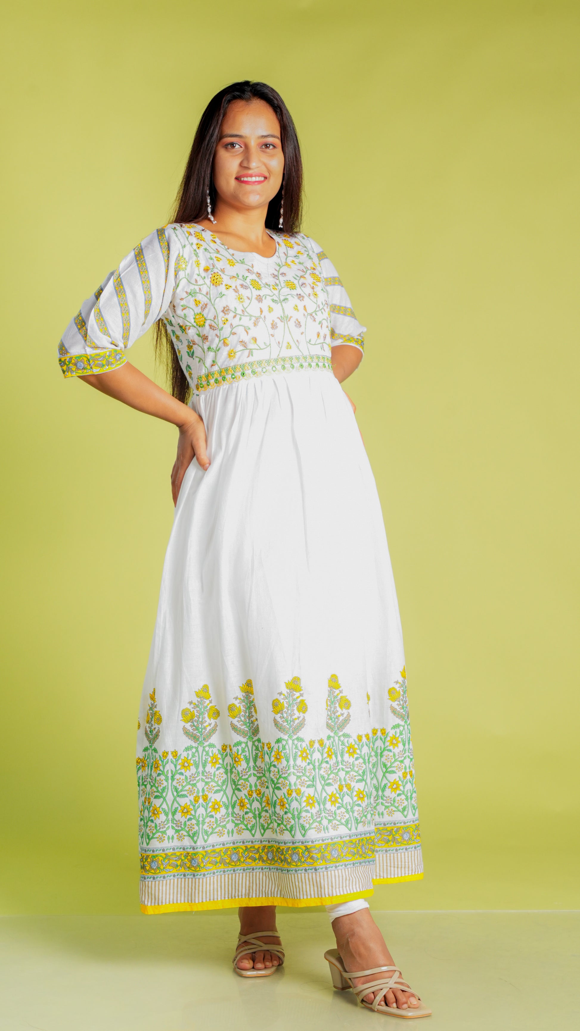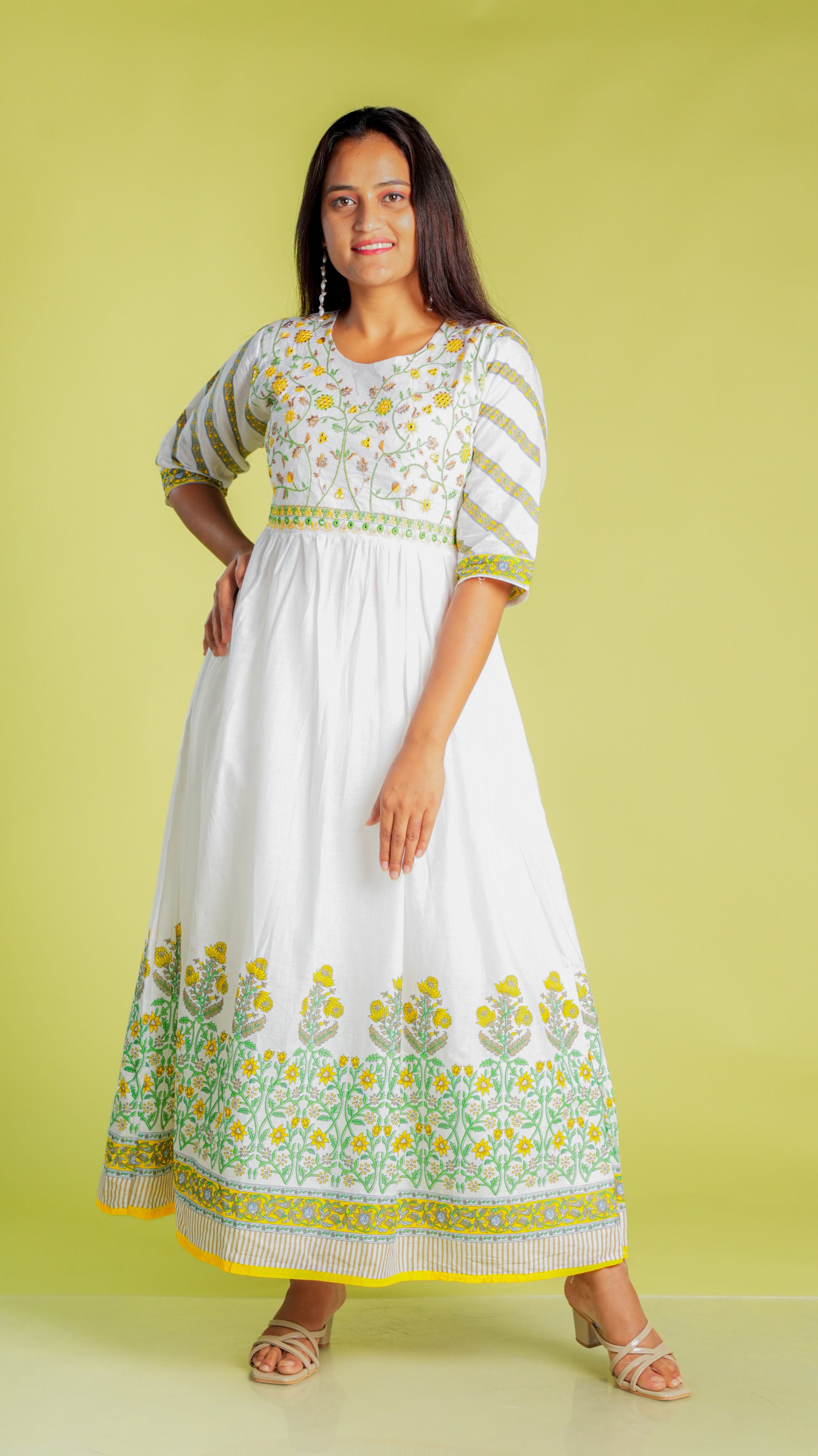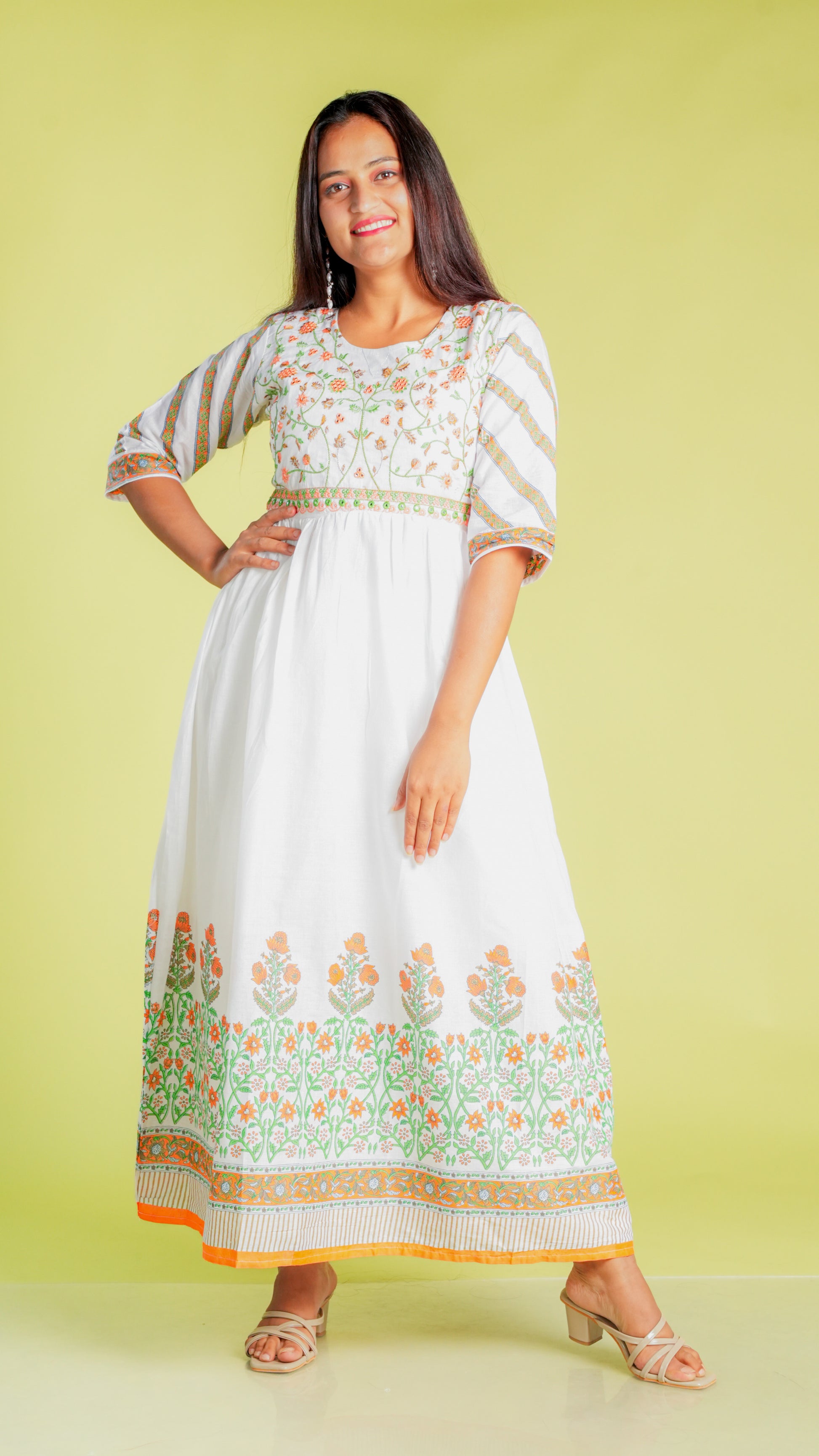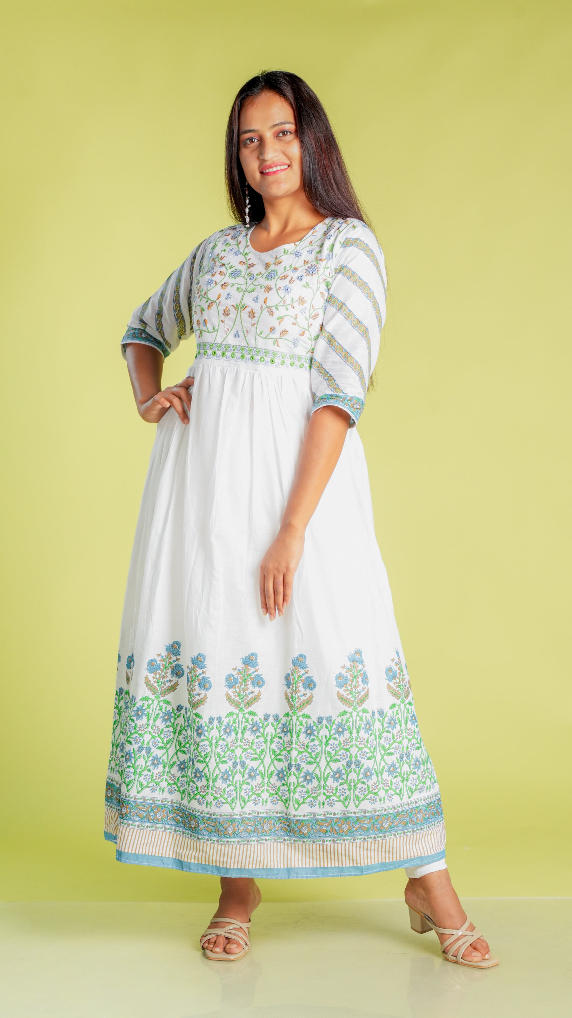 This Petal Whisper Frok is a statement piece for any wardrobe. The intricate floral print and durable fabric make it a versatile and stylish option for any occasion. Elevate your fashion game with this expertly crafted frok.