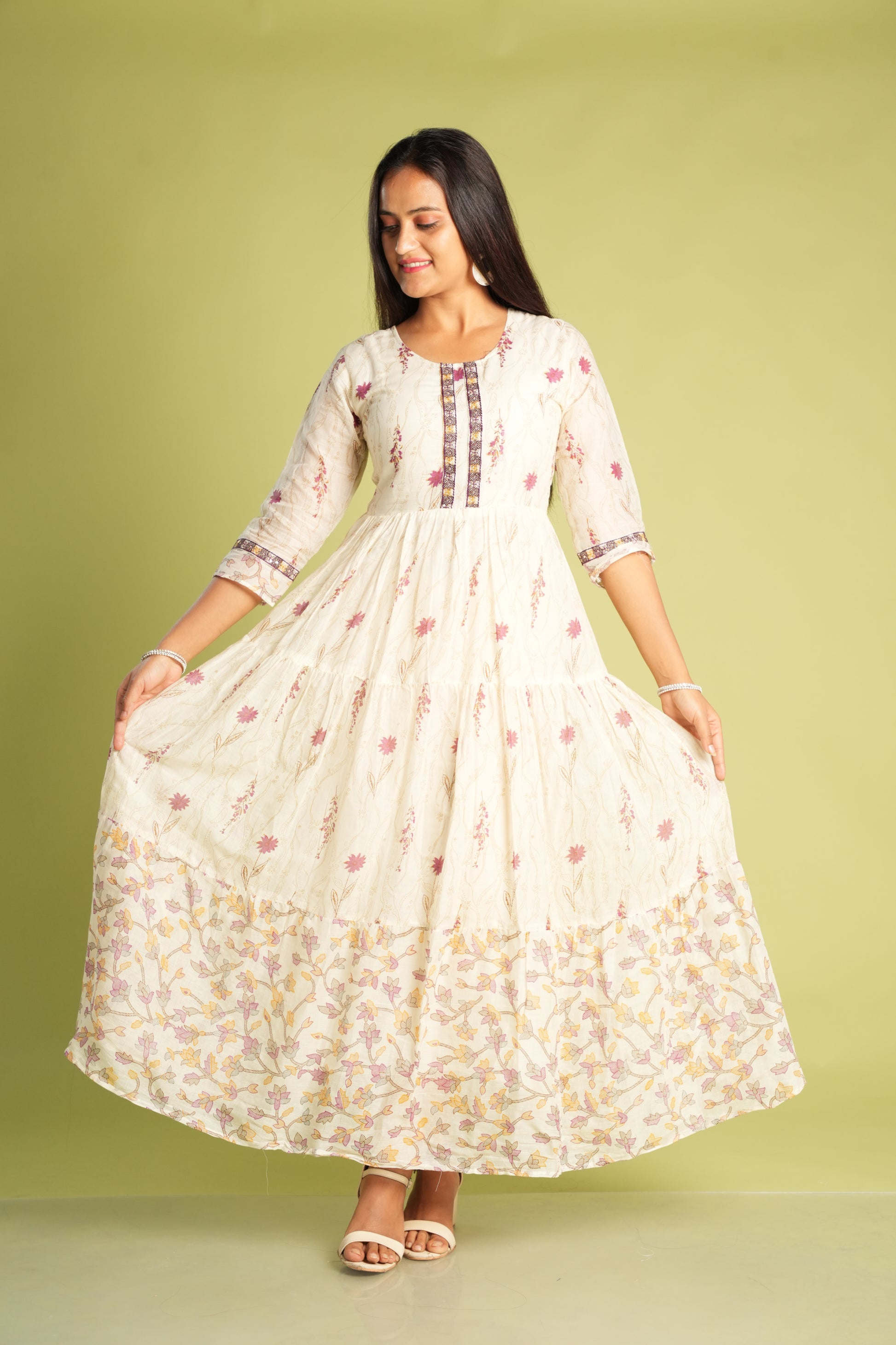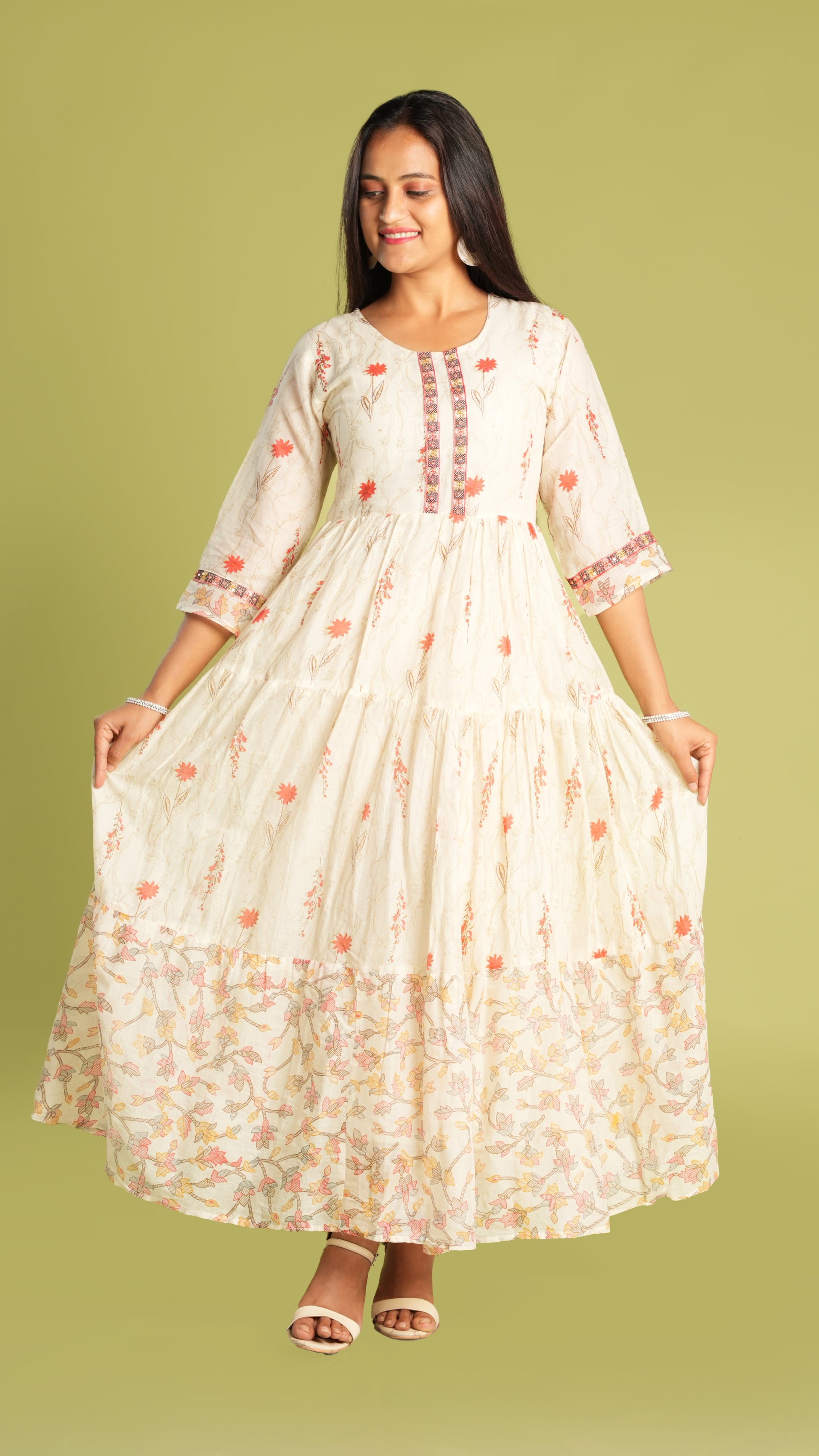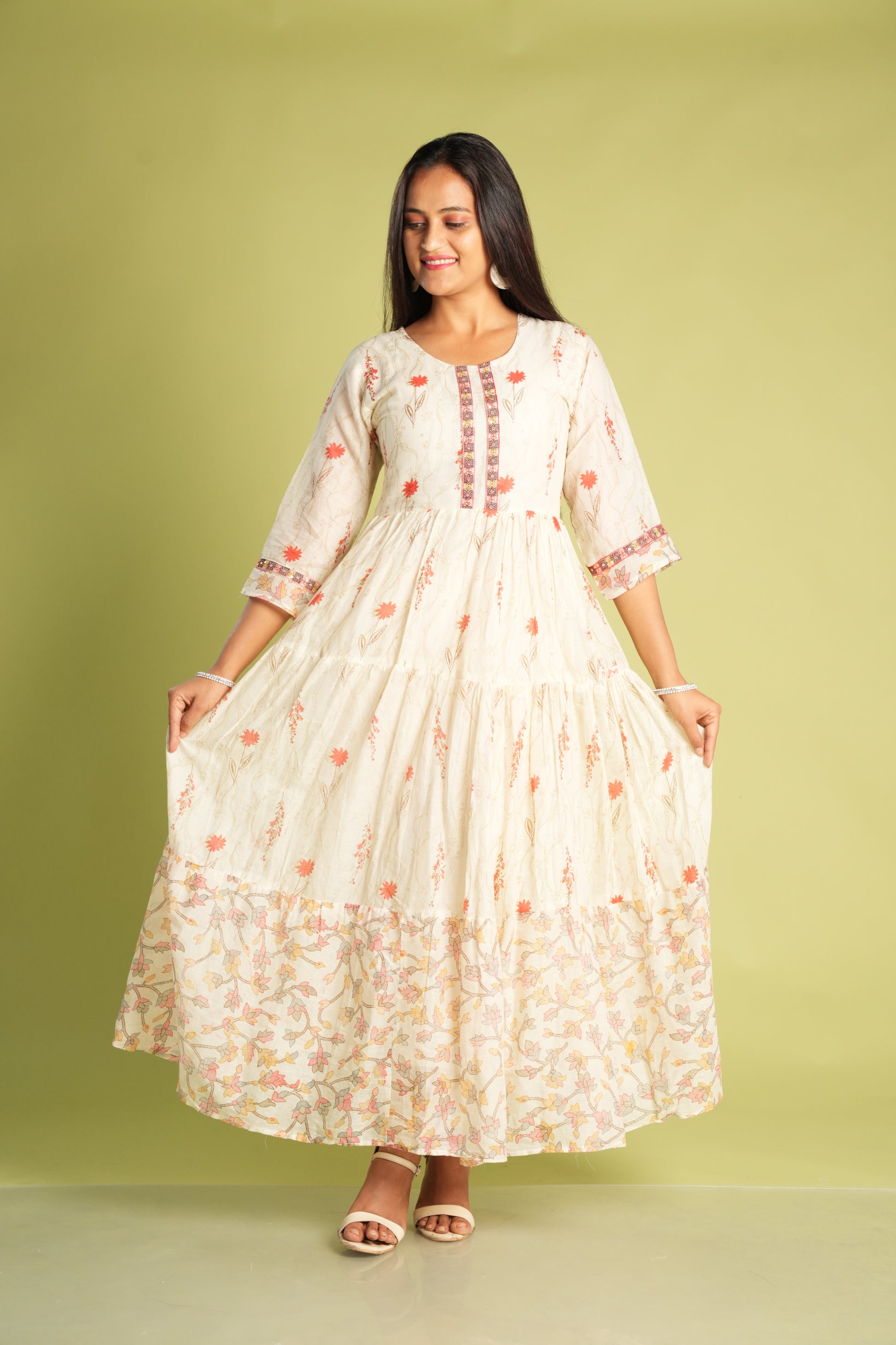 Introducing the Heavy Floral Block Print Frok - a stunning fashion statement that combines heavy floral block prints with a unique frok design. Made with high-quality materials and expert craftsmanship, this frok is sure to turn heads and make a lasting impression. Experience the elegance and beauty of this must-have piece.