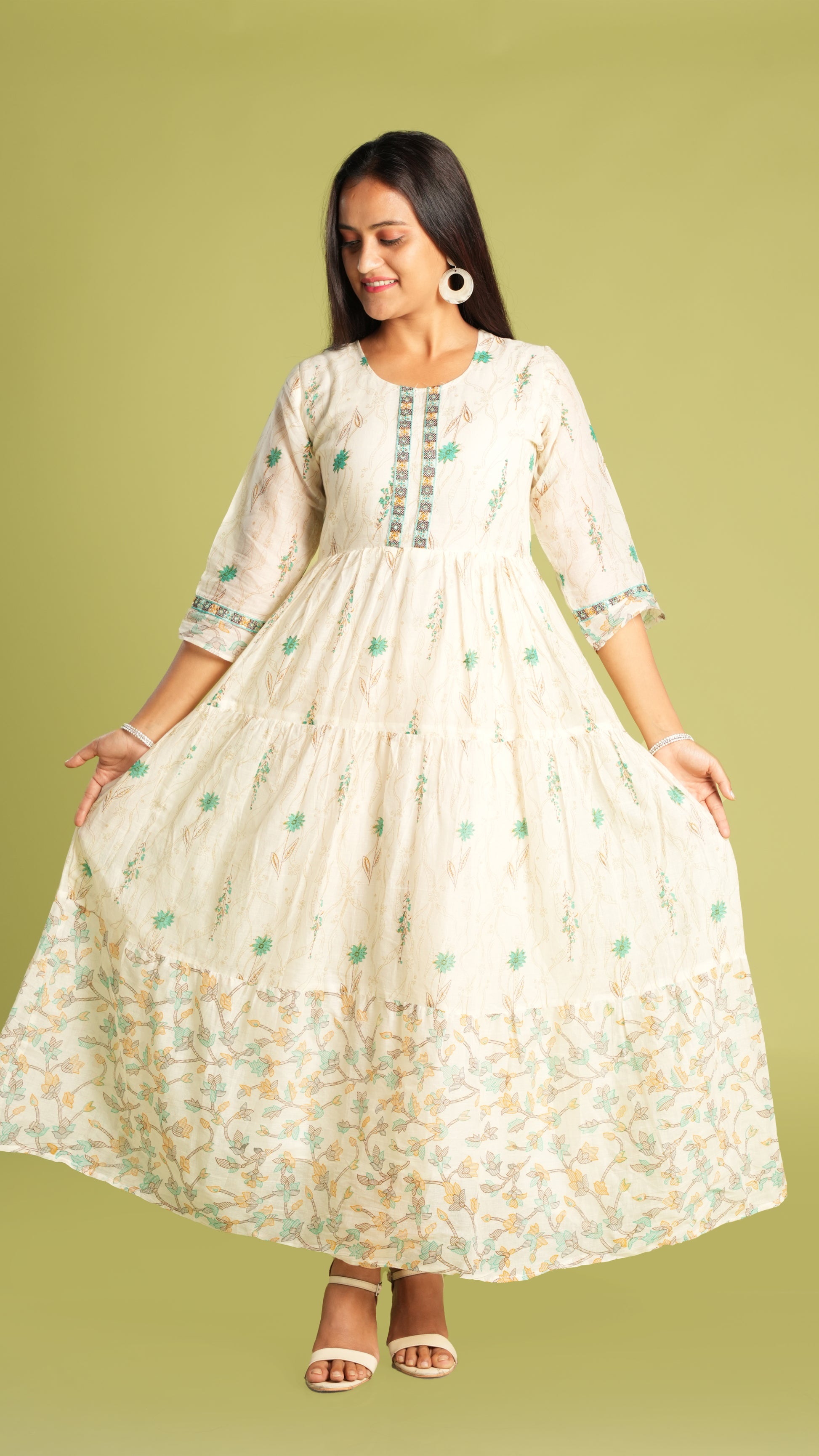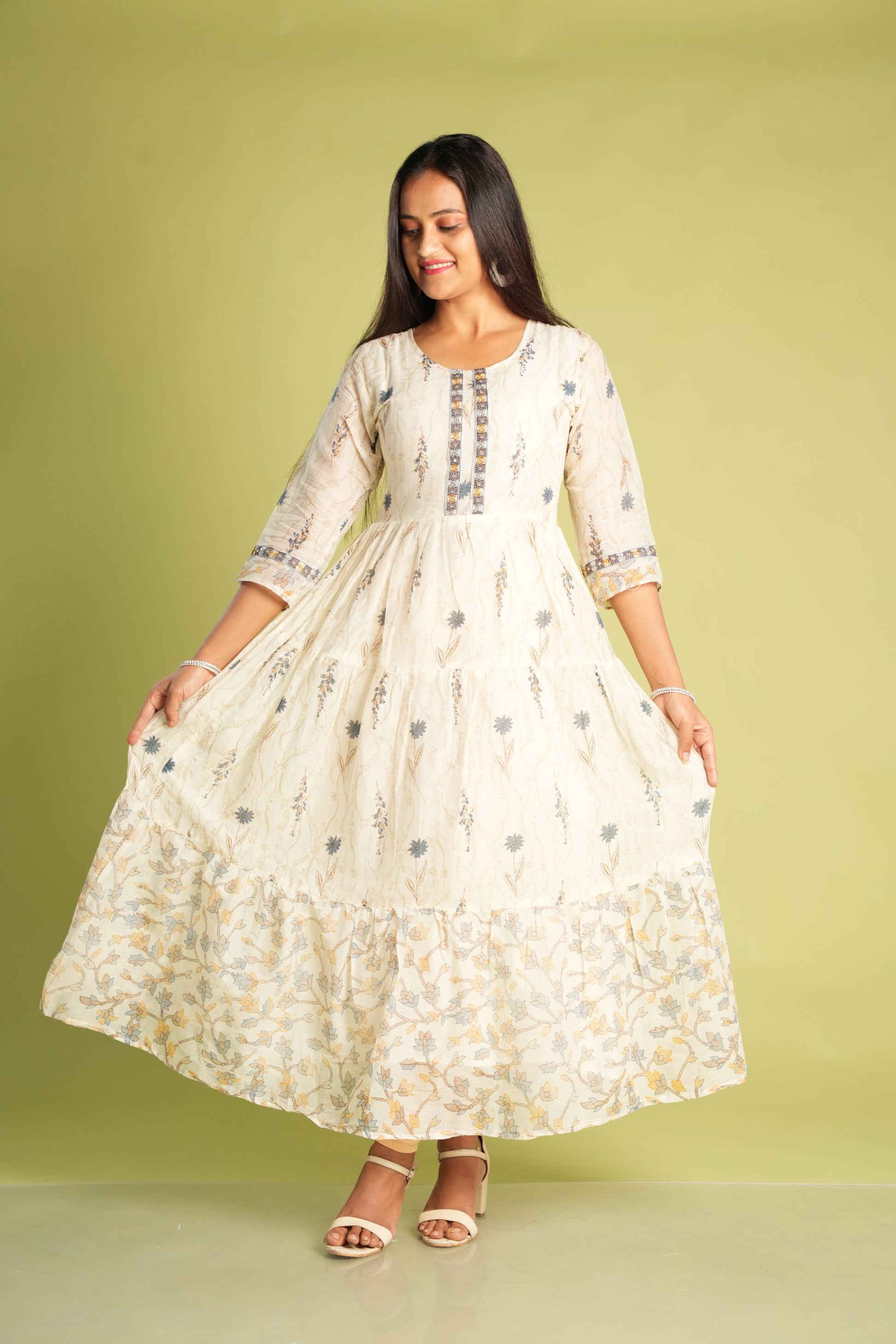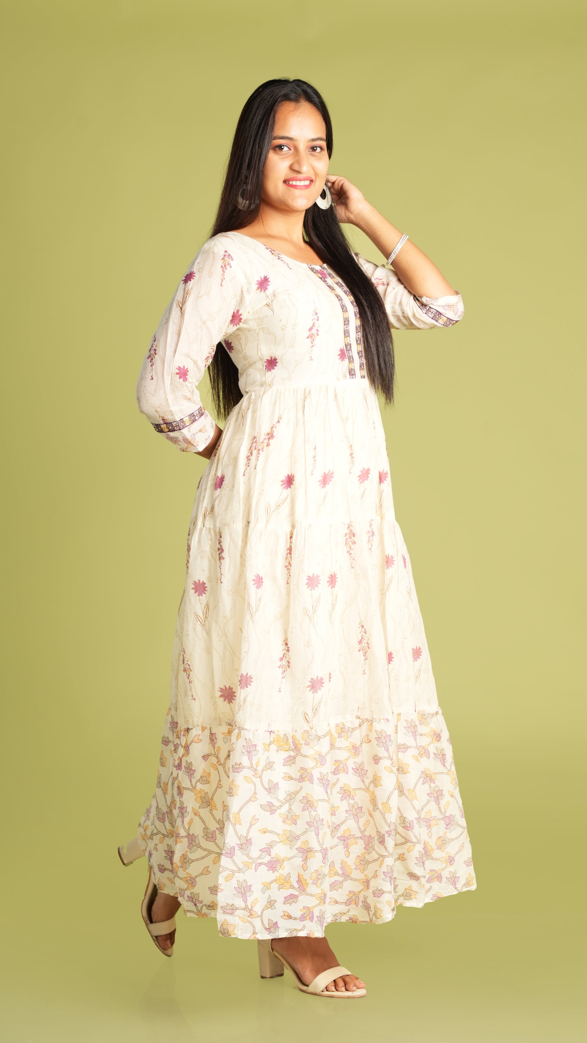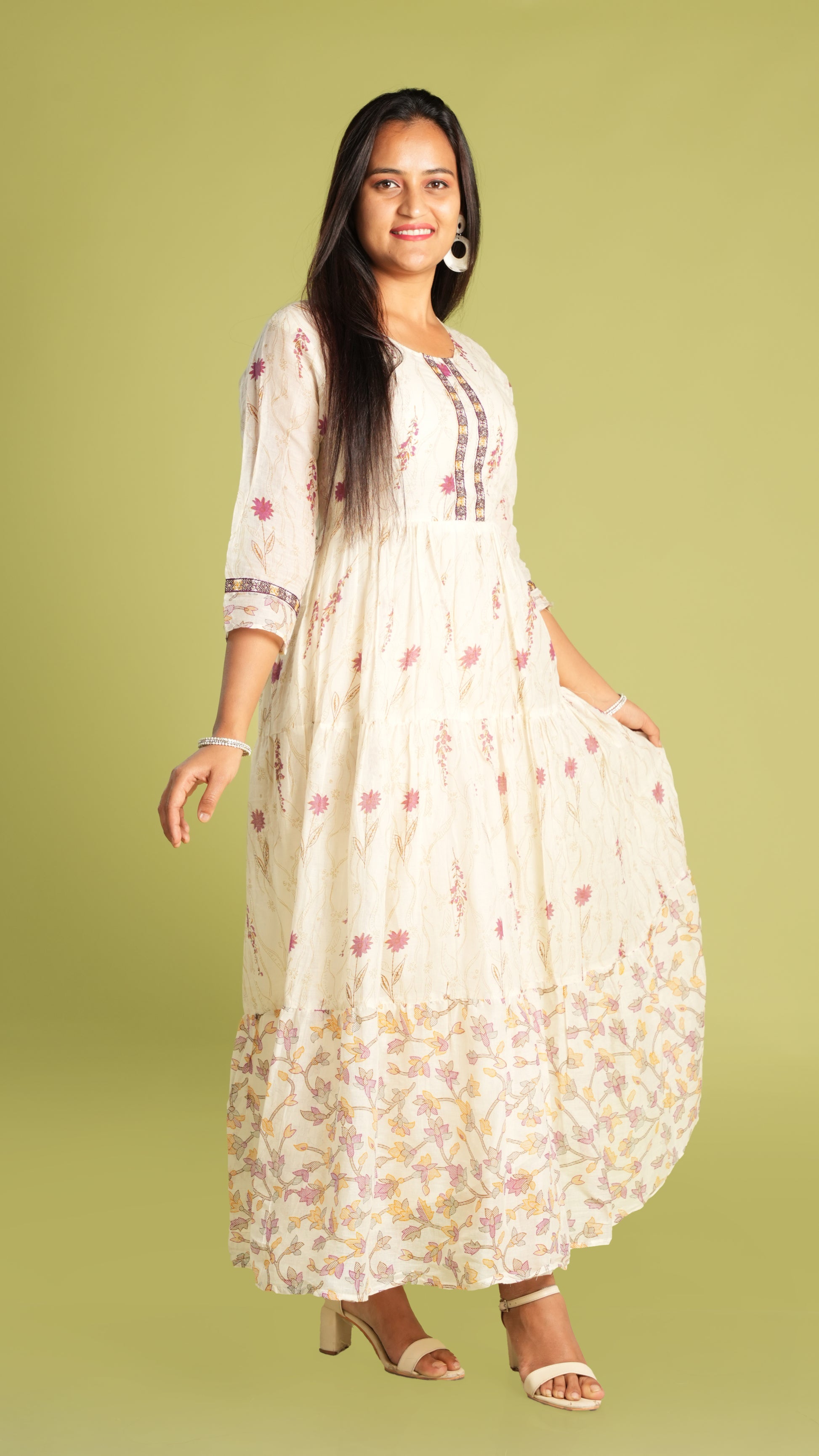Introducing the Heavy Floral Block Print Frok - a stunning fashion statement that combines heavy floral block prints with a unique frok design. Made with high-quality materials and expert craftsmanship, this frok is sure to turn heads and make a lasting impression. Experience the elegance and beauty of this must-have piece.