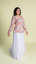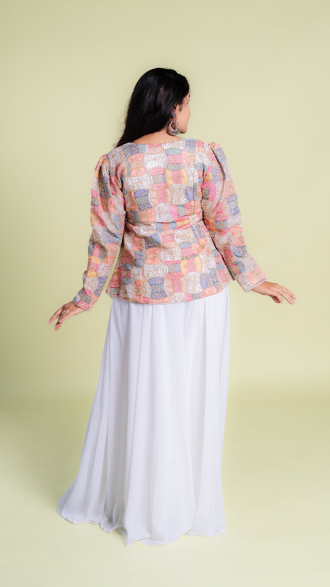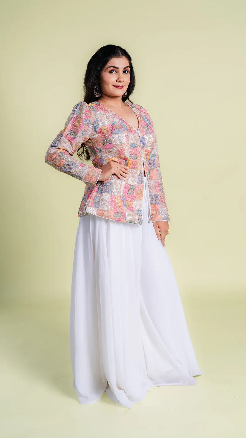 This Intricate Worked Top with Flared Palazzo exudes elegance and style. The intricately designed top adds a touch of sophistication, while the flared palazzo offers comfort and ease. Perfect for any occasion, this set is a must-have for any fashion-forward individual.