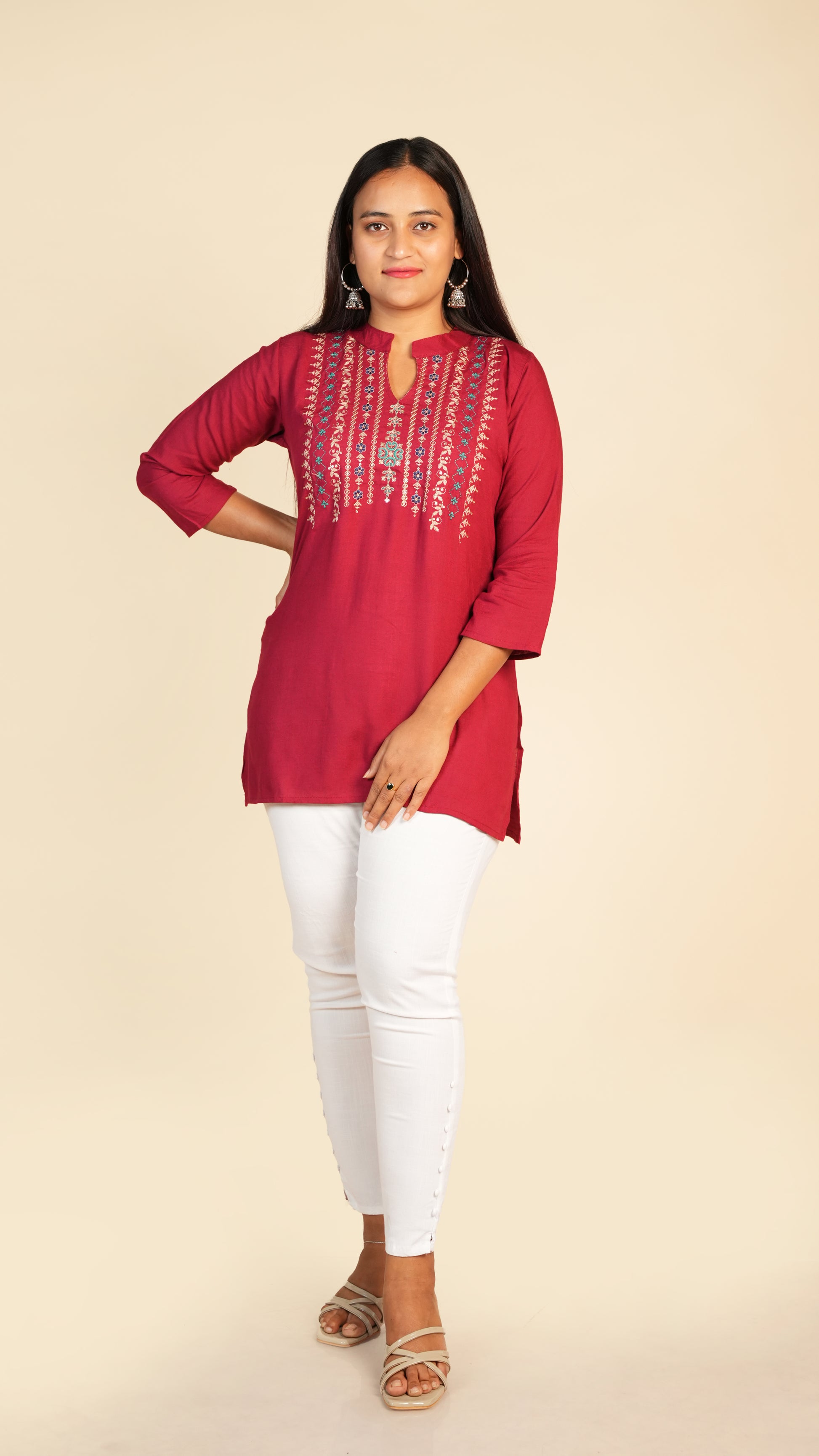 Elevate your everyday wardrobe with the Juliet Kurti, a versatile short-length piece featuring intricate embroidery detailing at the neckline. This thoughtfully designed kurti combines traditional craftsmanship with contemporary silhouettes, making it ideal for casual outings, gatherings, or relaxed workdays. Available in a curated selection of colors, you can effortlessly coordinate with your personal style and existing collection. The embroidered neck adds a refined touch without overwhelming the overall aesthetic, ensuring this piece remains a reliable staple in your rotation.