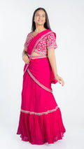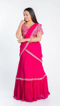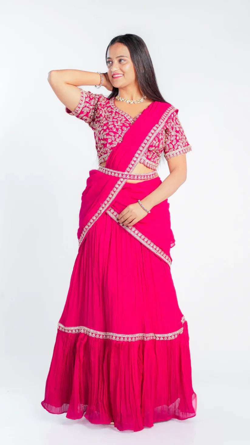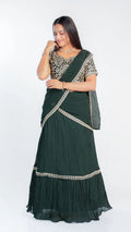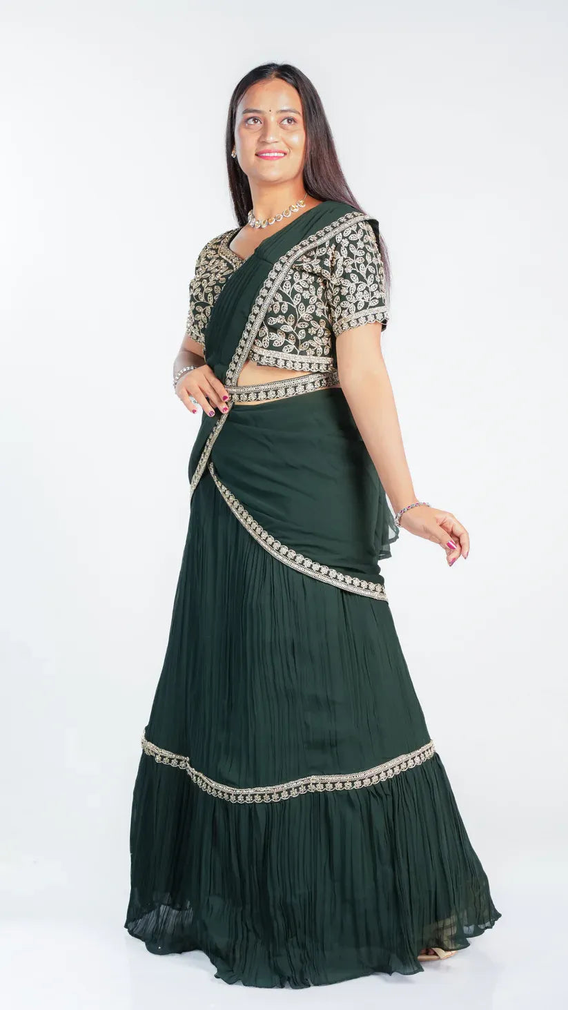 This Luxe Drape saree features a sophisticated three-color design enhanced with intricate heavy embroidery, showcasing exquisite craftsmanship. Crafted from soft fabric, it offers exceptional comfort while draping elegantly. Perfect for formal occasions, this saree combines artistry with luxurious wearability.