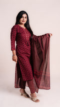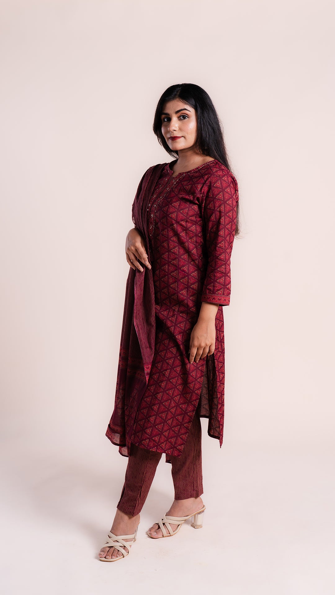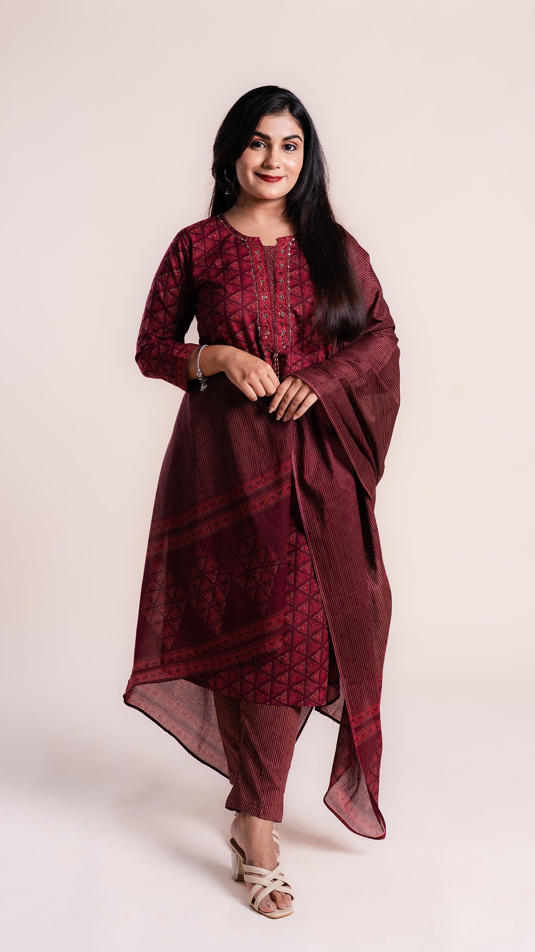Elevate your wardrobe with our Maroon Mirage Suit Set, featuring sophisticated printed details that transition seamlessly from professional settings to social gatherings. The rich maroon hue enhances various skin tones while the precision tailoring ensures a flattering silhouette. Crafted with premium fabrics for comfort and durability throughout extended wear.