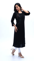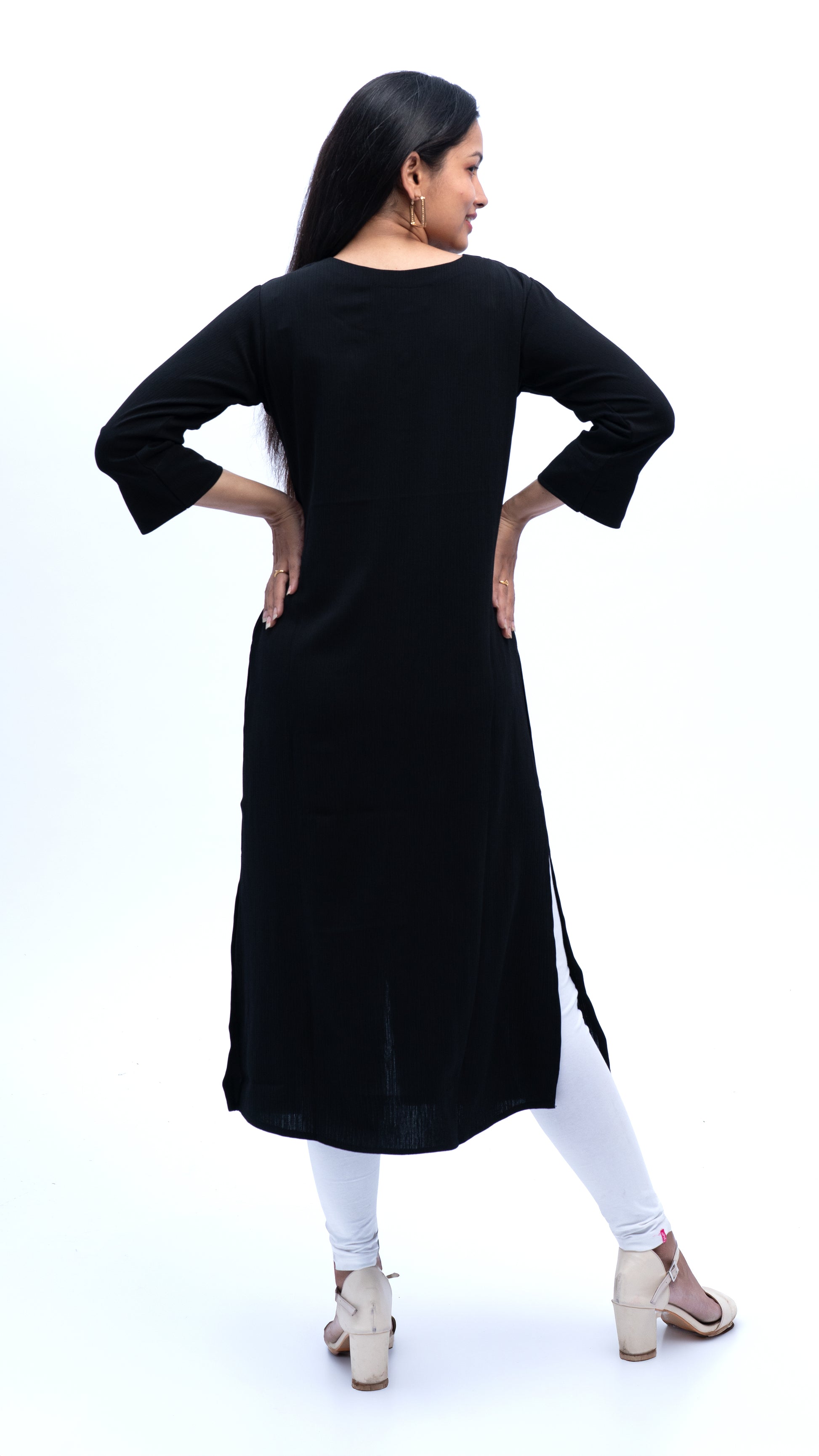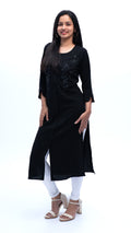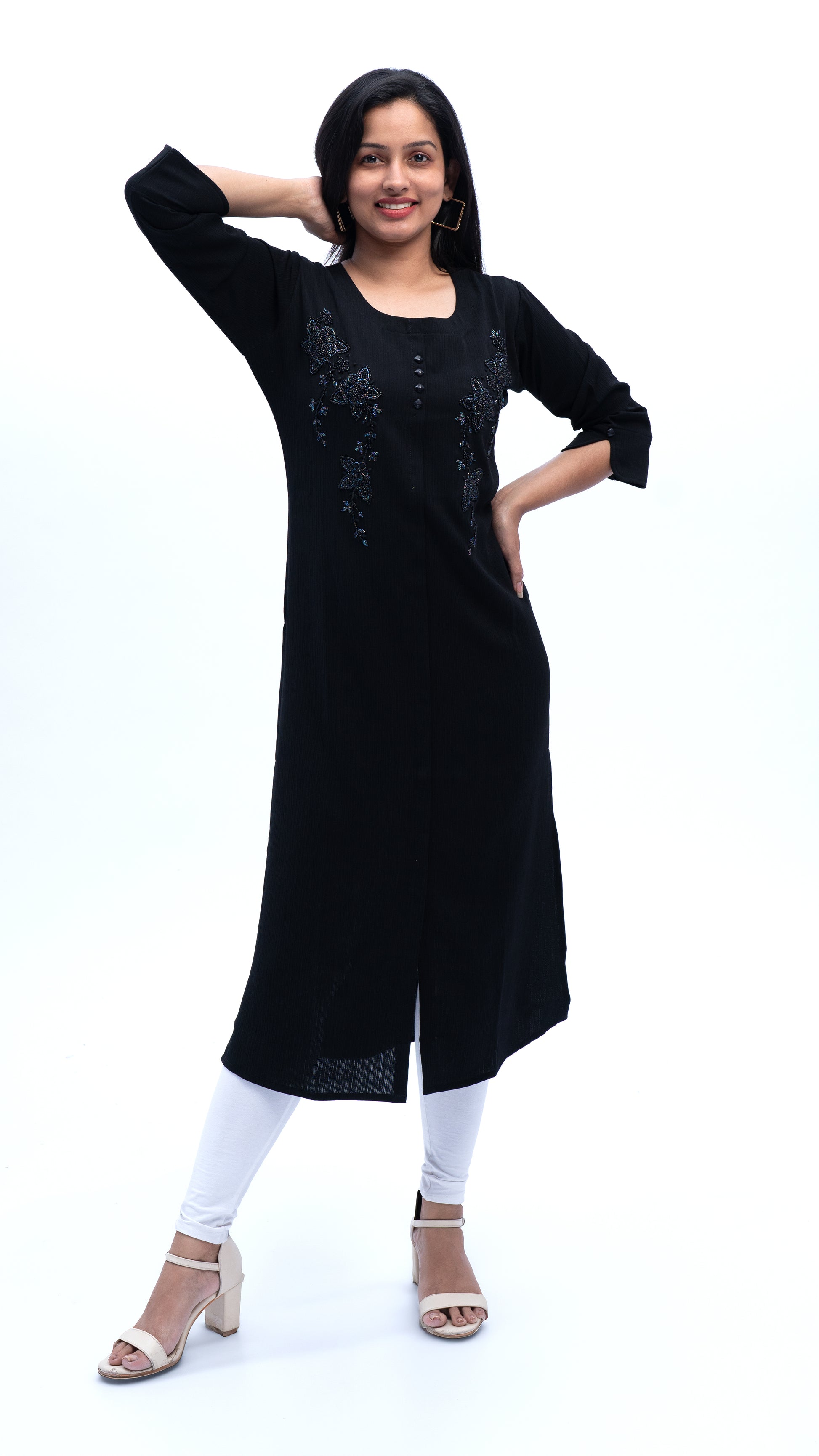 Discover timeless elegance with the Midnight Bloom Black Kurti, crafted in a sleek black shade that exudes sophistication. The intricate beadwork adds just the right touch of detail, creating a refined look that’s neither too bold nor too understated. Ideal for both casual and semi-formal events, this kurti brings comfort and class together, ensuring you stand out with effortless grace. Embrace a style that’s both timeless and modern with the Midnight Bloom Black Kurti.