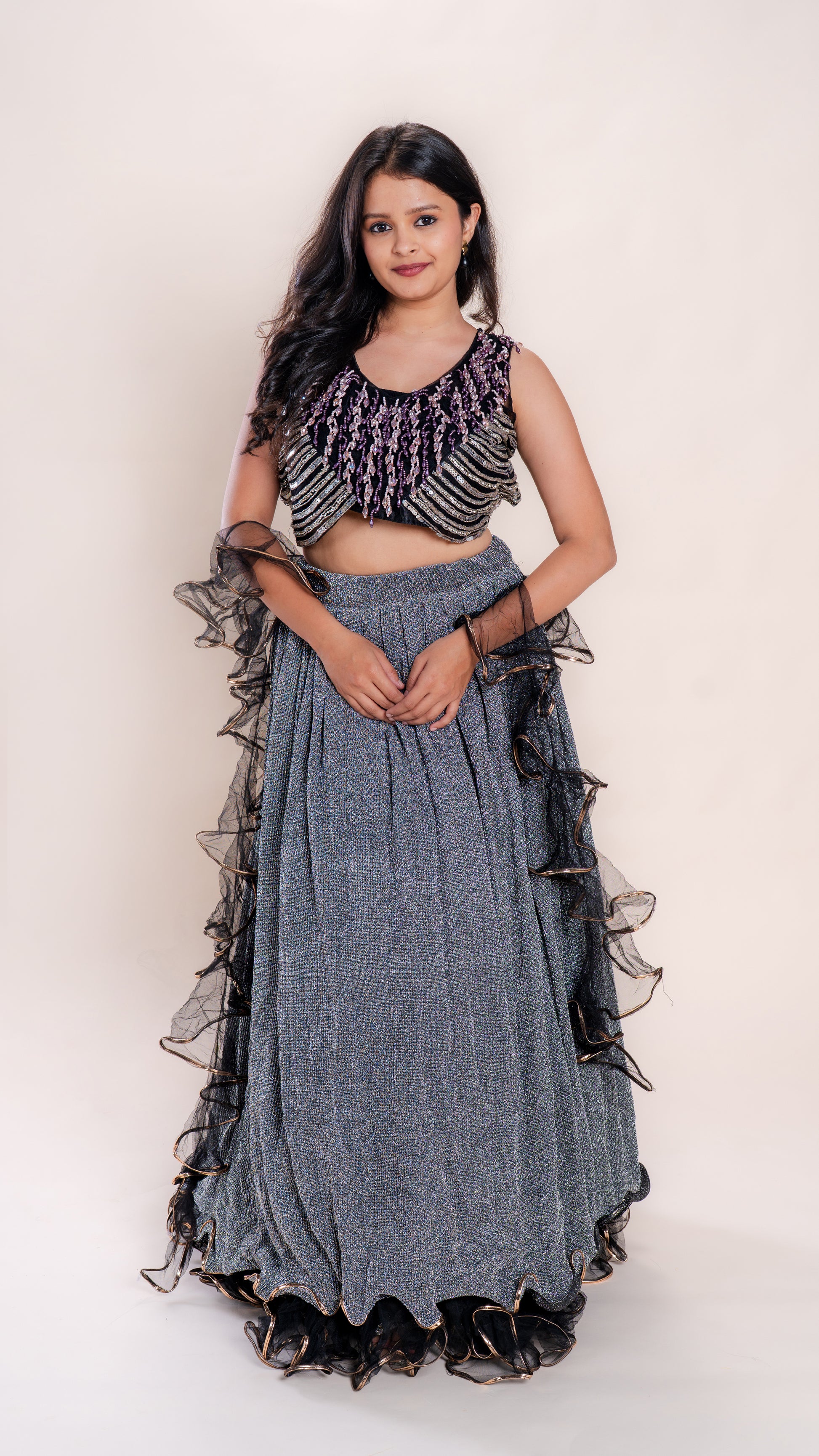 Elevate your festive wardrobe with the Moonstone Magic Lehenga, crafted in a rich heavy grey fabric that offers both elegance and durability. Paired with a designer small dupatta, this ensemble balances traditional charm with contemporary style, perfect for special occasions. The intricate detailing and premium materials ensure a refined look that stands out effortlessly. Ideal for those seeking a sophisticated yet comfortable outfit, this lehenga promises to enhance your presence with subtle grace and expert craftsmanship.